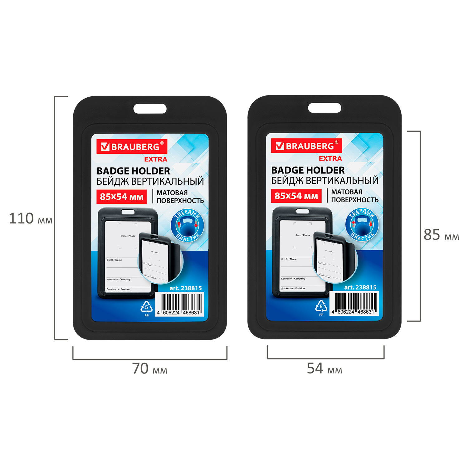Бейдж вертикальный (85х54 мм), черный, МАТОВАЯ ПОВЕРХНОСТЬ, BRAUBERG EXTRA Код товара: 238815 45,3 ₽ Купить Производитель:BRAUBERG Вертикальный бейдж BRAUBERG для хранения пропусков и карточек сотрудников, ID-карт, проездных и банковских карт. Бейдж подходит для крепления на ленте, держателе с рулеткой. Изготовлен из жесткого, приятного на ощупь, матового пластика, гарантирующего долгий срок службы и защищающего от влаги и пыли Вашу карту. Идеально подойдёт для чувствительных к механическим повреждениям магнитных карт и пропусков. Размер вкладыша – 85х54 мм. Максимальная толщина пропуска – 2 мм (две стандартных банковских карты). *Вкладыш бейджа без персонализации, на изображении показан возможный пример использования изделия.Производство: КитайТип бейджа: для проездных, пропусков, картТип крепления: без держателяПоложение: вертикальноеКоличество в комплекте: 1 шт.Размер вкладыша (ДхШ): 85х54 ммРазмер бейджа (ДхШ): 110х70 ммСерия: EXTRAЦвет крепления: нетМатериал корпуса: твердый пластикЦвет корпуса: черныйНаличие картонной вставки: даВес: 19 грРазмер упаковки: 0.5 × 10.9 × 6.9 смОбъём: 0.0001 м3Промежуточная упаковка: 10 штТранспортная упаковка: 600 штШтрих-код: 4606224468631 Файлы Сертификат-1.jpg Сертификат-2.jpg Сертификат-3.jpg Сертификат-4.jpg Сертификат-5.jpg Сертификат-6.jpg Сертификат-7.jpg Сертификат-8.jpg Сертификат-9.jpg Сертификат-10.jpg Сертификат-11.jpg Сертификат-12.jpg Сертификат-13.jpg Сертификат-14.jpg Сертификат-15.jpg Сертификат-16.jpg Сертификат-17.jpg Сертификат-18.jpg Сертификат-19.jpg Сертификат-20.jpg Сертификат-21.jpg Сертификат-22.jpg Сертификат-23.jpg Сертификат-24.jpg Сертификат-25.jpg Сертификат-26.jpg