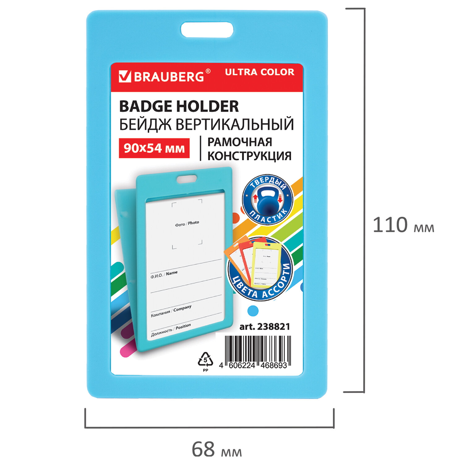 Бейдж вертикальный (90х54 мм) АССОРТИ, голубой, красный, салатовый, оранжевый, BRAUBERG ULTRA COLOR Код товара: 238821 39,13 ₽ Купить Производитель:BRAUBERG Вертикальный бейдж BRAUBERG ULTRA COLOR для хранения тонких пропусков и карточек сотрудников, ID-карт, проездных и банковских карт. Бейдж подходит для крепления на ленте, держателе с рулеткой. Изготовлен из жесткого пластика, гарантирующего долгий срок службы. Подойдёт для тонких магнитных карт и пропусков. Представлен в сочных цветах ассорти: голубом, салатовом, оранжевом и красном. Размер вкладыша – 90х54 мм. Максимальная толщина пропуска – 2 мм (две стандартных банковских карты). *Вкладыш бейджа без персонализации, на изображении показан возможный пример использования изделия.Производство: КитайТип бейджа: для проездных, пропусков, картТип крепления: без держателяПоложение: вертикальноеКоличество в комплекте: 1 шт.Размер вкладыша (ДхШ): 90х54 ммРазмер бейджа (ДхШ): 110х68 ммСерия: ULTRA COLORЦвет крепления: нетМатериал корпуса: твердый пластикЦвет корпуса: ассортиНаличие картонной вставки: даВес: 16 грРазмер упаковки: 0.5 × 10.9 × 6.9 смОбъём: 0.0001 м3Промежуточная упаковка: 20 штТранспортная упаковка: 720 штШтрих-код: 4606224468693 Файлы Сертификат-1.jpg Сертификат-2.jpg Сертификат-3.jpg Сертификат-4.jpg Сертификат-5.jpg Сертификат-6.jpg Сертификат-7.jpg Сертификат-8.jpg Сертификат-9.jpg Сертификат-10.jpg Сертификат-11.jpg Сертификат-12.jpg Сертификат-13.jpg Сертификат-14.jpg Сертификат-15.jpg Сертификат-16.jpg Сертификат-17.jpg Сертификат-18.jpg Сертификат-19.jpg Сертификат-20.jpg Сертификат-21.jpg Сертификат-22.jpg Сертификат-23.jpg Сертификат-24.jpg Сертификат-25.jpg Сертификат-26.jpg
