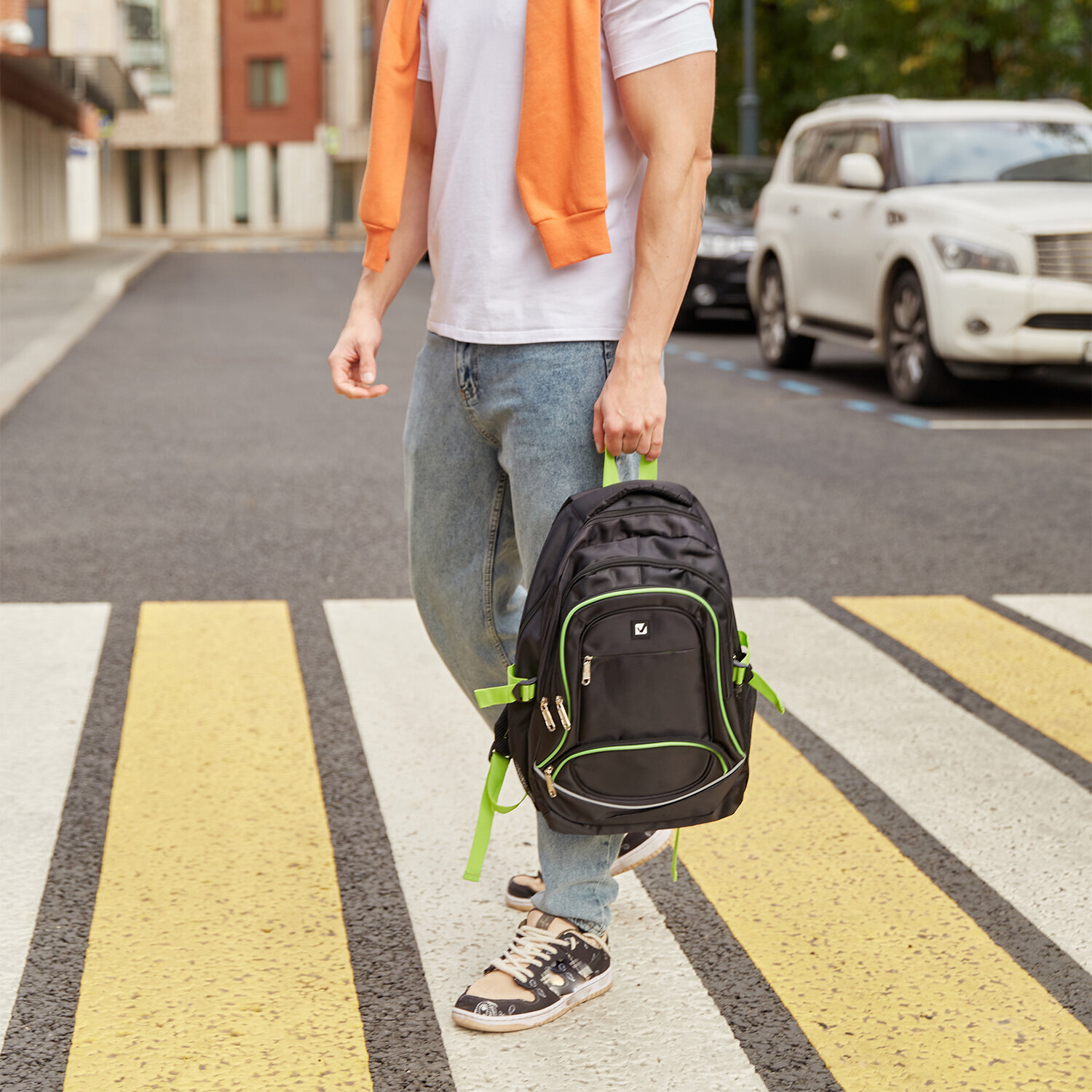 Рюкзак BRAUBERG HIGH SCHOOL универсальный, 3 отделения, "Акцент", черный/салатовый, 46х31х18 см Код товара: 270761 1 309,78 ₽ Купить Производитель:BRAUBERG Классический рюкзак BRAUBERG с отличной функциональной организацией и эргономичностью обеспечит комфортное использование как для учебы,так и для отдыха. Качественные материалы и фурнитура делают этот рюкзак максимально надежным для ежедневного применения. Удобный и надежный рюкзак BRAUBERG имеет оптимальную функциональную организацию - три вместительных отделения, боковые карманы и наружный карман для быстрого доступа к необходимым вещам. Внутри основного отделения предусмотрен большой карман-разделитель и подвесной карман на молнии для важных вещей. Особенности: - дополнительные швы надежно фиксируют лямки в верхней и нижней части рюкзака; - светоотражающий элемент на фронтальной стороне повысит безопасность владельца в темное время суток; - формоустойчивая спинка и эргономичные регулируемые плечевые ремни анатомической формы, оснащенные пропускающей воздухонабивной подкладкой, обеспечивают максимальный комфорт при ношении рюкзака; длина лямок 42,5 см, максимальная длина тесьмы 42 см. - прочная и мягкая эргономичная ручка позволяет комфортно носить рюкзак не только на спине, но и в руках. Для подвешивания на крючок можно использовать ручку-петлю; - рюкзак изготовлен из надежного и качественного материала - полиэстера, стойкого к износу и истиранию и обладающего водоотталкивающим эффектом. Для подкладки используется прочный, устойчивый к воздействию загрязнений полиэстер. - каждое отделение рюкзака имеет долговечную реверсивную молнию с двумя большими металлическими бегунками; - благодаря своей конструкции рюкзак не кажется громоздким. Если рюкзак не заполнен полностью, его можно уплотнить боковыми стягивающими ремнями, придав аккуратную форму и внешний вид; - рюкзак имеет боковые карманы из эластичной сетки, которые подходят для хранения бутылок с водой и зонта, а также карман на молнии на передней стенке. Разнообразие расцветок и дизайнов коллекции HIGH SCHOOL поможет каждому потребителю подобрать себе рюкзак по вкусу. Рюкзак упакован в плотный ПЭТ-пакет, который сохранит качество и товарный вид при хранении и транспортировке.Производство: КитайПол: унисексСерия: HIGH SCHOOLОбъем: 30 лКоличество отделений: 3Регулируемые лямки: даКоличество карманов: 6 шт.Фронтальный карман: даБоковые карманы: даНаличие ручки для переноса: даВентилируемые лямки: даРемни для утягивания основного отделения: даМатериал: полиэстерЦвет: черный/салатовыйДизайн: АкцентВысота: 46 смШирина: 31 смГлубина: 18 смДлина лямок: 84.5 смВес: 0.55 кгРазмер упаковки: 6.7 × 46.5 × 34.9 смОбъём: 0.0054 м3Промежуточная упаковка: 6 штТранспортная упаковка: 24 штШтрих-код: 4606224357515 Сертификат-1.jpg Сертификат-2.jpg Сертификат-3.jpg