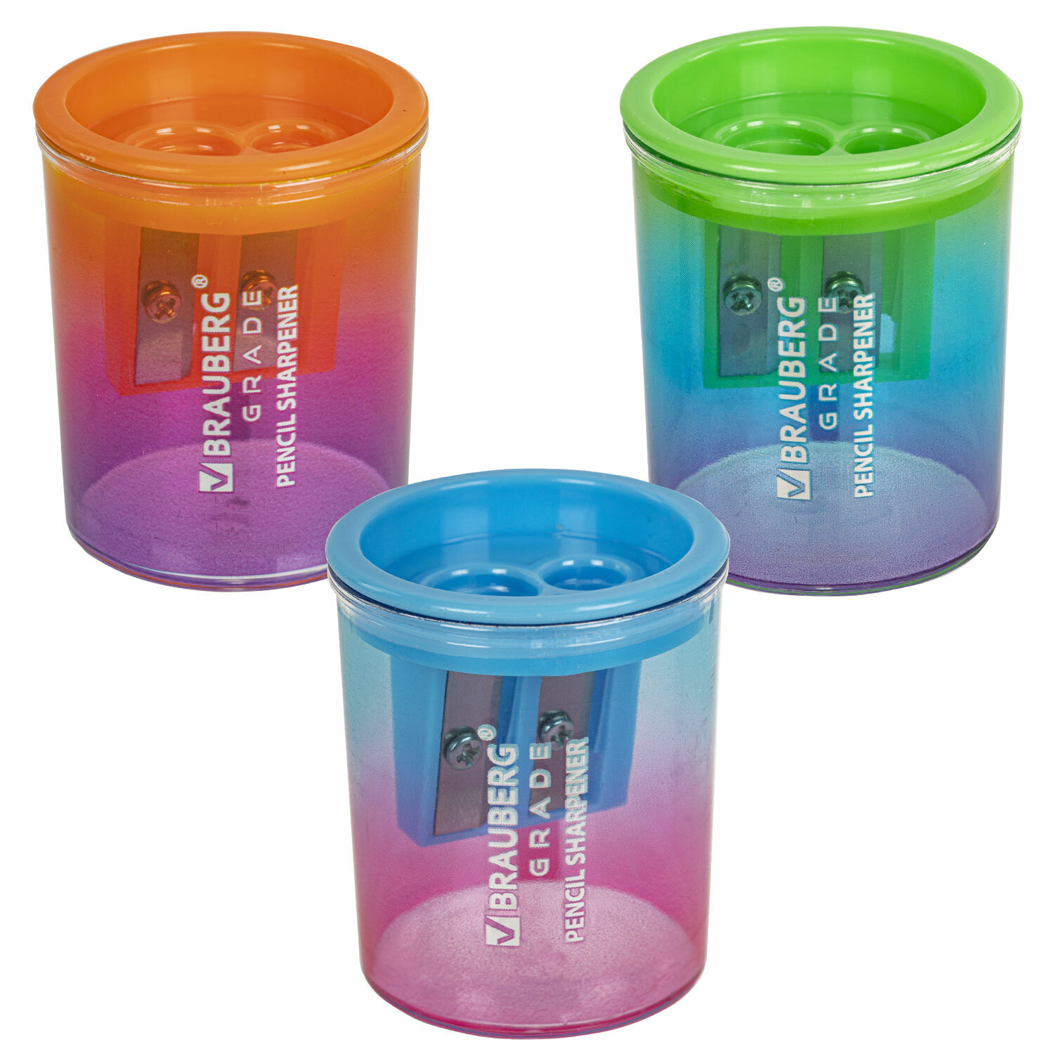 Точилка для классических и утолщенных карандашей BRAUBERG "Grade", НАБОР 3 штуки Код товара: 271999 283,25 ₽ Купить Производитель:BRAUBERG Точилка BRAUBERG "Grade" – предмет №1 в паре с карандашом на рабочем столе в офисе, на школьной парте или дома. Набора из 3 шт. хватит на каждого ребенка в семье или на небольшую рабочую группу в офисе. Эргономичный корпус изделия выполнен из прочного пластика. Точилка оснащена двумя отверстиями для заточки карандашей разного диаметра. Острое стальное лезвие обеспечивает быструю и легкую заточку, а для опилок предусмотрен вместительный контейнер. В наборе представлены точилки трех градиентных цветов (без возможности выбора). Размер – 48х38х38 мм.Производство: КитайКоличество в комплекте: 3 шт.Материал корпуса: пластикФорма корпуса: цилиндрическаяКоличество отверстий: 2Контейнер для стружки: даСпециальная заточка утолщенных карандашей: даСерия: GradeПодходит для левшей: даЦвет: ассортиВысота: 48 ммШирина: 38 ммГлубина: 38 ммИндивидуальная упаковка: даУпаковка : пластиковая коробкаВес: 66 грРазмер упаковки: 4.5 × 12.5 × 5.1 смОбъём: 0.0004 м3Промежуточная упаковка: 40 штТранспортная упаковка: 80 штШтрих-код: 4606224422091 Сертификат-1.jpg Сертификат-2.jpg Сертификат-3.jpg