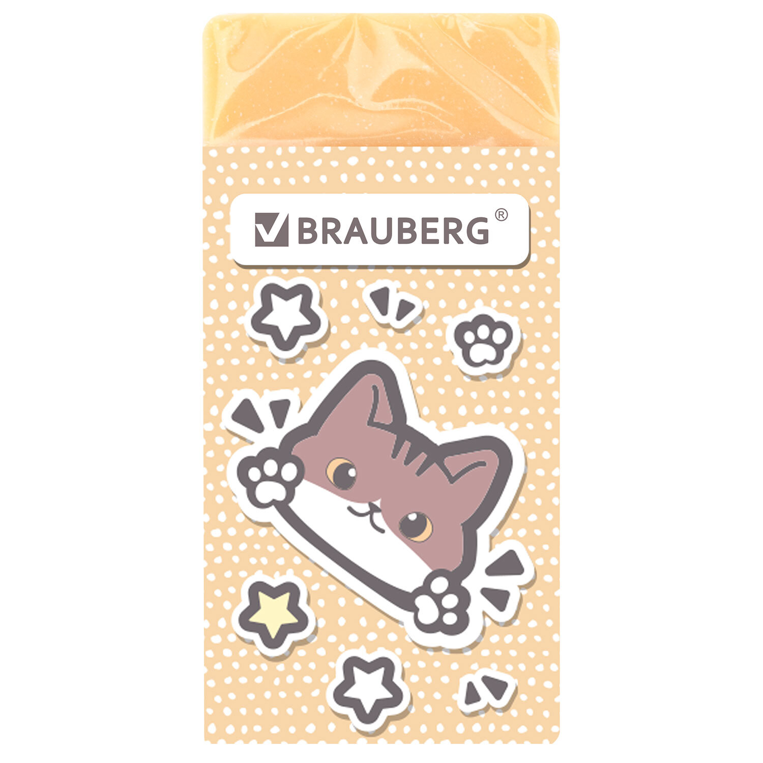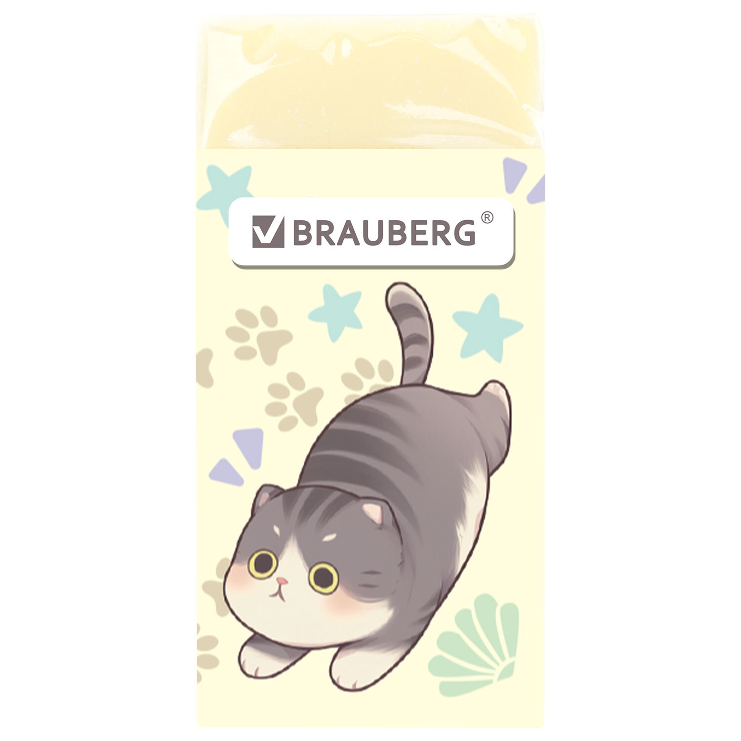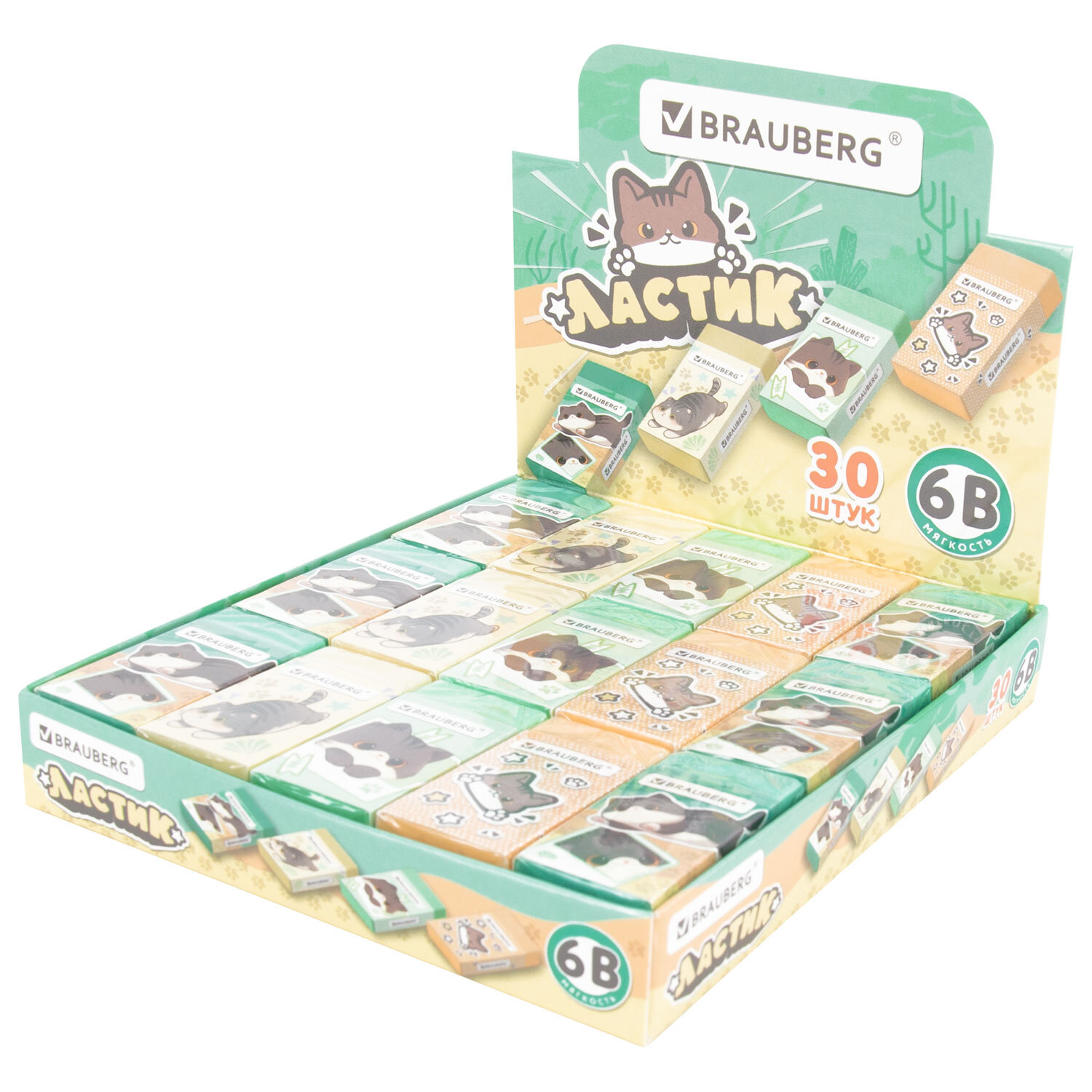 Ластик кросс-серия МИЛЫЕ КОТЫ, 50х24х10 мм, прямоугольный, картонный держатель, ассорти, ЭКО ПВХ, BRAUBERG Код товара: 273227 23,36 ₽ Купить Производитель:BRAUBERG Ластик BRAUBERG "МИЛЫЕ КОТЫ" предназначен для удаления надписей, сделанных чернографитным карандашом. Предназначен для удаления надписей и рисунков, сделанных чернографитными карандашами. Изготовлен из современного материала – экологичного ПВХ. Картонный держатель с изображением забавных играющих котов поднимет настроение и поможет сохранить ластик чистым. Имеет прямоугольную форму, выполнен в четырёх вариантах цвета (без возможности выбора). Размер – 50х24х10 мм. Поставляется в картонном дисплее.Производство: КитайКоличество в упаковке: 1 шт.Материал: ECO-PVCФорма: прямоугольнаяСтираемые письменные принадлежности: чернографитные карандашиДержатель: картонныйЦвет: пастельный ассортиНе оставляет бумажной пыли: даРазмер: 50х24х10 ммУпаковка: дисплейВес: 18 грРазмер упаковки: 1.2 × 4.9 × 2.5 смПромежуточная упаковка: 30 штТранспортная упаковка: 900 штШтрих-код: 4606224482880 Сертификат-1.jpg Сертификат-2.jpg Сертификат-3.jpg
