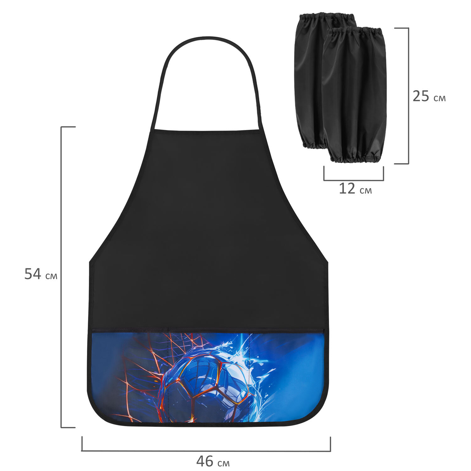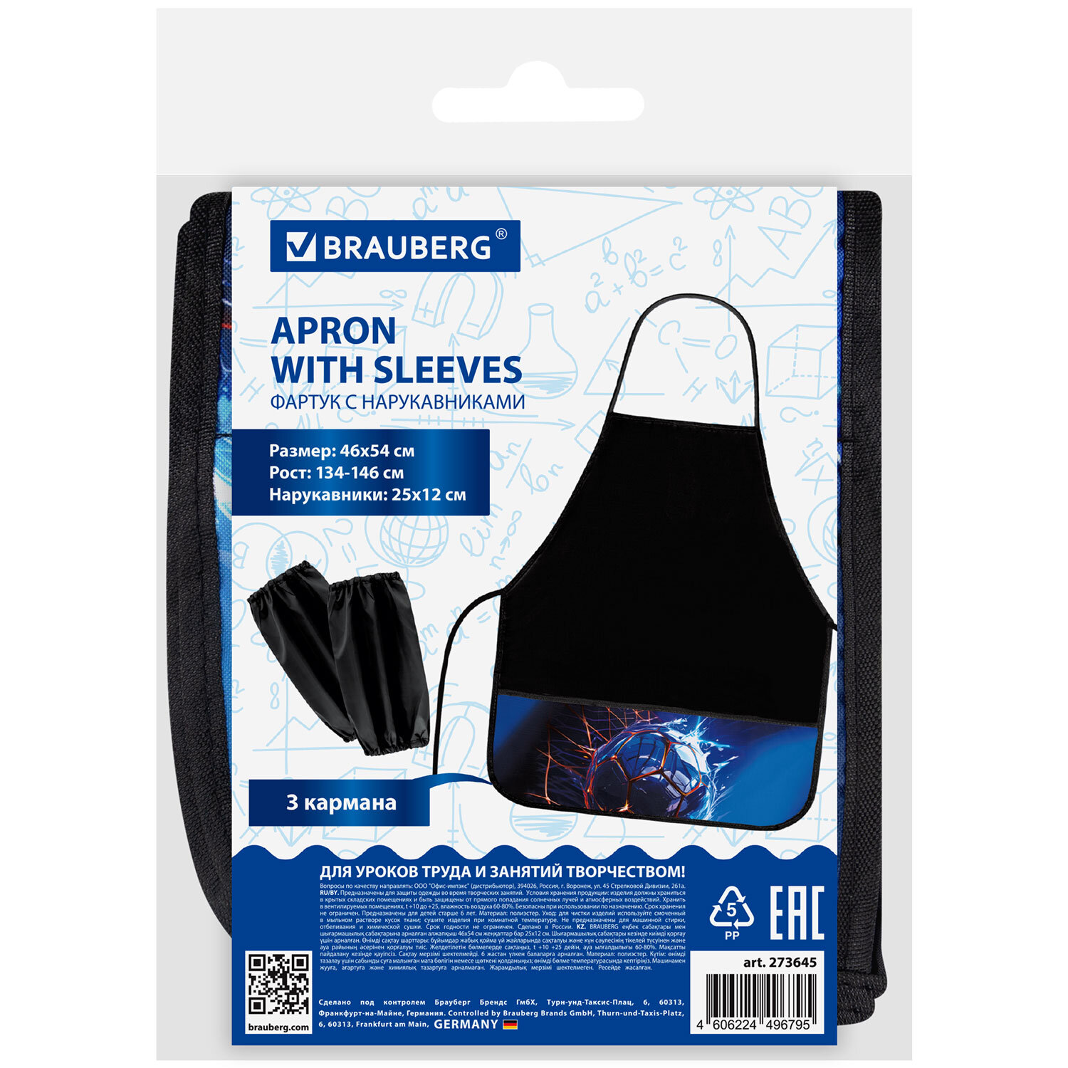 Фартук с нарукавниками для уроков труда BRAUBERG, 3 кармана, 46x54 см, "Score goal" Код товара: 273645 267,6 ₽ Купить Производитель:BRAUBERG Фартук с нарукавниками для уроков труда BRAUBERG – незаменимая вещь для защиты одежды во время уроков труда и занятий творчеством в школе, детском саду и дома. Предусмотрен для многоразового использования. Фартук и нарукавники изготовлены из водоотталкивающего полиэстера. Стандартный размер фартука – 54х46 см, размер нарукавников – 25х12 см. Крепление фартука на завязках. Кроме того, фартук оснащен 3 карманами для канцелярии и прочих принадлежностей, которые всегда должны быть под рукой во время уроков труда и занятий творчеством. Яркая печать коллекционного дизайна на карманах. Нарукавники оснащены резинкой с обеих сторон. Фартук и нарукавники помогают защитить одежду ребенка от загрязнений во время занятий трудом и творчеством. Набор упакован в прозрачный пакет с европодвесом в сложенном виде. Заметная яркая этикетка с основной информацией о товаре выделяет его в магазине.Производство: РоссияПредназначение: для мальчиковКоличество карманов: 3 шт.Комплектуется нарукавниками: даШирина: 46 смВысота: 54 смВодоотталкивающая пропитка: даСерия: COVERВозрастная группа: 7-10 летДизайн: Score goalЦвет: черный/синийМатериал: полиэстерУпаковка: полипропиленовый пакет с европодвесомВес: 58 грРазмер упаковки: 2.1 × 20.8 × 18.6 смОбъём: 0.0006 м3Промежуточная упаковка: 20 штТранспортная упаковка: 20 штШтрих-код: 4606224496795 Сертификат-1.jpg Сертификат-2.jpg Сертификат-3.jpg