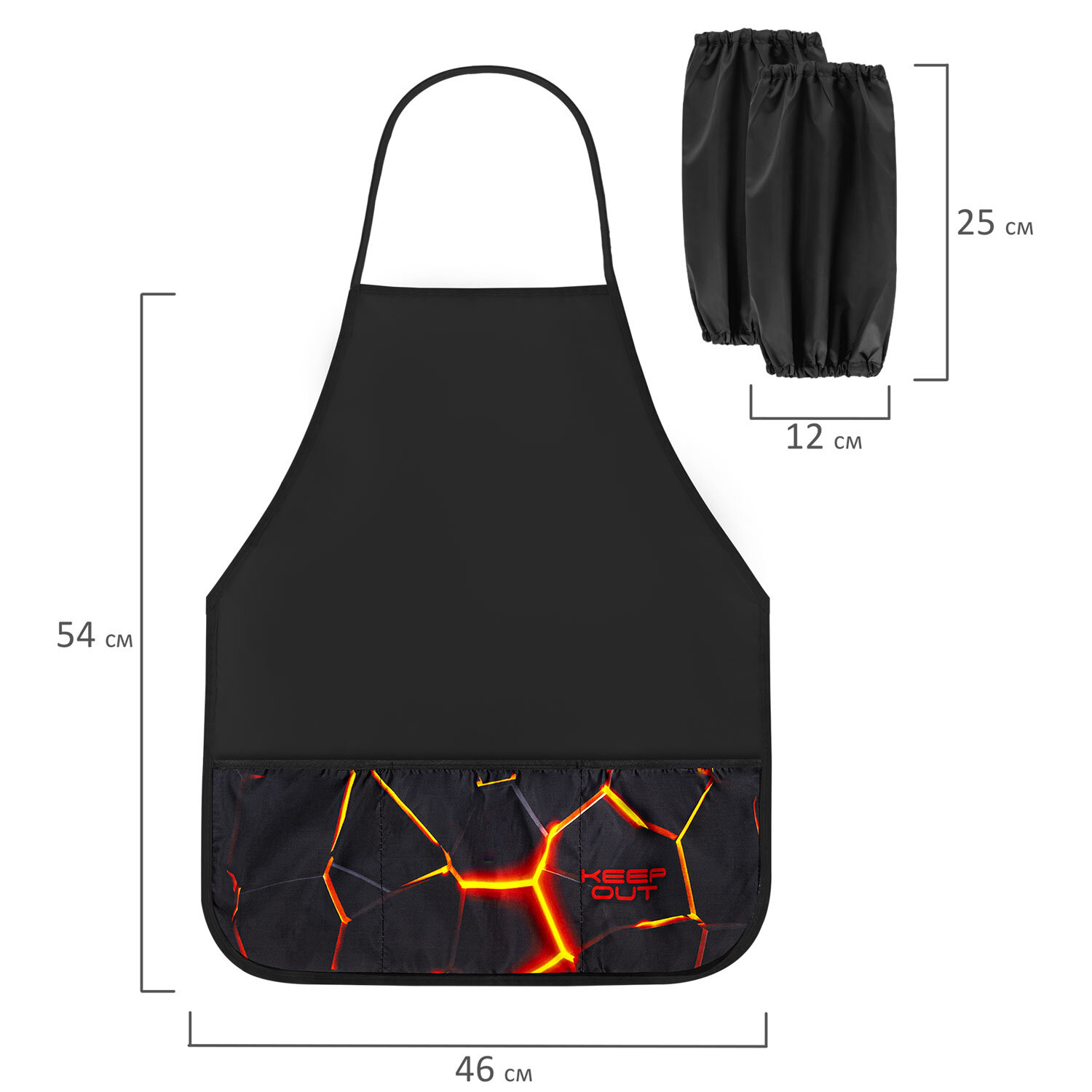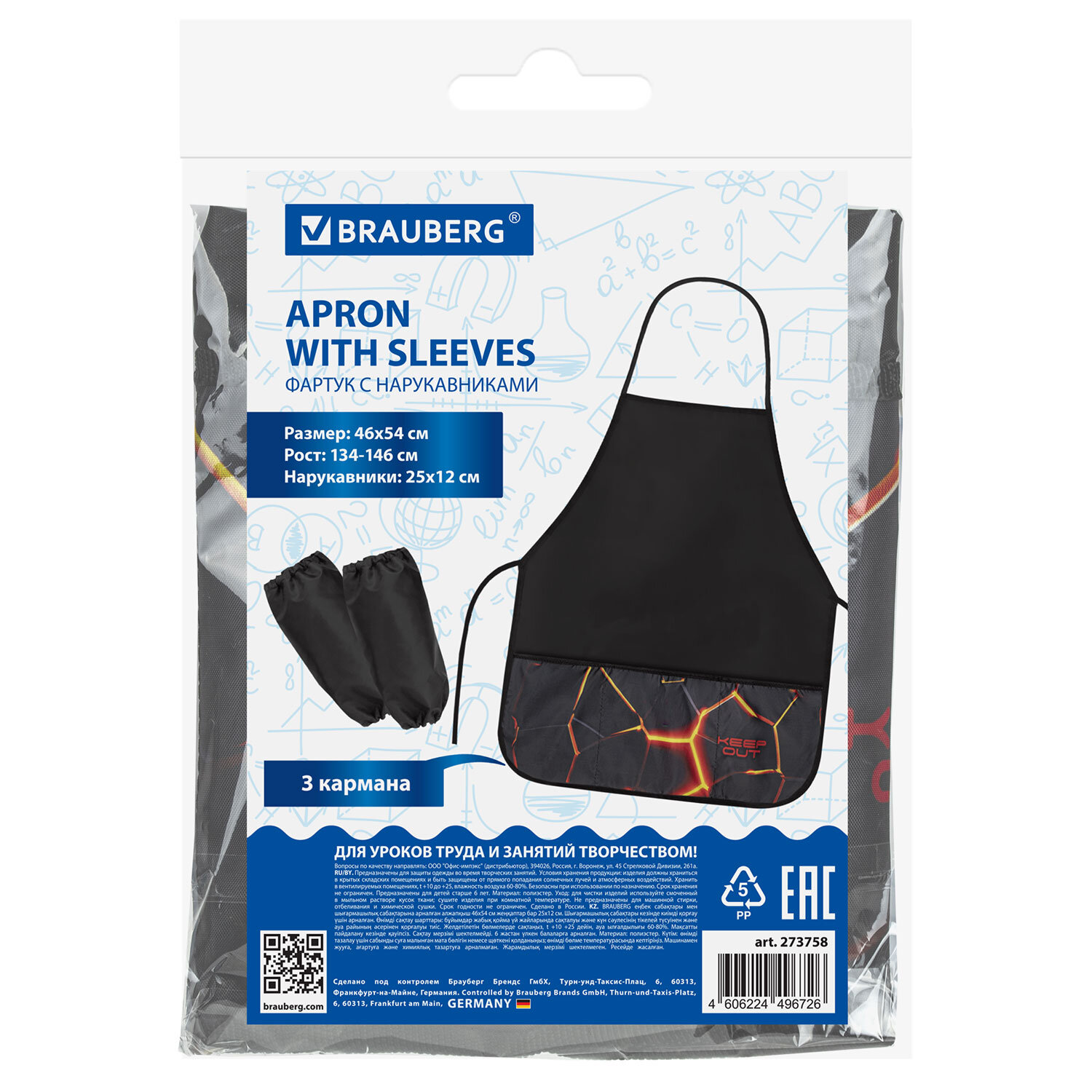 Фартук с нарукавниками для уроков труда BRAUBERG, 3 кармана, 46x54 см, "Keep out" Код товара: 273758 267,6 ₽ Купить Производитель:BRAUBERG Фартук с нарукавниками для уроков труда BRAUBERG – незаменимая вещь для защиты одежды во время уроков труда и занятий творчеством в школе, детском саду и дома. Предусмотрен для многоразового использования. Фартук и нарукавники изготовлены из водоотталкивающего полиэстера. Стандартный размер фартука – 54х46 см, размер нарукавников – 25х12 см. Крепление фартука на завязках. Кроме того, фартук оснащен 3 карманами для канцелярии и прочих принадлежностей, которые всегда должны быть под рукой во время уроков труда и занятий творчеством. Яркая печать коллекционного дизайна на карманах. Нарукавники оснащены резинкой с обеих сторон. Фартук и нарукавники помогают защитить одежду ребенка от загрязнений во время занятий трудом и творчеством. Набор упакован в прозрачный пакет с европодвесом в сложенном виде. Заметная яркая этикетка с основной информацией о товаре выделяет его в магазине.Производство: РоссияПредназначение: для мальчиковКоличество карманов: 3 шт.Комплектуется нарукавниками: даШирина: 46 смВысота: 54 смВодоотталкивающая пропитка: даСерия: COVERВозрастная группа: 7-10 летДизайн: Keep outЦвет: черныйМатериал: полиэстерУпаковка: полипропиленовый пакет с европодвесомВес: 59 грРазмер упаковки: 1.9 × 20.8 × 18.1 смОбъём: 0.0006 м3Промежуточная упаковка: 20 штТранспортная упаковка: 20 штШтрих-код: 4606224496726 Сертификат-1.jpg Сертификат-2.jpg Сертификат-3.jpg
