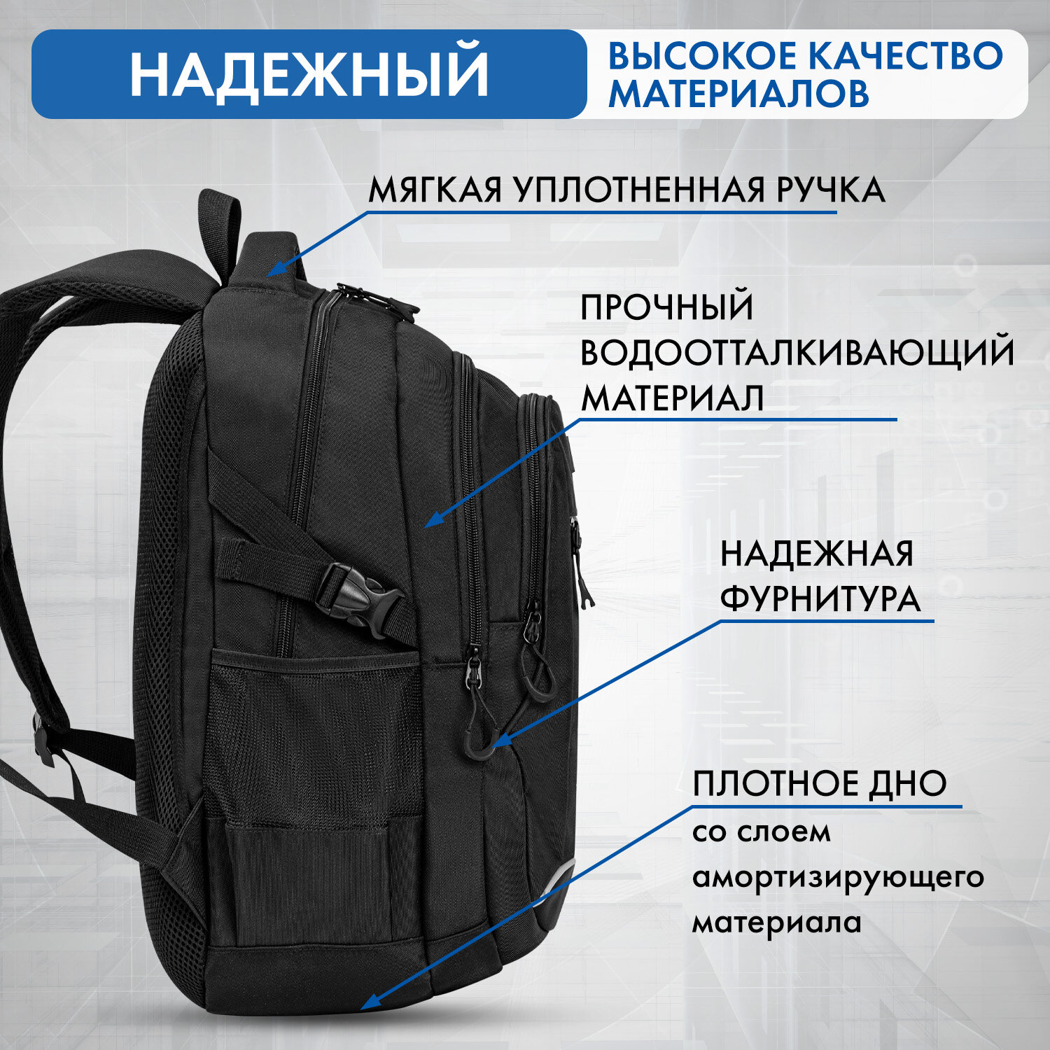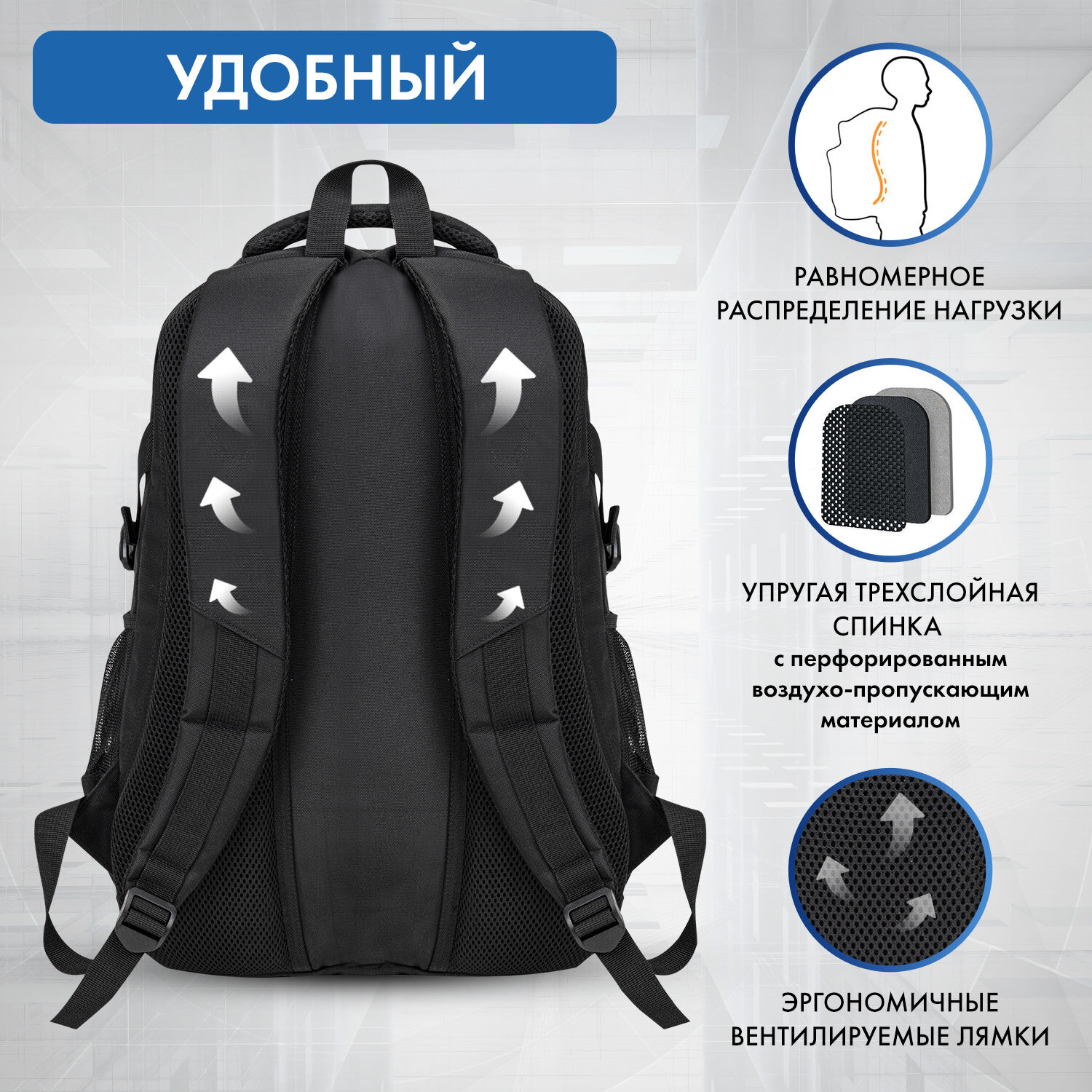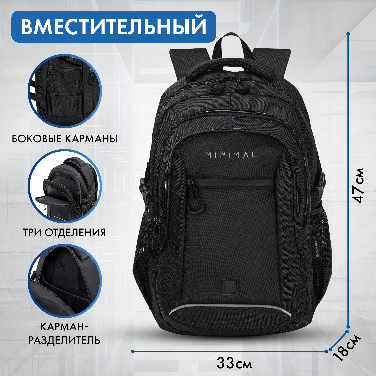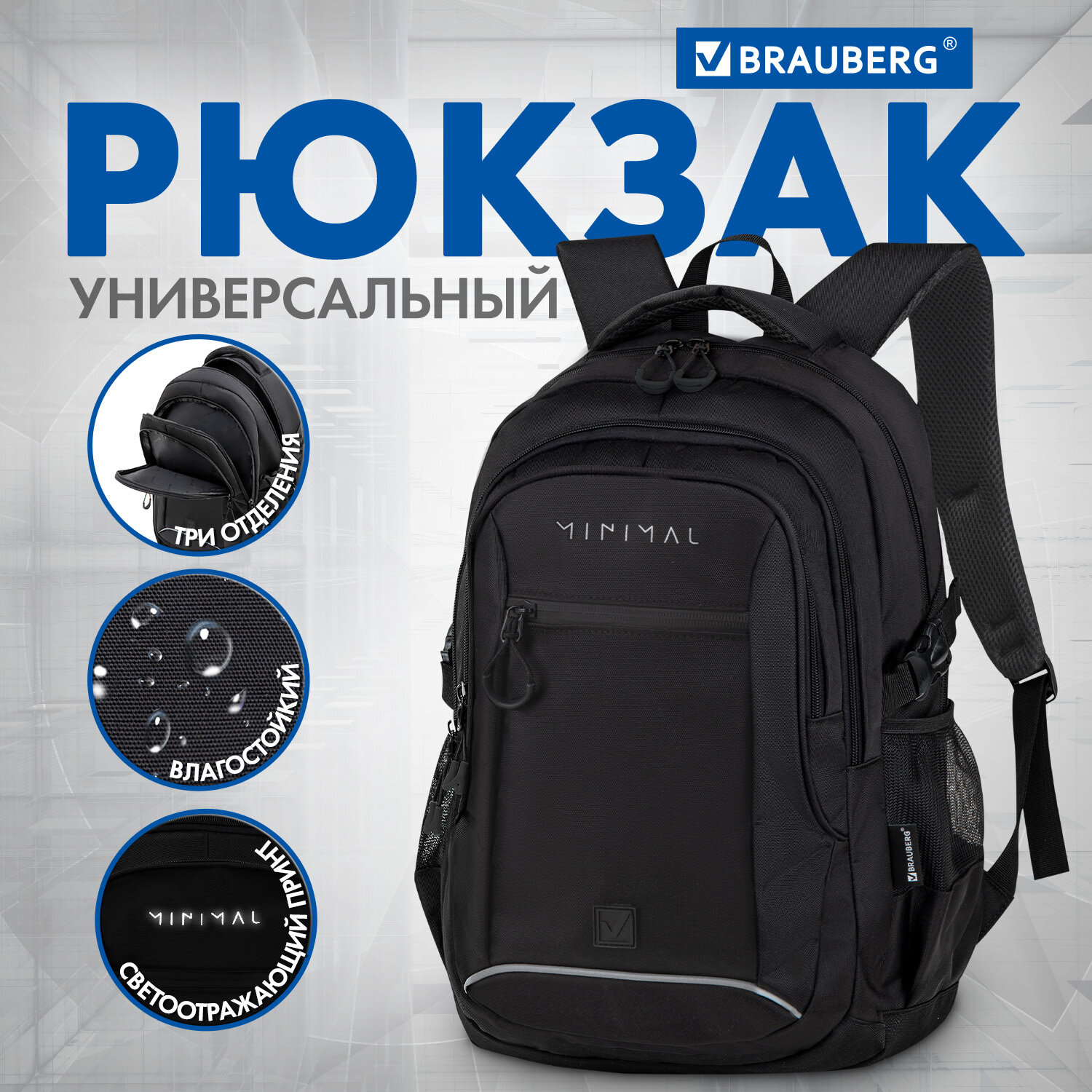 Рюкзак BRAUBERG CONTENT универсальный, 3 отделения, светоотражающий принт, "Minimal", 47х33х18 см Код товара: 273844 1 862,18 ₽ Купить Производитель:BRAUBERG Классический рюкзак BRAUBERG CONTENT с отличной функциональной организацией и эргономичностью подходит как для учебы, так и для активного отдыха. Удобный и надежный рюкзак BRAUBERG серии CONTENT имеет оптимальную функциональную организацию: 3 вместительных отделения, боковые карманы и наружный карман для быстрого доступа к необходимым вещам. Внутри основного отделения предусмотрен большой карман с плотной стенкой, который при необходимости защитит от повреждений учебные пособия или другие важные вещи. Укрепленная вентилируемая спинка рюкзака с анатомическими вставками обеспечивает удобное прилегание к спине и способствуя равномерному распределению нагрузки, делая эту модель комфортной и безопасной для ежедневного использования. Широкие эргономичные S-образные плечевые ремни анатомической формы оснащены мягкой, пропускающей воздух набивной подкладкой, что способствует удобной носке. Длина лямок – 44 см, длина тесьмы – 42 см. Удобная регулировка длины производится с помощью пряжек, выполненных из качественного пластика. Дополнительные швы надежно фиксируют лямки в верхней и нижней части рюкзака. Рюкзак изготовлен из надежного и качественного материала – полиэстера. Благодаря специальной обработке материал обладает водоотталкивающим эффектом. Сдержанный, но в то же время оригинальный принт выполнен с использованием специальной безопасной краски. Серые элементы дизайна обладают светоотражающим эффектом, что способствует дополнительной безопасности владельца в условиях недостаточной видимости. Для подкладки используется прочный, устойчивый к воздействию загрязнений полиэстер. На подкладку нанесено фирменное брендирование. Стягивающие боковые ремни позволяют регулировать объем рюкзака в зависимости от наполнения. Если рюкзак не заполнен полностью, его можно сжать боковыми стягивающими ремнями, придав аккуратную форму и внешний вид. Рюкзак легко открывать и закрывать одной рукой с любой стороны – основное отделение имеет долговечную молнию с удобными и яркими бегунками. В боковых карманах на резинке можно разместить бутылочку, термос или зонт. Нести рюкзак будет удобно не только на плечах, но и в руке за прочную уплотненную ручку. Для подвешивания на крючок можно использовать ручку-петлю. Рюкзак упакован в плотный ПЭТ-пакет, который сохранит качество и товарный вид при хранении и транспортировке.Производство: КитайПол: унисексСерия: CONTENTОбъем: 26 лКоличество отделений: 3Вентилируемая спинка: даРегулируемые лямки: даПерегородка в основном отделении: даКоличество карманов: 4 шт.Фронтальный карман: даБоковые карманы: даНаличие ручки для переноса: даВентилируемые лямки: даРемни для утягивания основного отделения: даМатериал: полиэстерЦвет: черный/серыйДизайн: MinimalВысота: 47 смШирина: 33 смГлубина: 18 смДлина лямок: 86 смВес: 0.76 кгРазмер упаковки: 4.2 × 48.8 × 35.1 смОбъём: 0.0078 м3Промежуточная упаковка: 6 штТранспортная упаковка: 18 штШтрих-код: 4606224502496 Сертификат-1.jpg Сертификат-2.jpg Сертификат-3.jpg