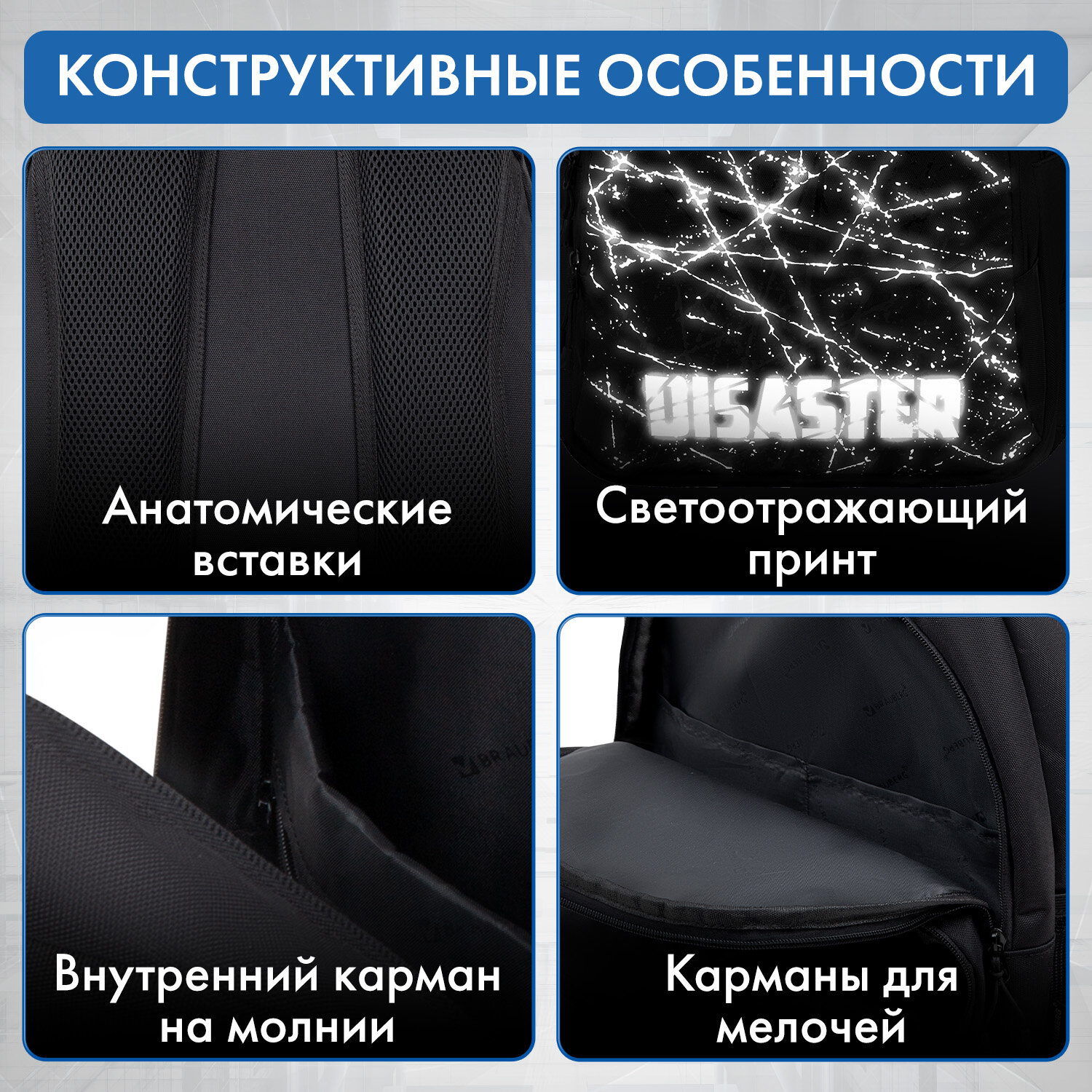 Рюкзак BRAUBERG CONCEPT универсальный, 2 отделения, светоотражающий принт, "Disaster", 45х30х18 см Код товара: 273848 1 667,35 ₽ Купить Производитель:BRAUBERG Новая форма классических рюкзаков с отличной функциональной организацией и эргономичностью обеспечат комфортное использование как для учебы, так и для отдыха. В дизайне используются трендовые принты с использованием светоотражающей краски. Удобный и надежный рюкзак BRAUBERG серии CONCEPT имеет оптимальную функциональную организацию – 2 вместительных отделения, боковые карманы и наружный карман для быстрого доступа к необходимым вещам. Внутри основного отделения предусмотрен большой карман с плотной стенкой, который при необходимости защитит от повреждений учебные пособия. Имеется дополнительный карман на молнии для сохранности важных вещей. 2 кармана для мелочей расположены в дополнительном отделении. Жесткая вентилируемая спинка рюкзака с анатомическими вставками обеспечивает удобное прилегание к спине и способствует равномерному распределению нагрузки, делая эту модель комфортной и безопасной для ежедневного использования. Широкие эргономичные S-образные плечевые ремни анатомической формы оснащены мягкой, пропускающей воздух набивной подкладкой, способствуя удобной носке. Длина лямок – 44 см, длина тесьмы – 42 см. Удобная регулировка длины производится с помощью пряжек, выполненных из качественного пластика. Дополнительные швы надежно фиксируют лямки в верхней и нижней части рюкзака. Рюкзак изготовлен из надежного и качественного материала – полиэстера. Благодаря специальной обработке материал обладает водоотталкивающим эффектом. Сдержанный, но в тоже время оригинальный принт выполнен с использованием специальной безопасной краски. Серые элементы дизайна обладают светоотражающим эффектом, что способствует дополнительной безопасности владельца в условиях недостаточной видимости. Для подкладки используется прочный, устойчивый к воздействию загрязнений полиэстер с фирменным брендированием. Рюкзак легко открывать и закрывать одной рукой с любой стороны – основное отделение имеет долговечную молнию с удобными и яркими бегунками. В боковых карманах на резинке можно разместить бутылочку, термос или зонт. Нести рюкзак будет удобно не только на плечах, но и в руке за прочную уплотненную ручку. Для подвешивания на крючок можно использовать ручку-петлю. Рюкзак упакован в плотный ПЭТ-пакет, который сохранит качество и товарный вид при хранении и транспортировке.Производство: КитайПол: унисексСерия: CONCEPTОбъем: 23 лКоличество отделений: 2Вентилируемая спинка: даРегулируемые лямки: даКоличество карманов: 6 шт.Фронтальный карман: даБоковые карманы: даНаличие ручки для переноса: даВентилируемые лямки: даМатериал: полиэстерЦвет: черный/серыйДизайн: DisasterВысота: 45 смШирина: 30 смГлубина: 18 смДлина лямок: 86 смВес: 0.65 кгРазмер упаковки: 4 × 47.8 × 35 смОбъём: 0.0077 м3Промежуточная упаковка: 6 штТранспортная упаковка: 18 штШтрих-код: 4606224502533 Сертификат-1.jpg Сертификат-2.jpg Сертификат-3.jpg