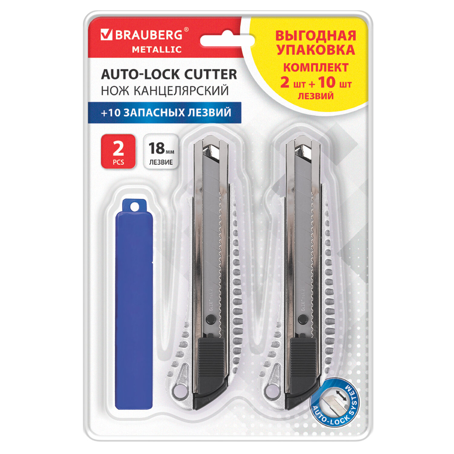 Нож канцелярский 18 мм, КОМПЛЕКТ 2 штуки + 10 ЛЕЗВИЙ, BRAUBERG Metallic, металлический корпус Код товара: 273929 658,77 ₽ Купить Производитель:BRAUBERG Канцелярский нож BRAUBERG "Metallic" – незаменимый инструмент для разрезания бумажных или картонных листов, линолеума, кожи и других плоских поверхностей. Оставляет ровный разрез без зазубрин, что особенно важно при соблюдении точности резки. У ножа имеется надежный автоматический фиксатор длины лезвия, благодаря чему конструкция не деформируется при работе. Затупившийся конец лезвия легко удалить, отломив небольшой фрагмент. Металлический корпус серебристого цвета обеспечивает долговечность ножа, а рифленые края предотвращают соскальзывание руки при работе с инструментом. Ширина лезвия стандартная, 18 мм. Для удобства хранения имеется отверстие для подвеса. Комплект продается в пластиковом блистере с европодвесом.Производство: КитайШирина лезвия: 18 ммКоличество ножей в комплекте: 2 шт.Количество запасных лезвий в комплекте: 10 шт.Тип механизма фиксации: система блокировки лезвияМатериал корпуса: металлНаличие металлических направляющих: даСерия: MetallicЭргономичный дизайн: даОтверстие для подвеса: даЦвет корпуса: черный/серебристыйУпаковка: блистер с европодвесомВес: 340 грРазмер упаковки: 2 × 25.5 × 17.3 смОбъём: 0.001 м3Промежуточная упаковка: 6 штТранспортная упаковка: 36 штШтрих-код: 4606224502243 Файлы Сертификат-1.jpg Сертификат-2.jpg Сертификат-3.jpg Сертификат-4.jpg Сертификат-5.jpg Сертификат-6.jpg Сертификат-7.jpg Сертификат-8.jpg Сертификат-9.jpg Сертификат-10.jpg Сертификат-11.jpg Сертификат-12.jpg Сертификат-13.jpg Сертификат-14.jpg Сертификат-15.jpg Сертификат-16.jpg Сертификат-17.jpg Сертификат-18.jpg Сертификат-19.jpg Сертификат-20.jpg Сертификат-21.jpg Сертификат-22.jpg Сертификат-23.jpg Сертификат-24.jpg Сертификат-25.jpg Сертификат-26.jpg