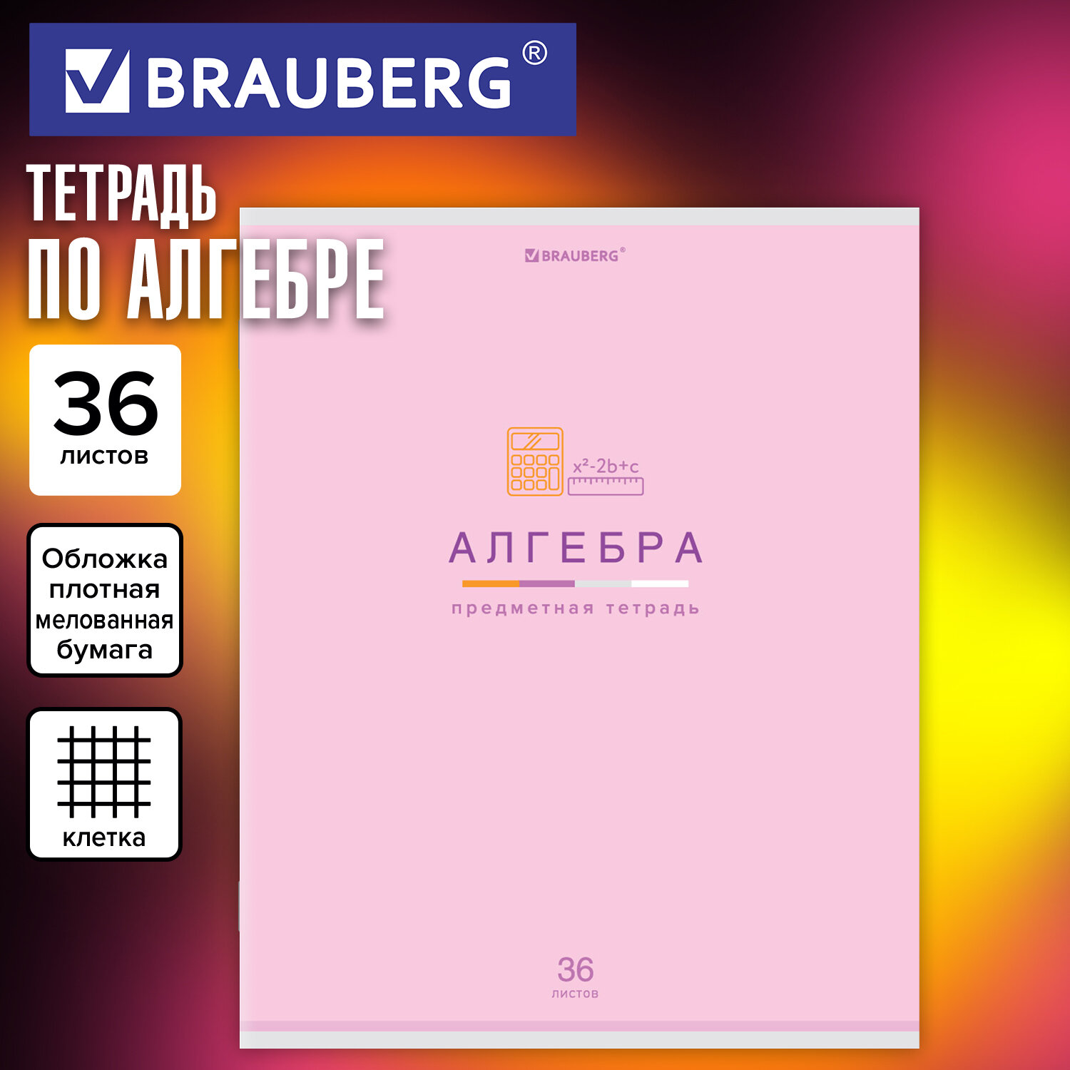 Тетрадь предметная "МИР ЗНАНИЙ" 36 л., обложка мелованная бумага, АЛГЕБРА, клетка, BRAUBERG Код товара: 404593 34,98 ₽ Купить Производитель:BRAUBERG Предметная тетрадь BRAUBERG из серии "МИР ЗНАНИЙ" предназначена для учащихся средних и старших классов. Выполнена в современном дизайне. Тетрадь по алгебре формата А5 (165х202 мм) содержит 48 листов, изготовленных из высококачественной офсетной бумаги плотностью 60 г/м2 и белизной 100%. Листы соединены скобами. Линовка блока - клетка, красные поля. Обложка выполнена из мелованной бумаги плотностью 170 г/м2. Подсказ по предмету отсутствует.Производство: РоссияПредмет: алгебраСерия: МИР ЗНАНИЙКоличество листов: 36Формат: А5Линовка блока: клеткаКрасные поля: даТип скрепления: скобаВнутренний блок: офсетПлотность внутренного блока: 60 г/м2Белизна: 100 %Обложка: мелованная бумагаДизайн: МИР ЗНАНИЙПлотность обложки: 170 г/м2Длина: 205 ммШирина: 165 ммВес: 88 грРазмер упаковки: 0.4 × 20.2 × 16.5 смОбъём: 0.0002 м3Промежуточная упаковка: 10 штТранспортная упаковка: 80 штШтрих-код: 4606224383507 Файлы Приложение-1.pdf Сертификат-1.jpg Сертификат-2.jpg Сертификат-3.jpg Сертификат-4.jpg