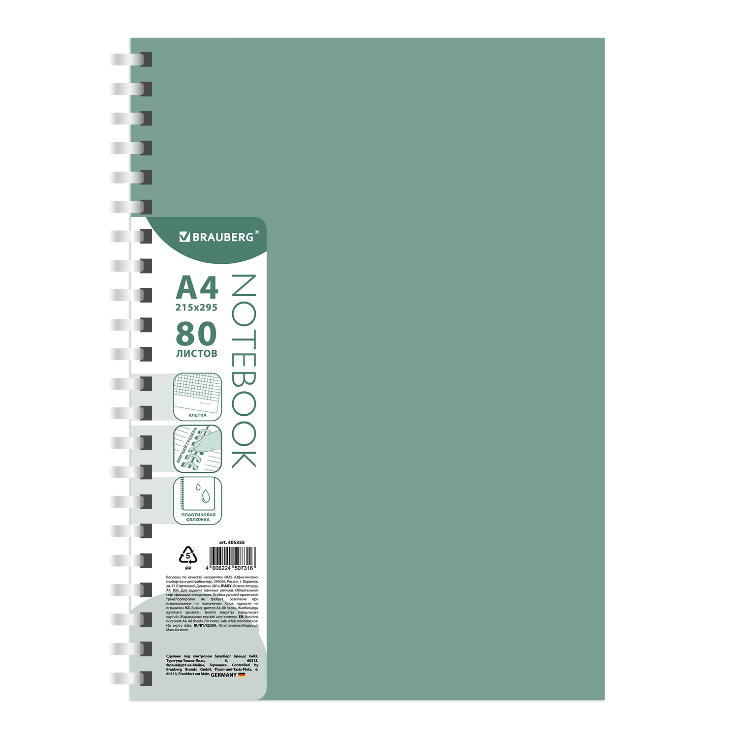 Тетрадь обложка пластик, А4 80 л., гребень мягкий (силиконовый), клетка, BRAUBERG, зеленая Код товара: 405355 315,45 ₽ Купить Производитель:BRAUBERG Стильная и практичная тетрадь BRAUBERG станет незаменимым помощником для старшеклассников, студентов и офисных сотрудников. Она идеально подходит для учебы, работы и повседневных записей, обеспечивая комфорт и удобство в использовании. Прочная пластиковая обложка надежно защищает внутренний блок от повреждений и влаги, продлевая срок службы тетради. Внутри – 80 листов высококачественной офсетной бумаги плотностью 70 г/м2 и белизной 100%, обеспечивающей комфортное письмо. Удобная линовка в клетку с полями помогает вести структурированные записи. Листы скреплены мягким силиконовым гребнем, что обеспечивает удобство использования тетради и комфорт при письме. Формат А4 позволяет разместить большой объем информации, что делает тетрадь идеальным выбором для учебы, работы и деловых заметок.Производство: КитайКоличество листов: 80Тип скрепления: гребень силиконовыйМатериал обложки: пластикЛиновка блока: клеткаНаличие полей: даЦвет бумаги блока: белыйСерия: Мягкий гребеньДизайн: зеленыйФормат: А4Плотность внутреннего блока: 70 г/м2Белизна: 100 %Однотонный дизайн обложки: даКоличество дизайнов в минимальной упаковке: 1 шт.Количество дизайнов в транспортной упаковке: 1 шт.Длина: 295 ммШирина: 215 ммИндивидуальная упаковка: даВес: 410 грРазмер упаковки: 1.5 × 21.5 × 29.5 смОбъём: 0.0007 м3Промежуточная упаковка: 36 штТранспортная упаковка: 36 штШтрих-код: 4606224507316 Файлы Сертификат-1.jpg Сертификат-2.jpg Сертификат-3.jpg Сертификат-4.jpg Сертификат-5.jpg Сертификат-6.jpg Сертификат-7.jpg Сертификат-8.jpg Сертификат-9.jpg Сертификат-10.jpg Сертификат-11.jpg Сертификат-12.jpg Сертификат-13.jpg Сертификат-14.jpg Сертификат-15.jpg Сертификат-16.jpg Сертификат-17.jpg Сертификат-18.jpg Сертификат-19.jpg Сертификат-20.jpg Сертификат-21.jpg Сертификат-22.jpg Сертификат-23.jpg Сертификат-24.jpg Сертификат-25.jpg Сертификат-26.jpg