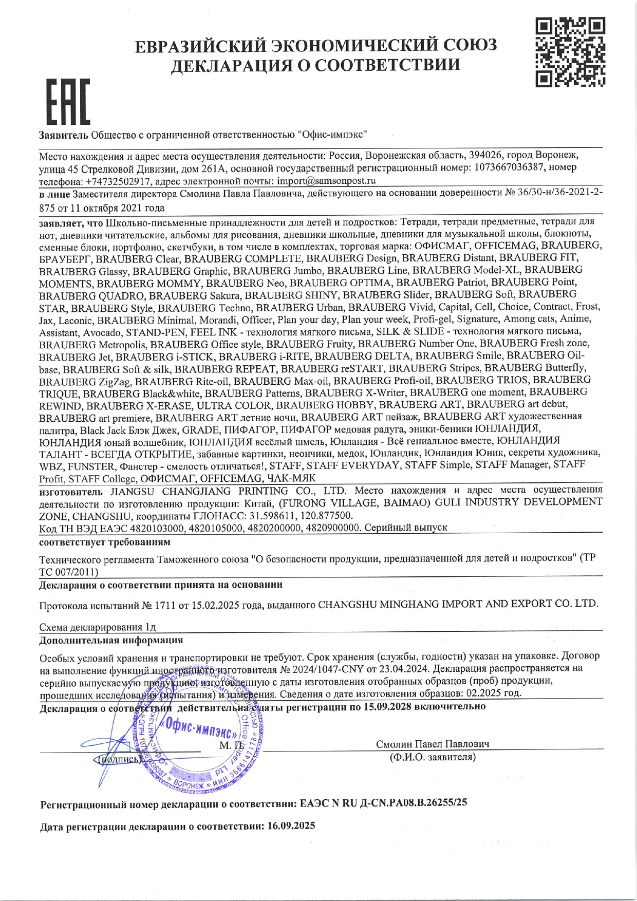 Тетрадь обложка пластик, А5 80 л., гребень мягкий, вырубка для ручки, клетка, BRAUBERG, серый Код товара: 405377 169,56 ₽ Купить Производитель:BRAUBERG Стильная и практичная тетрадь BRAUBERG станет незаменимым помощником для старшеклассников, студентов и офисных сотрудников. Она идеально подходит для учебы, работы и повседневных записей, обеспечивая комфорт и удобство в использовании. Прочная пластиковая обложка надежно защищает внутренний блок от повреждений и влаги, продлевая срок службы тетради. Обложка тетради оснащена специальной вырубкой для удобного крепления ручки. Внутри – 80 листов высококачественной офсетной бумаги плотностью 70 г/м2 и белизной 100%, обеспечивающей комфортное письмо. Удобная линовка в клетку с полями помогает вести структурированные записи. Листы скреплены мягким силиконовым гребнем, что обеспечивает удобство использования тетради и комфорт при письме. Тетрадь формата А5 – это удобное и практичное решение для учебы, работы и повседневных заметок. Она компактна, легко помещается в сумку или рюкзак, но при этом вместительна для удобного письма.Производство: КитайКоличество листов: 80Тип скрепления: гребень силиконовыйФормат: А5Материал обложки: пластикЛиновка блока: клеткаНаличие полей: даСерия: Мягкий гребень_2Дизайн: СерыйЦвет бумаги блока: белыйПлотность внутреннего блока: 70 г/м2Белизна: 100 %Однотонный дизайн обложки: даКоличество дизайнов в минимальной упаковке: 1 шт.Количество дизайнов в транспортной упаковке: 1 шт.Длина: 210 ммШирина: 148 ммИндивидуальная упаковка: даВес: 230 грРазмер упаковки: 1.4 × 22.4 × 15.4 смОбъём: 0.0004 м3Промежуточная упаковка: 48 штТранспортная упаковка: 48 штШтрих-код: 4606224507613 Сертификат-1.jpg Сертификат-2.jpg Сертификат-3.jpg