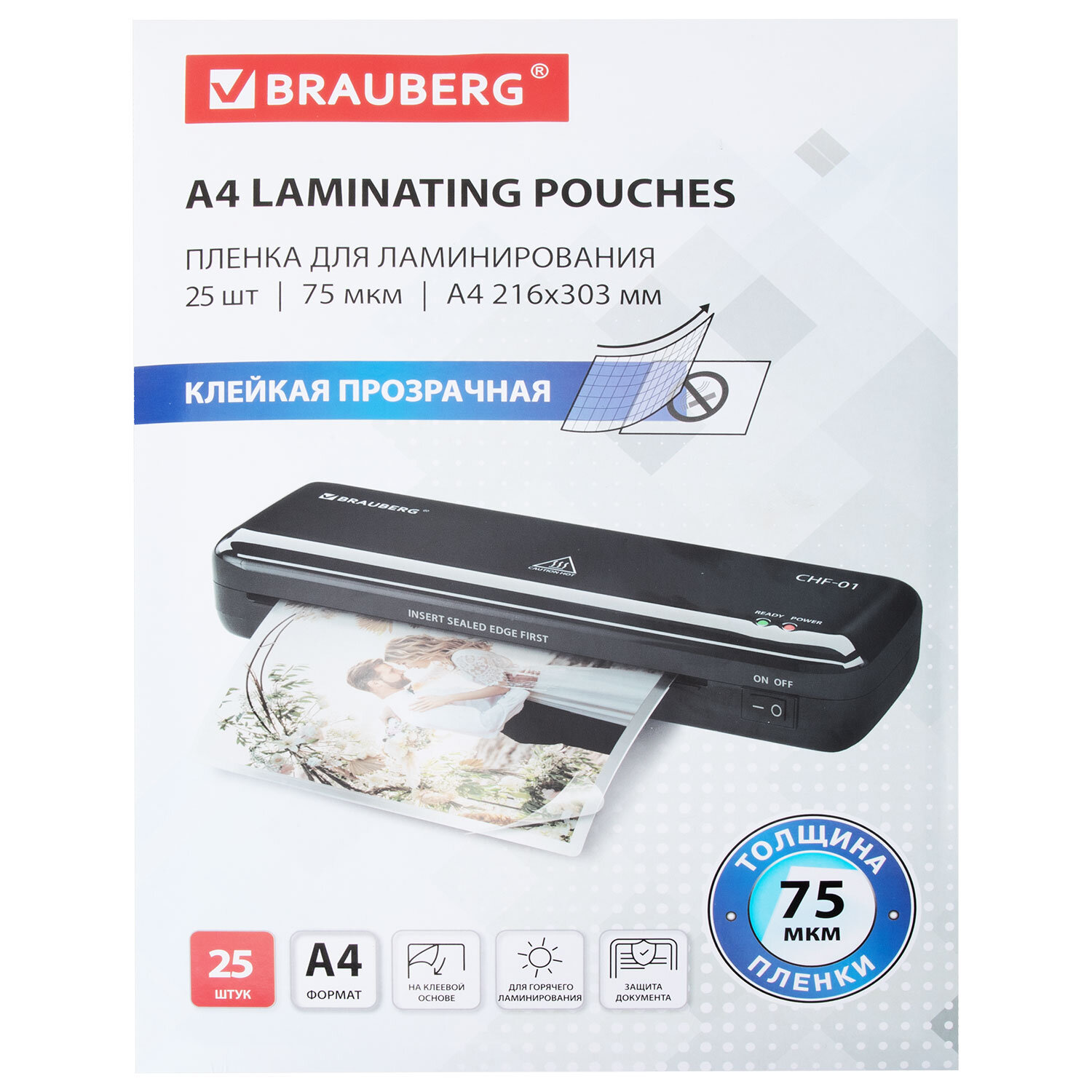 Пленки-заготовки для ламинирования с клейкой прозрачной стороной А4, КОМПЛЕКТ 25 шт., 75 мкм, BRAUBERG Код товара: 533117 940,82 ₽ Купить Производитель:BRAUBERG Плёнка для ламинирования BRAUBERG с прозрачным клейким слоем идеальна для демонстрации документов на стеклянных поверхностях – окнах, витринах, дверях. Ламинируйте, приклейте и обеспечьте отличную видимость с обеих сторон без искажений. Представляет собой двойной пакет, спаянный с одной стороны (содержание полиэстера > 50%). Документ вкладывается между слоями пленки и в дальнейшем подвергается термообработке в ламинаторе. Суммарная толщина пленки-заготовки – 150 (75х2) мкм, что позволяет защитить документы и увеличить жесткость, сохраняя яркость изображения. Пленка для ламинирования BRAUBERG формата А4 (216х303 мм) имеет уникальный состав: полиэтилентерефталат (PET), этиленвинилацетат (EVA), полиэтилен (LDPE). Промежуточный слой полиэтилена (LDPE) выступает как связующий элемент между слоями PET и EVA, служит дополнительной защитой от вероятного вытекания клея из-под пленки при ламинировании. Полиэтилен (PE) придает пакетам прочность эластичность и износостойкость. Глянцевое покрытие пленки способствует сохранению и максимальной передаче цвета ламинируемого изображения. Поставляется в картонной упаковке по 25 штук, которых при нечастом использовании хватает на продолжительное время.Производство: КитайФормат: А4Толщина пленки: 75 мкмТип: пакетДлина: 216 ммШирина: 303 ммТип плёнки: клейкая прозрачнаяВ комплекте: 25 шт.Вес: 438 грРазмер упаковки: 0.6 × 34.9 × 24.7 смОбъём: 0.0007 м3Промежуточная упаковка: 40 штТранспортная упаковка: 40 штШтрих-код: 4606224484686 Файлы Сертификат-1.jpg Сертификат-2.jpg Сертификат-3.jpg Сертификат-4.jpg Сертификат-5.jpg Сертификат-6.jpg Сертификат-7.jpg Сертификат-8.jpg Сертификат-9.jpg Сертификат-10.jpg Сертификат-11.jpg Сертификат-12.jpg Сертификат-13.jpg Сертификат-14.jpg Сертификат-15.jpg Сертификат-16.jpg Сертификат-17.jpg Сертификат-18.jpg Сертификат-19.jpg Сертификат-20.jpg Сертификат-21.jpg Сертификат-22.jpg Сертификат-23.jpg Сертификат-24.jpg Сертификат-25.jpg Сертификат-26.jpg