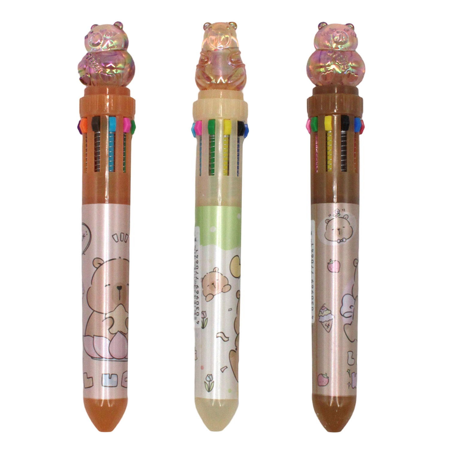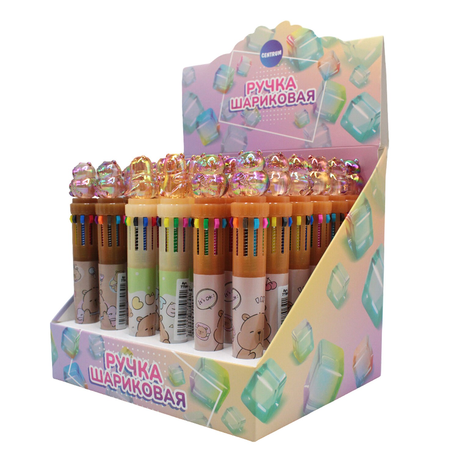 Ручка многоцветная с топпером шариковая 10 ЦВЕТОВ "Капибара", ассорти, линия 0,5 мм Код товара: 144582 103,13 ₽ Купить Производитель:CENTRUM Ручка многоцветная с топпером шариковая 10 ЦВЕТОВ "Капибара". Модель удобна в использовании, экономит место в пенале или на рабочем столе, позволяет всегда иметь под рукой набор основных цветов для письма и выделения записей. Ручка содержит 10 цветов (черный, коричневый, синий, красный, оранжевый, желтый, зеленый, голубой, розовый, фиолетовый) с оптимальной толщиной пишущего узла 0,7 мм. Автоматический нажимной механизм обеспечивает плавную подачу необходимого стержня. Разноцветные чернила оптимальной консистенции равномерно распределяются при письме, мгновенно высыхая и не размазываясь. Металлический наконечник не деформирует бумагу, обеспечивает плавное и мягкое скольжение, оставляя ровные и четкие линии. Пластиковый круглый корпус дополнен резиновой фигуркой, не утяжеляющей ручку.Производство: КитайЦвет чернил: ассортиОдноразовая: даТолщина линии письма: 0.5 ммДиаметр пишущего узла: 0.7 ммФорма наконечника: стандартныйКоличество в комплекте: 1 шт.Эргономичная зона захвата: нетЦвет корпуса: ассортиДизайн: КапибараФорма корпуса: круглаяПокрытие корпуса: -Упаковка: нетСрок годности: 60 месВес: 21 грРазмер упаковки: 2.5 × 15.5 × 2.5 смОбъём: 0.0001 м3Промежуточная упаковка: 36 штТранспортная упаковка: 972 штШтрих-код: 4030969774274 Сертификат-1.jpg Сертификат-2.jpg Сертификат-3.jpg