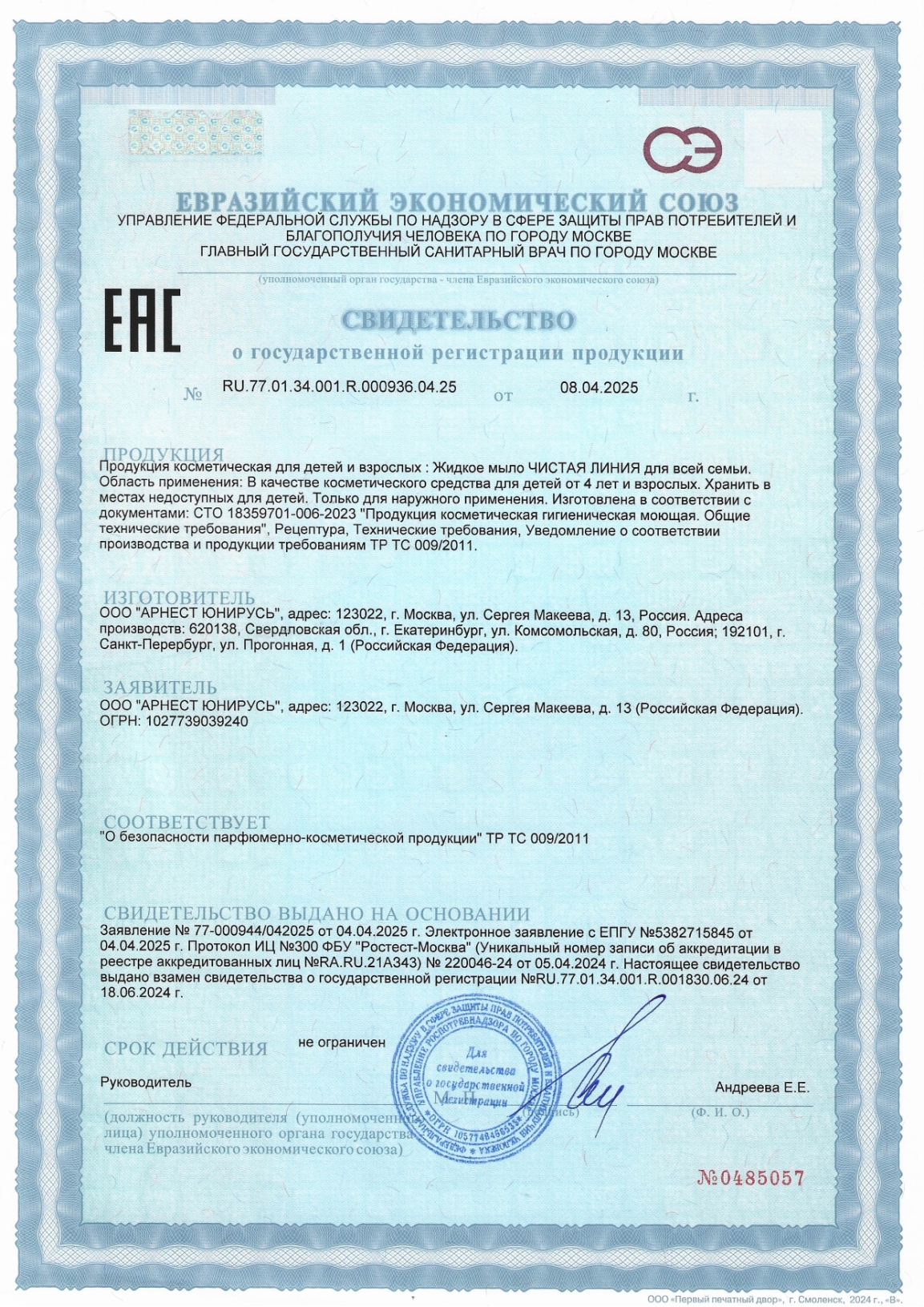 - Срок годности: 36 мес