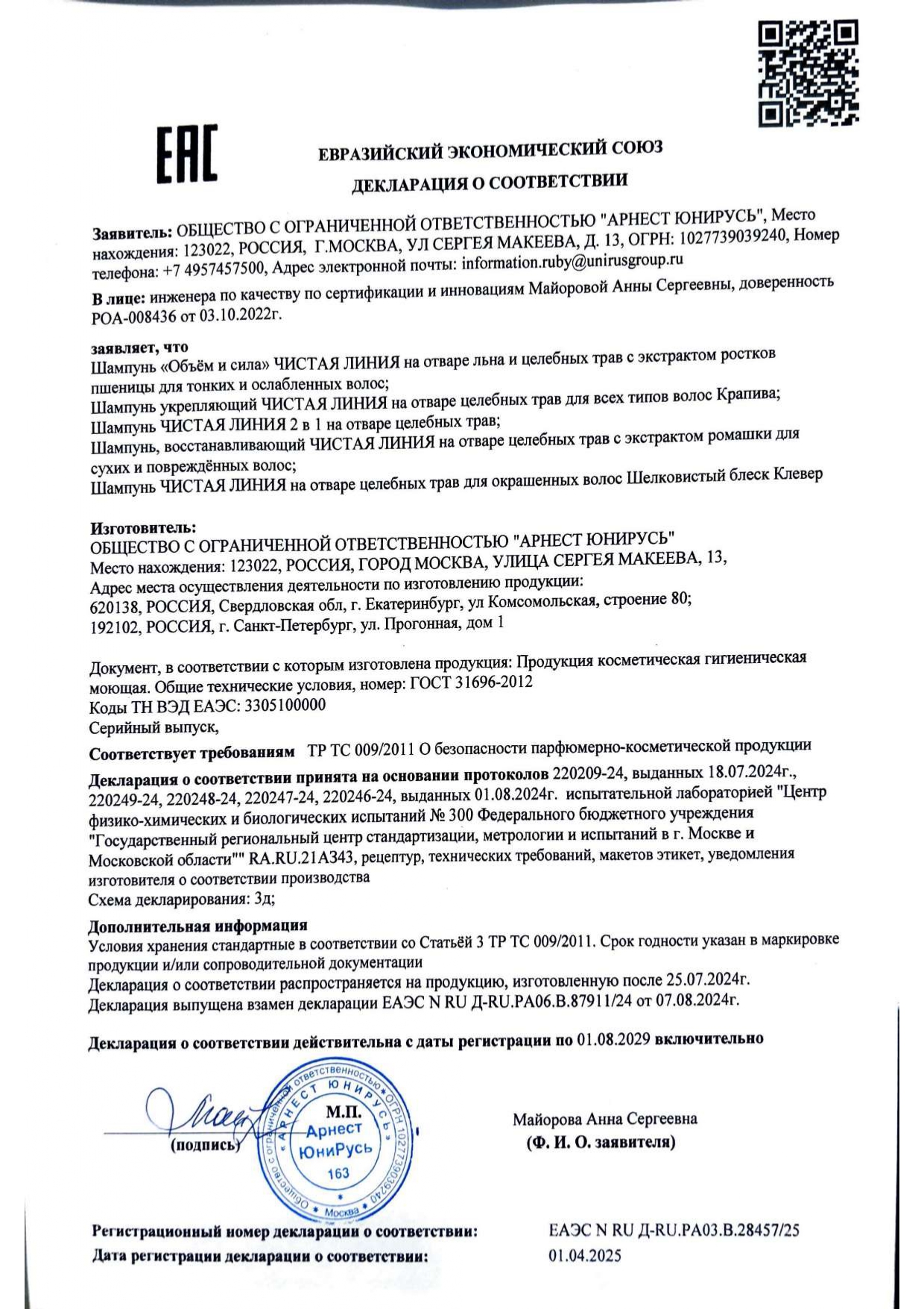 Свойства шампуня подтверждены потребительским тестированием.