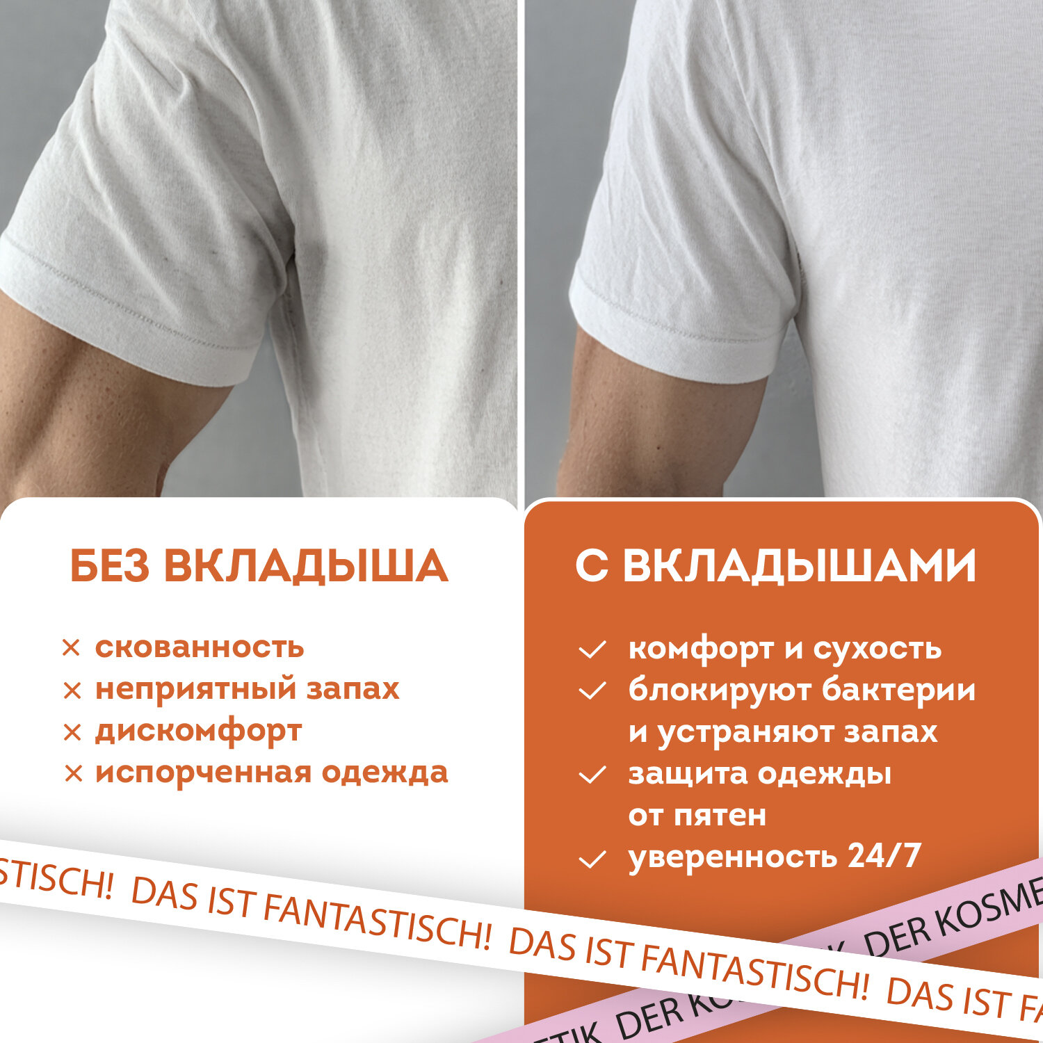 Вкладыши от пота, прокладки для подмышек, 24 шт., белый цвет, размер M, DASWERK (ДАСВЕРК) Код товара: 609980 174,83 ₽ Купить Производитель:DASWERK Вкладыши от пота DASWERK – незаметная защита от влаги и запаха на весь день! Ультратонкие, надежно фиксируются на одежде, подходят для мужчин и женщин, дарят уверенность и комфорт в любой ситуации. Вкладыши от пота DASWERK – незаменимый помощник для тех, кто ценит комфорт и уверенность в любой ситуации! Эти ультратонкие (всего 1 мм толщиной) одноразовые вкладыши станут вашим спасением от мокрых пятен и неприятного запаха. Благодаря самоклеящейся основе они прочно фиксируются на одежде и остаются совершенно незаметными даже под самой тонкой тканью – будь то легкая блузка, строгая рубашка или облегающая футболка. Вкладыши изготовлены из дышащих гипоаллергенных материалов, которые не вызывают раздражения и подходят даже для чувствительной кожи. Они отлично впитывают влагу, предотвращая появление пятен и белых следов от дезодоранта, а также нейтрализуют неприятные запахи. Идеальный выбор как для мужчин, так и для женщин. Каждая упаковка содержит 24 удобных вкладыша (12 пар), каждый из которых индивидуально упакован – вы легко сможете брать их с собой на работу, тренировку или важную встречу. С вкладышами от пота DASWERK вы забудете о дискомфорте и сможете носить любую одежду с удовольствием, оставаясь свежим и уверенным в себе. Размер – M. Классический белый цвет.Производство: КитайТип товара: вкладыши от потаЦвет: белыйРазмер: 9,5х12 см (M)Количество в комплекте: 24 шт.Срок годности: 60 месВес: 69 грРазмер упаковки: 3.7 × 17.7 × 15.7 смОбъём: 0.0007 м3Промежуточная упаковка: 100 штТранспортная упаковка: 100 штШтрих-код: 4606224460994 Сертификат-1.jpg Сертификат-2.jpg