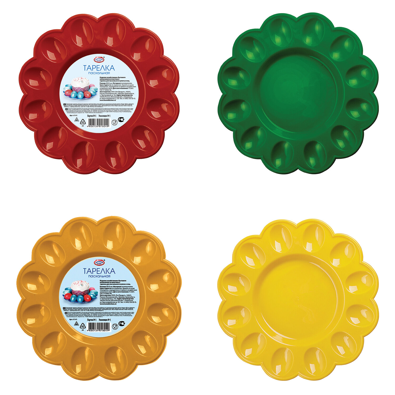 Подставка пасхальная для кулича и яиц, d 23,5 см, 12 яиц, пластик, цвет красный, 42976 Код товара: 592677 125,77 ₽ Купить Производитель:ДОМАШНЯЯ КУХНЯ Подставка для куличей и яиц — это не просто красивый элемент сервировки, а практичное и традиционное решение для праздничного стола, особенно на Пасху! Пасхальная подставка предназначена для праздничного украшения Вашего стола в Светлый День Пасхи. В центре декоративной подставки диаметр 12,4 см - для пасхального кулича, а по окружности - 12 отверстий для пасхальных яиц. Диаметр декоративной подставки - 23,5 см. Материал изделия - полипропилен. Поставляется в 4х цвета ассорти (без возможности выбора): красный, золотистый, зеленый, жёлтый. Без индивидуальной упаковки.Производство: РоссияТип товара: подставкаРазмер: 23,5 смМатериал: пластикЦвет: ассортиКоличество в комплекте: 1 шт.Вес: 55 грРазмер упаковки: 0.5 × 23.5 × 23.5 смОбъём: 0.0004 м3Промежуточная упаковка: 10 штТранспортная упаковка: 50 штШтрих-код: 4606134018049 Сертификат-1.jpg Сертификат-2.jpg Сертификат-3.jpg