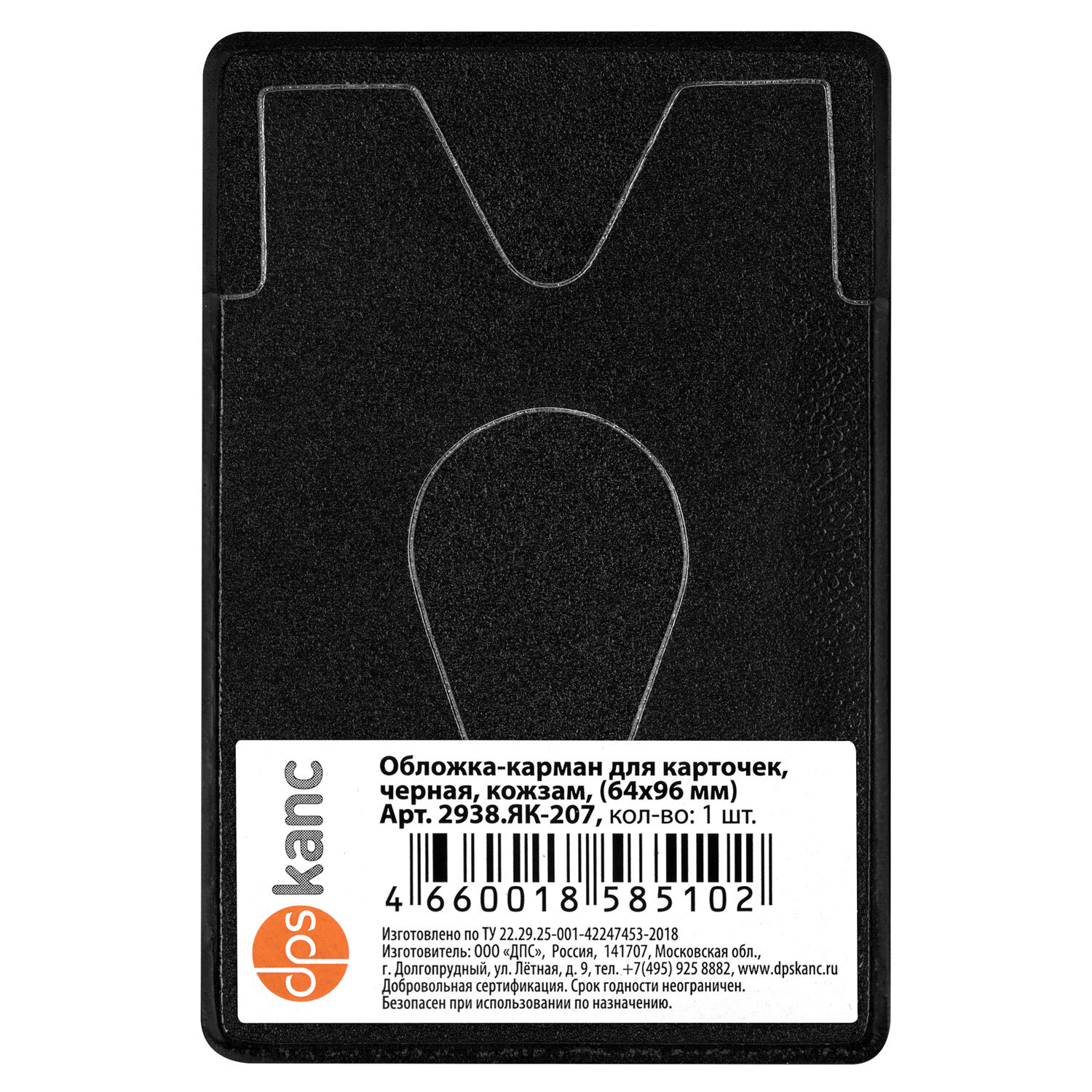 Обложка-карман для карт/картхолдер с вырезом, 64х96 мм, кожзам, черная, ДПС Код товара: 239048 51,52 ₽ Купить Производитель:ДПС Обложка для карт/картхолдер на телефон самоклеящийся ДПС надежно защитит карты от загрязнений и мелких царапин. Обложка имеет один карман для карт с вырубкой под палец и выполнена из плотного ПВХ 300 мкм с кожзаменителем. Размер обложки – 64х96 мм.Производство: РоссияВид документа: КартаТип обложки: мягкая с вырезомМатериал: кожзаменительПоверхность обложки: под кожуТиснение: нетСерия: нетКоличество карманов: 1 шт.Количество кармашков для пластиковых карт: 1 шт.Длина: 96 ммШирина: 64 ммТолщина: 1 ммЦвет: черныйВес: 6 грРазмер упаковки: 0.1 × 9.8 × 6.5 смПромежуточная упаковка: 25 штТранспортная упаковка: 1800 штШтрих-код: 4660018585102 Сертификат-1.jpg Сертификат-2.jpg Сертификат-3.jpg