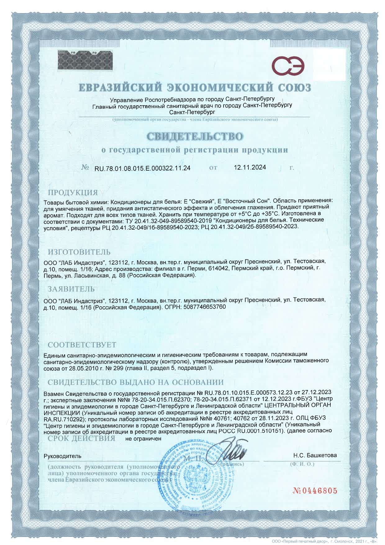 Кондиционер-ополаскиватель 4 л, E "Свежий" Код товара: 609651 574,21 ₽ Купить Производитель:E. Кондиционер-ополаскиватель E "Свежий" обеспечивает свежесть белья, придает ему приятный аромат и мягкость, облегчает глажку и обладает антистатическим эффектом. Кондиционер-ополаскиватель E "Свежий" ухаживает за любой одеждой благодаря современной формуле из ПАВ и глицерина. Благодаря кондиционеру белье будет мягким и приятным на ощупь. Дарит белью свежесть и приятный аромат, который сохраняется длительное время. Кондиционер подходит для ополаскивания всех видов тканей, может применяться при машинной и ручной стирке и при ополаскивании детских вещей. Применение: ополаскиватель для белья Е прост в использовании. Благодаря удобной крышке-дозатору вы всегда будете знать, сколько ополаскивателя для белья необходимо добавить в отделение для кондиционера в стиральной машине или при ручной стирке. Его не нужно разбавлять водой. Перед использованием рекомендуется взбалтывать. Информация по дозировке указана на обратной стороне упаковки. Состав: менее 5% катионных ПАВ, отдушки (в том числе гексилциннамаля, бензилсалицилата), консервант, пеногасителя, красителя. Без фосфатов. Меры предосторожности. Осторожно! При попадании в глаза вызывает раздражение. При попадании средства в глаза следует аккуратно промыть глаза водой в течении нескольких минут. Снять контактные линзы, если вы ими пользуетесь и если это легко сделать. Продолжить промывание глаз. Если раздражение не проходит, обратиться за медицинской помощью, по возможности показать этикетку продукта.Производство: РоссияОбъем: 4 л/кгОтдушка: свежийТип ткани: для всех типов тканейС антистатиком: даОблегчает глаженье: даСерия: CONDITIONERВид упаковки: бутыльСрок годности: 24 месВес: 4,32 кгРазмер упаковки: 35 × 18.4 × 12.6 смОбъём: 0.0098 м3Промежуточная упаковка: 4 штТранспортная упаковка: 4 штШтрих-код: 4660286502030 Файлы Сертификат-1.jpg Сертификат-2.jpg Сертификат-3.jpg Сертификат-4.jpg Сертификат-5.jpg Сертификат-6.jpg Сертификат-7.jpg Сертификат-8.jpg Сертификат-9.jpg Сертификат-10.jpg Сертификат-11.jpg Сертификат-12.jpg Сертификат-13.jpg Сертификат-14.jpg Сертификат-15.jpg Сертификат-16.jpg Сертификат-17.jpg Сертификат-18.jpg Сертификат-19.jpg Сертификат-20.jpg Сертификат-21.jpg Сертификат-22.jpg Сертификат-23.jpg Сертификат-24.jpg Сертификат-25.jpg
