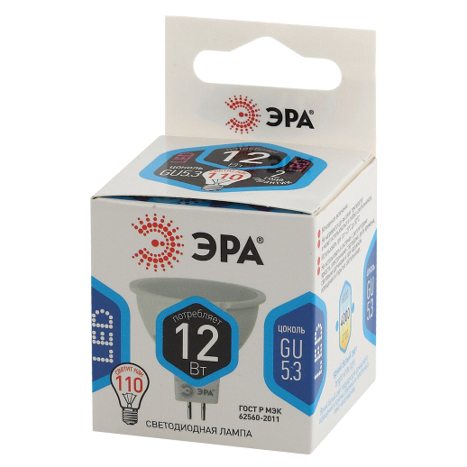 Лампа светодиодная ЭРА STD, 12 (110) Вт, цоколь GU5.3, софит, нейтральный белый свет, 35000 ч., LEDMR1612W840GU5.3 Код товара: 457690 151,23 ₽ Купить Производитель:ЭРА Эта светодиодная лампа ЭРА STD – современный, качественный и доступный источник света. Позволяет экономить до 90% электроэнергии по сравнению с лампой накаливания с аналогичным световым потоком. Светит ярким белым светом, который максимально приближен к естественному дневному. Идеальна для ежедневного применения в быту. Мгновенное включение. Ровное освещение. Можно использовать как с люстрами, так и со светильниками, в том числе настольными и бра.Производство: Китай Тип цоколя : GU5.3Оттенок света: нейтральный белыйМощность: 12 ВтТип лампы: светодиоднаяТип колбы: софитВид колбы: матоваяМинимальное рабочее напряжение: 170 ВМаксимальное рабочее напряжение: 265 ВМощность эквивалентной по световому потоку лампы накаливания: 110 ВтСветовой поток: 960 ЛмЦветовая температура: 4000 КИндекс цветопередачи: 80 %Срок службы: 35000 ч.Высота (длина) лампы: 50 ммДиаметр лампы: 50 ммВес: 28 грРазмер упаковки: 5 × 9.2 × 4.9 смОбъём: 0.0002 м3Промежуточная упаковка: 10 штТранспортная упаковка: 100 штШтрих-код: 5056306007514 Файлы Сертификат-1.jpg Сертификат-2.jpg Сертификат-3.jpg Сертификат-4.jpg Сертификат-5.jpg