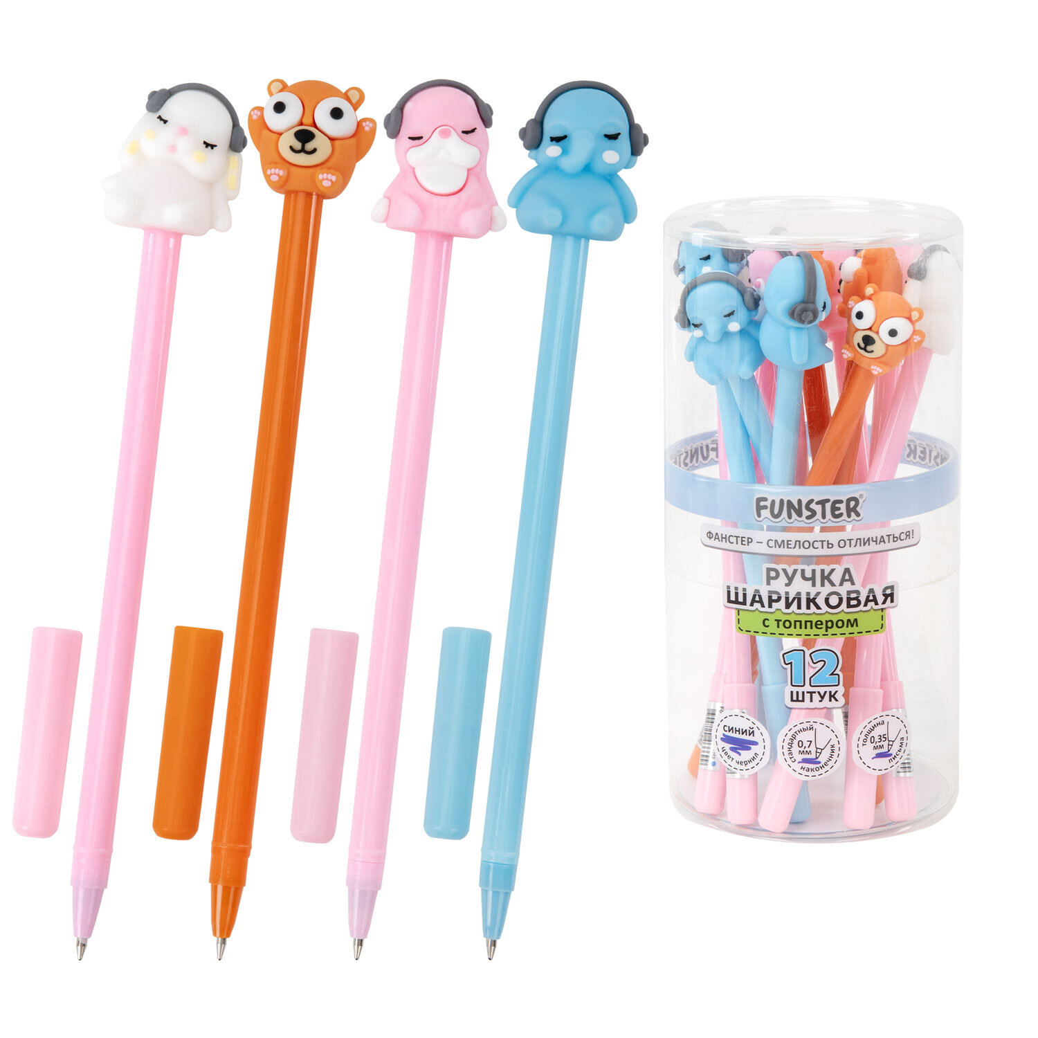 Ручка с топпером шариковая масляная FUNSTER (ФАНСТЕР) "TOPPER MIX", СИНЯЯ, корпус ассорти, пишущий узел 0,7 мм, линия письма 0,35 мм Код товара: 144368 39,14 ₽ Купить Производитель:FUNSTER Ручка с топпером шариковая FUNSTER "TOPPER MIX" – это не только надежный пишущий инструмент, но и стильный аксессуар. Масляные чернила обеспечат комфортный процесс письма, а очаровательный топпер с животными сделает его по-настоящему увлекательным. Ручка шариковая FUNSTER "TOPPER MIX" представлена в круглом корпусе. Конструкцию ручки дополняет милый топпер в форме животных. Благодаря чернилам на масляной основе ручка мягко и плавно скользит по бумаге, минимизируя нагрузку на руку. Стандартный наконечник диаметром 0,7 мм создает линию письма толщиной 0,35 мм. Синий цвет чернил универсален для любых целей, в том числе для ведения записей в школе и университете.Производство: КитайТип ручки: шариковаяЦвет чернил: синийТолщина линии письма: 0.35 ммДиаметр пишущего узла: 0.7 ммСерия: С ТОППЕРОМДлина сменного стержня: 130 ммФорма наконечника: стандартныйПокрытие корпуса: -Форма корпуса: с топперомЦвет корпуса: ассортиДизайн: ЖивотныеУпаковка: пластиковая тубаСрок годности: 60 месВес: 20 грРазмер упаковки: 2.1 × 17.9 × 2.6 смОбъём: 0.0002 м3Промежуточная упаковка: 12 штТранспортная упаковка: 432 штШтрих-код: 4606224466699 Файлы Сертификат-1.jpg Сертификат-2.jpg Сертификат-3.jpg Сертификат-4.jpg Сертификат-5.jpg Сертификат-6.jpg