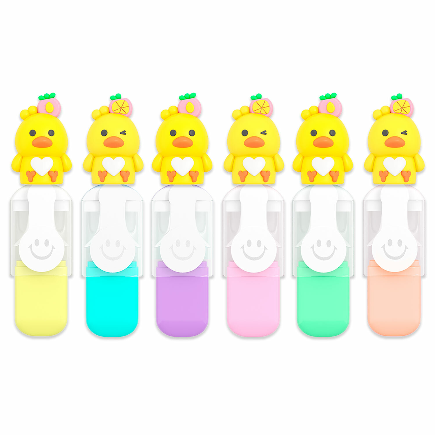 Набор текстовыделителей с топперами 6 ЦВЕТОВ ПАСТЕЛЬ, "НЕЖНЫЕ ЦЫПЛЯТА", линия 1-4мм, FUNSTER (ФАНСТЕР) Код товара: 152653 273,43 ₽ Купить Производитель:FUNSTER Текстовыделители FUNSTER "НЕЖНЫЕ ЦЫПЛЯТА" предназначены для выделения текста на бумаге любого типа. Идеально подходят для решения учебных, домашних и офисных задач. В наборе 6 пастельных цветов: лавандовый, персиковый, ванильный, бирюзовый, пастельный розовый и мятный. Нежные пастельные цвета позволяют создать мягкие переходы и равномерно подчеркнуть необходимую информацию в тексте. Цвет корпуса текстовыделителя соответствует цвету чернил. Текстовыделители имеют плоскую форму корпуса с диаметром 23 мм. Колпак украшен ярким топпером в форме цыплёнка. Скошенный наконечник с толщиной линии письма от 1 до 4 мм обеспечивает удобство при работе с текстом, напечатанным мелким шрифтом, или таблицами. В комплект входит прозрачная сумочка для хранения длиной 15,5 см. Благодаря особой водной основе чернил текстовыделитель не высыхает без колпачка в течение 8 часов. Текстовыделитель обладает экономным расходом чернил. Чернила быстро впитываются и тем самым предотвращают размазывание в процессе использования.Производство: КитайЦвет чернил: пастельный ассортиКоличество в комплекте: 6 шт.Форма наконечника: скошенныйСпецэффект цвета чернил : пастельныйОснова чернил: воднаяСерия: ФигурныеМин. толщина линии письма: 1 ммМакс. толщина линии письма: 4 ммФорма корпуса: плоскаяДиаметр корпуса: 23 ммНаличие клипа: даУпаковка: ПВХ-чехолСрок годности: 48 месВес: 90 грРазмер упаковки: 1.5 × 10.5 × 15.5 смОбъём: 0.0003 м3Промежуточная упаковка: 12 штТранспортная упаковка: 144 штШтрих-код: 4606224508368