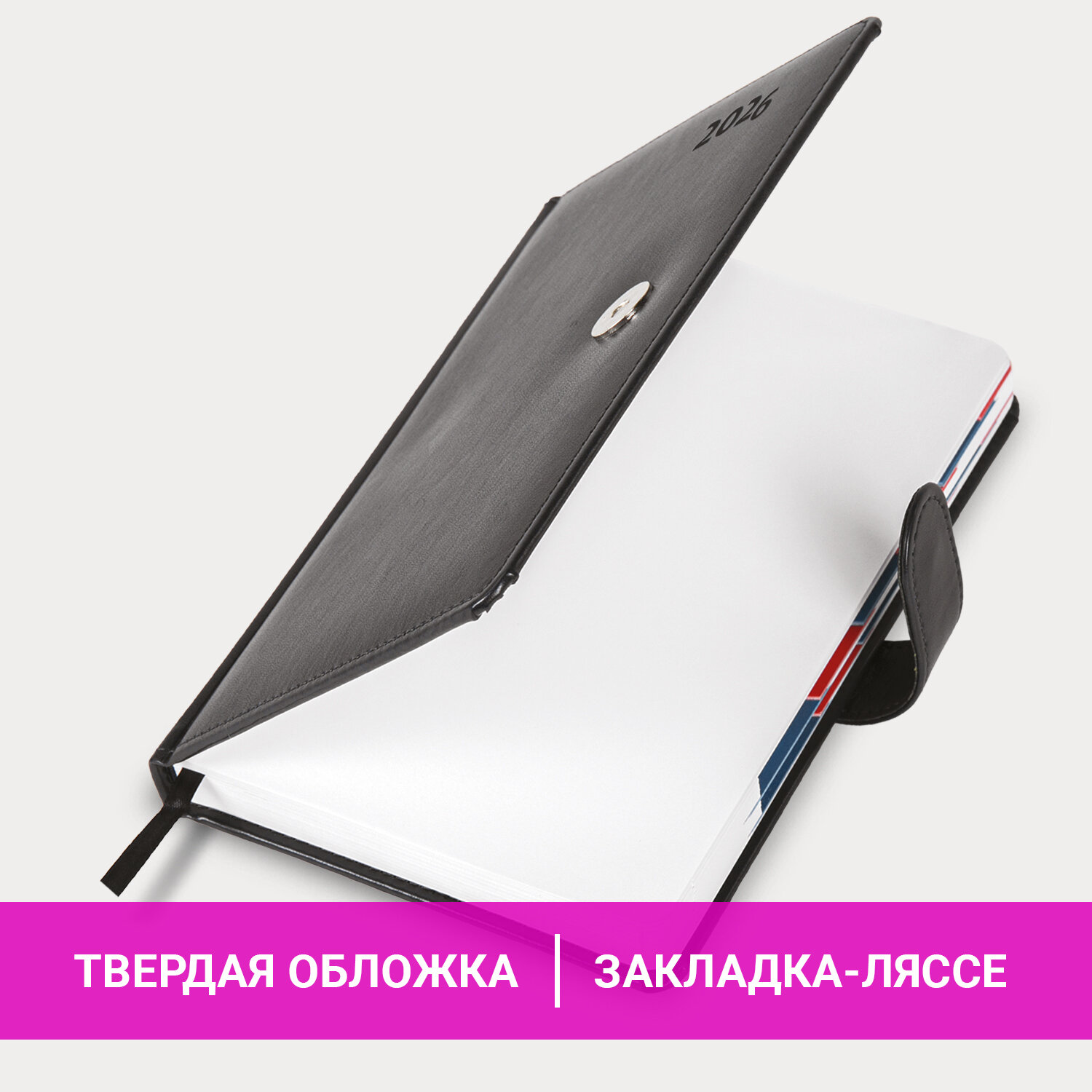 Ежедневник датированный 2026 А5 148х218 мм, GALANT "Ritter", под кожу, черный Код товара: 117491 743,73 ₽ Купить Производитель:GALANT Датированный ежедневник серии "Ritter" от GALANT – надежный спутник делового человека. Внутренний блок включает 168 листов белой бумаги плотностью 70 г/м2. Каждая страничка имеет перфорированный угол. Благодаря стандартному формату А5 (148х218 мм) ежедневник удобно использовать как в офисе, так и на выездных деловых встречах. Твердая обложка черного цвета прошита по периметру и стилизована под гладкую кожу. Обложка фиксируется магнитной застежкой, поэтому ежедневник не откроется в сумке или портфеле и страницы не помнутся. Материал обложки подходит для горячего тиснения. Дополнением является закладка-ляссе, с помощью которой при необходимости можно быстро открыть ежедневник на нужной странице, а также вырубка по месяцам. Ежедневник снабжен обширным справочным материалом. В конце есть 6 страниц для записей и заметок.Производство: КитайТип ежедневника: датированныйФормат: А5Обложка: под гладкую кожуВид обложки: твердаяКоличество листов: 168 шт.Особенности: вырубка блока, закладка-ляссе, перфорация уголков, поролоновая прослойка, прострочка по периметру, скругленные углы, справочная информацияСерия: RitterГод: 2026Тип застежки: магнитная застежкаОсновной цвет обложки: черныйДополнительный цвет обложки: нетЦвет среза: белыйЦвет внутреннего блока: белыйПлотность внутреннего блока: 70 г/м2Высота строки для записи: 4 ммТип крепления: сшивкаПечать блока: 2 краскиПодходит для блинтового тиснения: даПодходит для тиснения фольгой: даПодходит для заливки полимерной смолой: даПодходит для УФ-печати: даПодходит для тампопечати: даДлина: 218 ммШирина: 148 ммТолщина: 20 ммВес: 533 грРазмер упаковки: 2.9 × 21.7 × 15.9 смОбъём: 0.0013 м3Промежуточная упаковка: 15 штТранспортная упаковка: 15 штШтрих-код: 4606224489186 Файлы Сертификат-1.jpg Сертификат-2.jpg Сертификат-3.jpg Сертификат-4.jpg Сертификат-5.jpg Сертификат-6.jpg Сертификат-7.jpg Сертификат-8.jpg Сертификат-9.jpg Сертификат-10.jpg Сертификат-11.jpg Сертификат-12.jpg Сертификат-13.jpg Сертификат-14.jpg Сертификат-15.jpg Сертификат-16.jpg Сертификат-17.jpg Сертификат-18.jpg Сертификат-19.jpg Сертификат-20.jpg Сертификат-21.jpg Сертификат-22.jpg Сертификат-23.jpg Сертификат-24.jpg Сертификат-25.jpg Сертификат-26.jpg