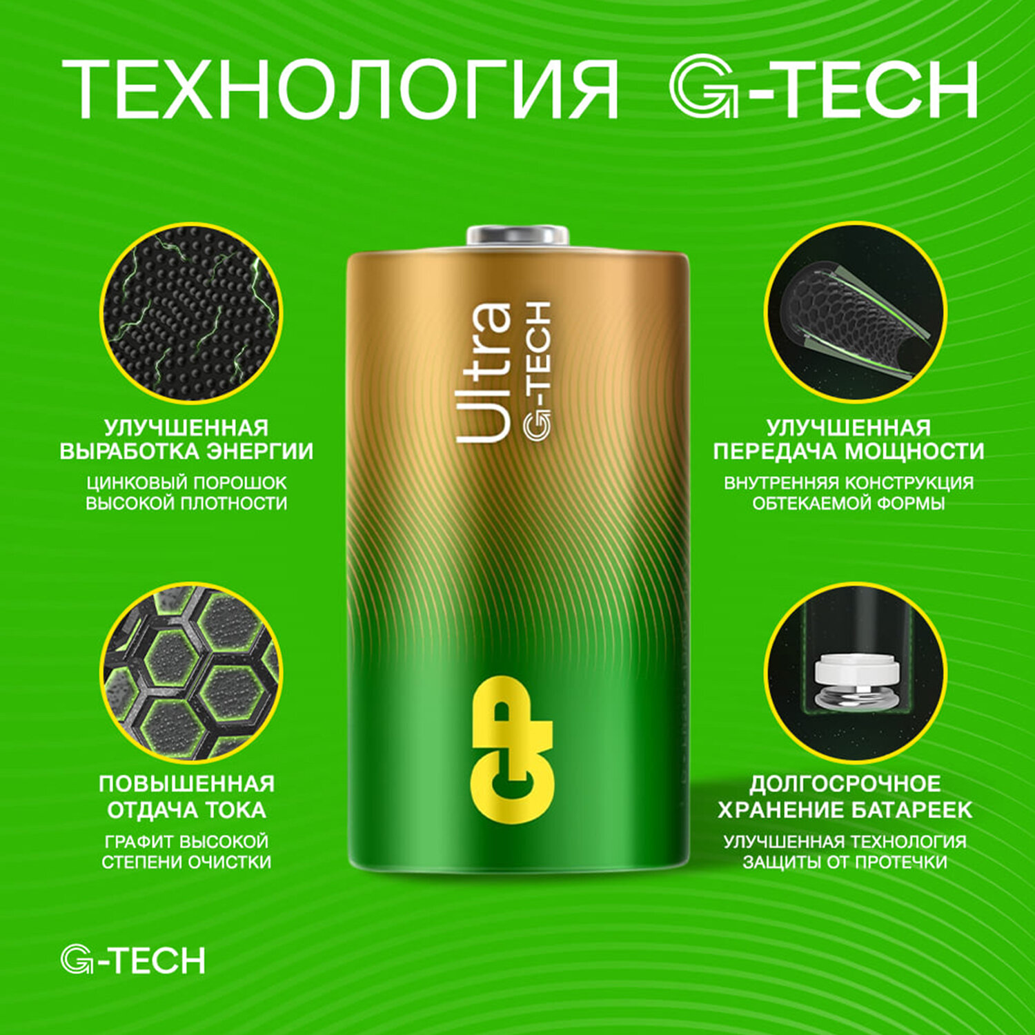 Батарейки КОМПЛЕКТ 2 шт., GP Ultra G-Tech, D (LR20, 13А), алкалиновые, блистер Код товара: 454092 792,72 ₽ Купить Производитель:GP Алкалиновые батарейки GP размера D увеличенной продолжительности работы идеально подходят для приборов с высоким потреблением энергии, таких как механизированные игрушки, фонарики, портативные игровые консоли, пульты дистанционного управления. Батарейки GP – это надежные элементы питания, которые обеспечивают стабильную работу устройств. В процессе изготовления использовались качественные материалы и тщательно соблюдались стандарты безопасности; они оптимально подходит для бытового применения. Неиспользованные батарейки GP могут сохранять заряд до 10 лет при хранении в обычных условиях. С этими батарейками можете полностью положиться на свое устройство. Поставляются комплектом из 2 штук в блистере. Вся информация о товарах на сайте носит справочный характер и не является публичной офертой в соответствии с пунктом 2 статьи 437 ГК РФ. Производитель оставляет за собой право изменять характеристики товара, его внешний вид и комплектность без предварительного уведомления продавца.Производство: КитайФорма батарейки: DСерия: UltraТипоразмер: D (R20, LR20, 373, 13A, 13D)Технология: алкалиноваяНапряжение: 1.5 ВКоличество в упаковке: 2 шт.Упаковка: блистерСрок годности: 120 месВес: 313 грРазмер упаковки: 3.6 × 11.7 × 8.2 смОбъём: 0.0003 м3Промежуточная упаковка: 10 штТранспортная упаковка: 80 штШтрих-код: 4891199226342 Файлы Сертификат-1.jpg Сертификат-2.jpg Сертификат-3.jpg Сертификат-4.jpg