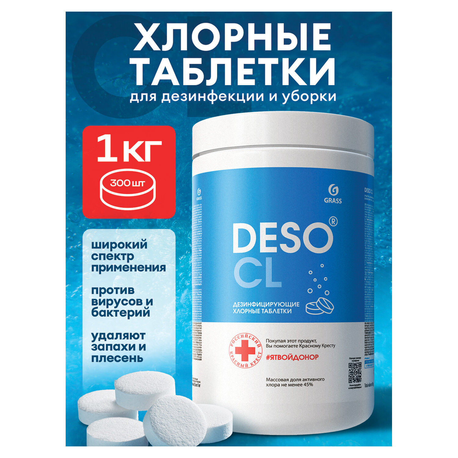 Средство дезинфицирующее с моющим эффектом GRASS DESO CL таблетки. Таблетки белого цвета с характерным запахом хлора массой 3,3 г для обеззараживания поверхностей в помещениях, жесткой мебели, санитарно-технического оборудования, систем мусороудаления, наружных поверхностей приборов и аппаратов, посуды, предметов для мытья посуды, ухода за больными, перевязочных материалов, средств личной гигиены, белья, уборочного инвентаря, крови, ликвора, выделений, смывных жидкостей, остатков пищи, уборочного инвентаря.