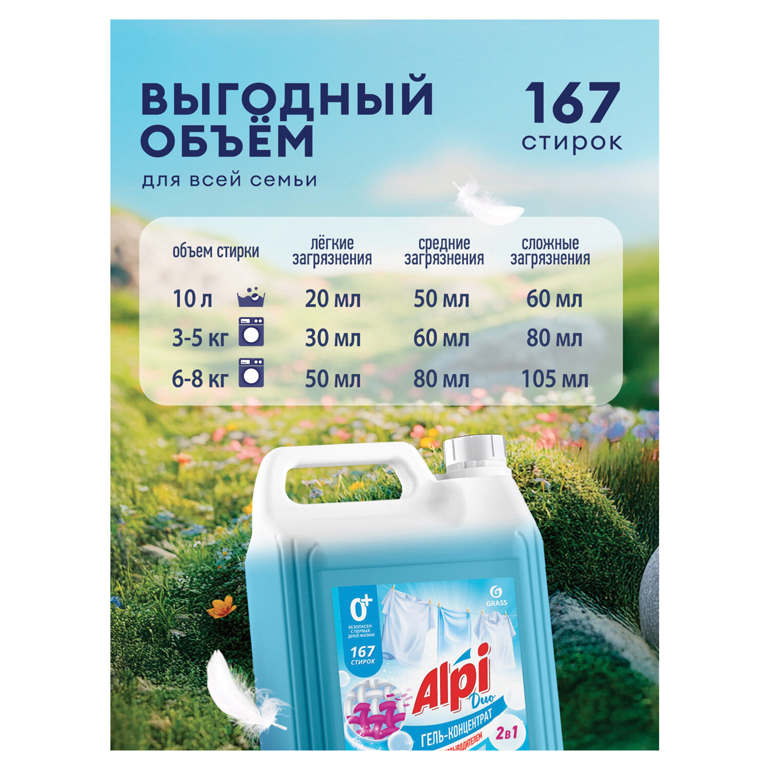 Гель для стирки белья концентрированный 2 в 1, c пятновыводителем, 5 кг, GRASS ALPI Код товара: 609894 1 288,82 ₽ Купить Производитель:GRASS Гель GRASS ALPI предназначен для стирки и замачивания изделий из хлопчатобумажных, льняных, синтетических тканей и тканей из смешанных волокон в стиральных машинах любого типа и ручной стирки в воде любой жесткости. Благодаря комбинации высокоэффективных поверхностно-активных веществ и энзимов, гель позволяет эффективно удалять загрязнения и пятна с волокон ткани даже в холодной воде и при коротких циклах стирки. Гель подходит для цветного и белого белья из натуральных и синтетических тканей, детской одежды и одежды людей с чувствительной кожей. Средство полностью выполаскивается из тканей. Стирку вещей осуществлять при температуре 20-60 °С. Для выбора способа стирки следуйте рекомендациям на ярлыках изделий. Перед использованием средство рекомендуется взболтать. Состав: 30% очищенная вода; 5-15% анионные ПАВ; 5% неионогенные ПАВ, мыло, энзимы, поликарбоксилаты, метилхлороизотиазолинон, метилизотиазолинон, ароматизирующая добавка. Способ применения: налейте средство в отсек для стиральных порошков. Для удаления трудных пятен нанесите гель непосредственно на пятно перед стиркой. Использовать строго по назначению!Производство: РоссияТип: универсальныйОбъем/Вес: 5000 мл/гВид средства: гель с пятновыводителемНазначение: для всех типов бельяОтдушка: свежестьТовар относится к сегменту ЭКОНОМ: даКоличество бункеров: 0 шт.Серия: GEL CONCENTRATEВид упаковки: канистраСрок годности: 18 месРазмер упаковки: 28.5 × 18.1 × 12.9 смОбъём: 0.0071 м3Промежуточная упаковка: 4 штТранспортная упаковка: 4 штШтрих-код: 4670113607197 Сертификат-1.jpg