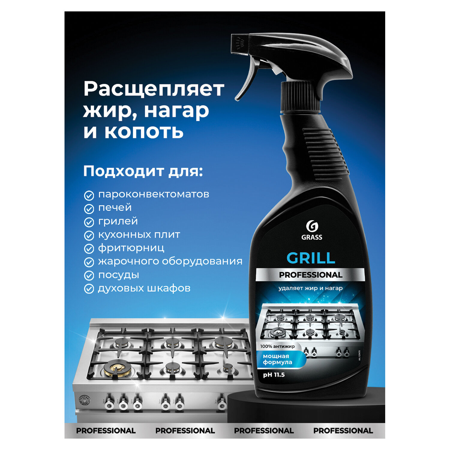 Средство чистящее плит, духовок, грилей от жира/нагара 600 мл, GRASS GRILL PROFESSIONAL Код товара: 609909 311,28 ₽ Купить Производитель:GRASS Универсальное средство GRASS GRILL PROFESSIONAL для пароконвектоматов, печей, духовок, грилей. Удаляет жир, нагар, копоть и пригоревшую пищу с эмалированных, хромированных поверхностей, изделий из стекла, нержавеющей стали, фаянса, фарфора. Состав: 30%: вода очищенная; 5-15% гидроксид натрия, щелочные добавки; 5%: неионогенные ПАВ, соль ЭДТА, ароматизирующая добавка. Способ применения: перед применением проверить стойкость поверхности к средству на незаметном участке. • Для пароконвектоматов: равномерно нанести средство на внутреннюю поверхность, включить режим пропаривания на 5-15 минут, промыть поверхность водой. • Для грилей, плит, духовых шкафов, вытяжных зонтов и другого жарочного оборудования: нанести средство на охлажденную, либо нагретую до 50 °С поверхность выдержать 3-5 минут, растереть щеткой, промыть водой. При сильных загрязнениях повторить обработку и увеличить время выдержки.Производство: РоссияНазначение: для плит, духовок, грилейОбъём/вес: 600 мл/гФорма выпуска: жидкостьОтдушка: без отдушкиПодходит для поверхностей: кафель, металл, стеклокерамикаДозатор: распылительСерия: ProfessionalЭффект от использования: обезжириваниеБез хлора: даСрок годности: 36 месВес: 673 грРазмер упаковки: 28.5 × 9 × 4.5 смОбъём: 0.0014 м3Промежуточная упаковка: 8 штТранспортная упаковка: 8 штШтрих-код: 4630037514735 Файлы Сертификат-1.jpg Сертификат-2.jpg Сертификат-3.jpg Сертификат-4.jpg Сертификат-5.jpg Сертификат-6.jpg Сертификат-7.jpg Сертификат-8.jpg Сертификат-9.jpg Сертификат-10.jpg Сертификат-11.jpg Сертификат-12.jpg Сертификат-13.jpg Сертификат-14.jpg Сертификат-15.jpg Сертификат-16.jpg Сертификат-17.jpg Сертификат-18.jpg Сертификат-19.jpg Сертификат-20.jpg Сертификат-21.jpg Сертификат-22.jpg Сертификат-23.jpg Сертификат-24.jpg Сертификат-25.jpg