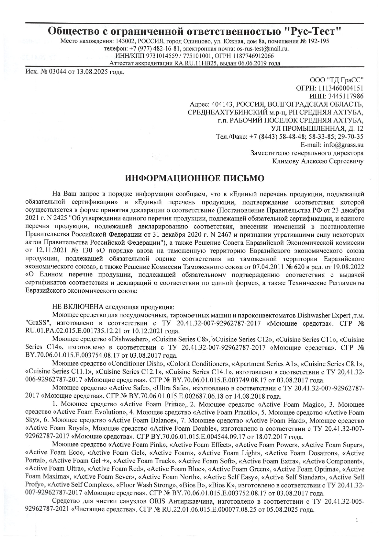 Средство чистящее кислотное для уборки после ремонта 1 л, GRASS CEMENT CLEANER, концентрат Код товара: 609913 396,33 ₽ Купить Производитель:GRASS Кислотное моющее средство GRASS CEMENT CLEANER для очистки полов и других поверхностей от остатков цемента, бетона, ржавых пятен, известкового камня и других материалов, оставшихся после строительства, ремонта. Кислотное моющее средство для очистки полов и других поверхностей от остатков цемента, бетона, ржавых пятен, известкового камня и других материалов, оставшихся после строительства, ремонта. Концентрат разводится с водой из расчета 200-300 г/л). Состав: 30% вода, 5-15%: неорганические кислоты (в том числе соляная кислота), менее 5% неионогенные ПАВ, ароматизирующая добавка, краситель. Способ применения: для уборки после строительных и ремонтных работ концентрат разбавляется в пропорции 1:100 или 10 мл/л; для удаления въевшихся загрязнений и остатков цемента концентрат разбавляется в пропорции 1:5 или 200 мл/л. Нанести на очищаемую поверхность с помощью распылителя или губки. Оставить на 2-3 минуты, потереть щеткой. Для особо сильных загрязнений средство применять в неразбавленном виде.Производство: РоссияФорма выпуска: концентратОбъем/вес: 1000 мл/гЭффект от использования: удаление водонерастворимых загрязнений, удаление производственных загрязненийОтдушка: нетСодержит: кислотуДозатор: нетpH: 2Серия: ProfessionalУпаковка: флаконСрок годности: 24 месВес: 1,02 кгРазмер упаковки: 23 × 7.5 × 7.5 смОбъём: 0.0015 м3Промежуточная упаковка: 12 штТранспортная упаковка: 12 штШтрих-код: 4607072192594 Файлы Приложение-1.pdf Сертификат-1.jpg Сертификат-2.jpg Сертификат-3.jpg