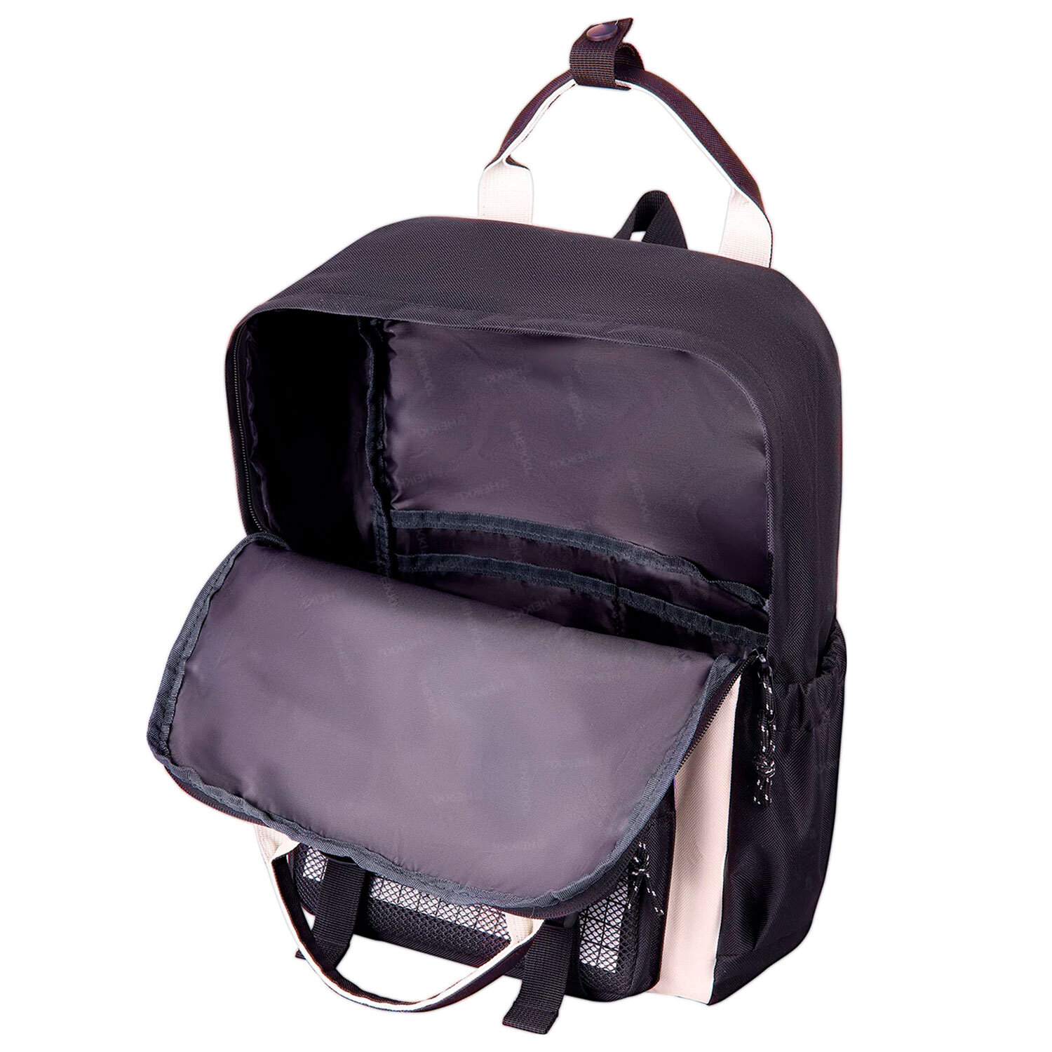 Вместительное отделение рюкзака и множество карманов позволяют упорядоченно разложить большое количество вещей различных размеров в зависимости от целей использования. Внутри основного отделения есть большой карман-разделитель, в который можно положить учебные пособия и другие предметы. В боковых карманах можно разместить бутылочку, термос, зонт и другие необходимые предметы.
