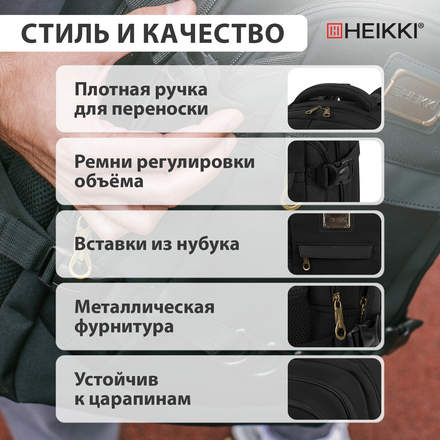 Три вместительных отделения позволят упорядоченно разложить большое количество вещей различных размеров, в зависимости от целей использования рюкзака. Рюкзак имеет один передний карман на молнии, а также боковые карманы из эластичной сетки, в которых удобно разместить бутылочку, термос или зонт. Основное отделение имеет большой уплотненный карман, благодаря чему рюкзак безопасен для переноски ноутбука или планшета, а среднее отделение оснащено карманом-органайзером для удобного размещения как письменных принадлежностей, так и документов, аксессуаров и других личных вещей.