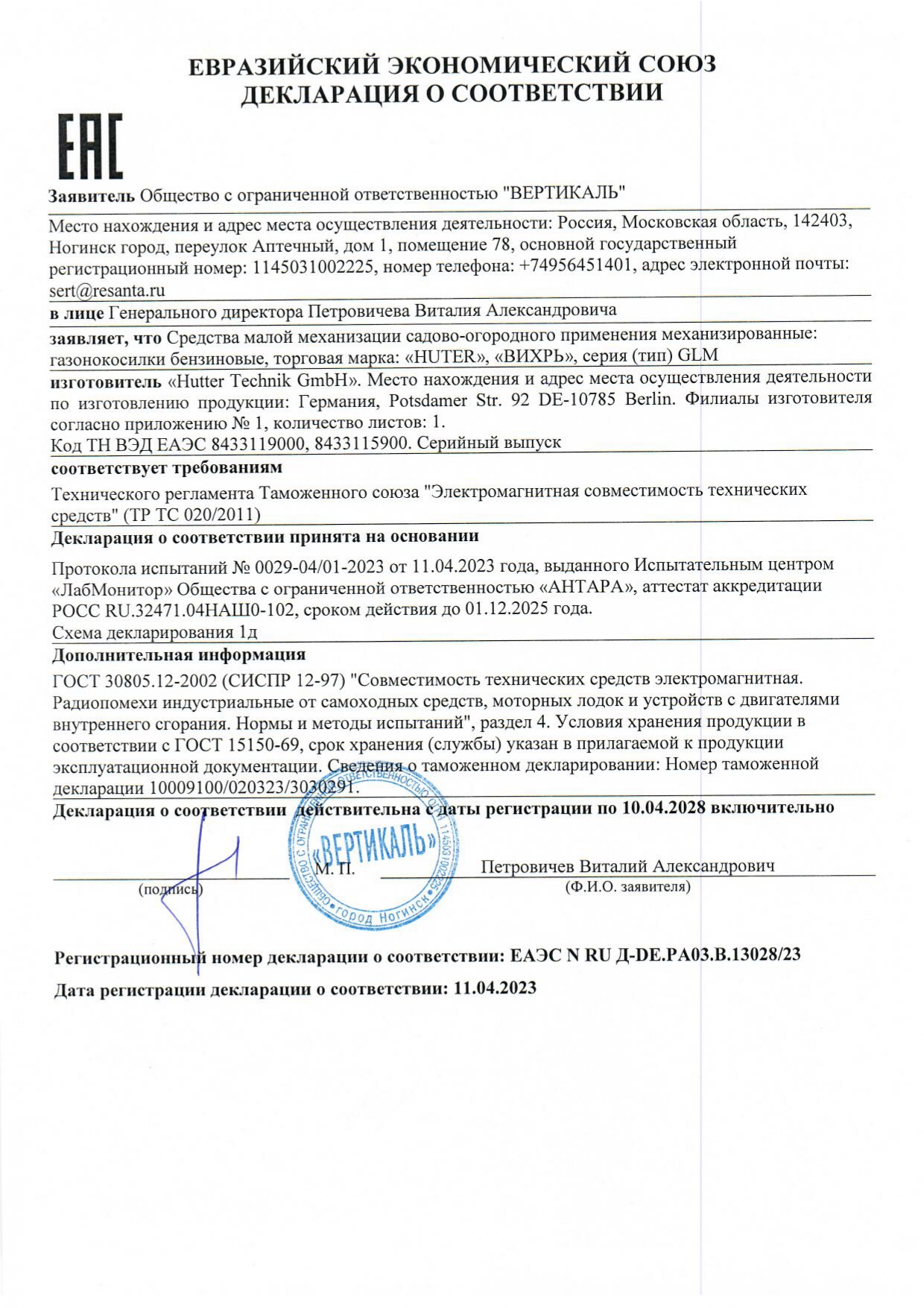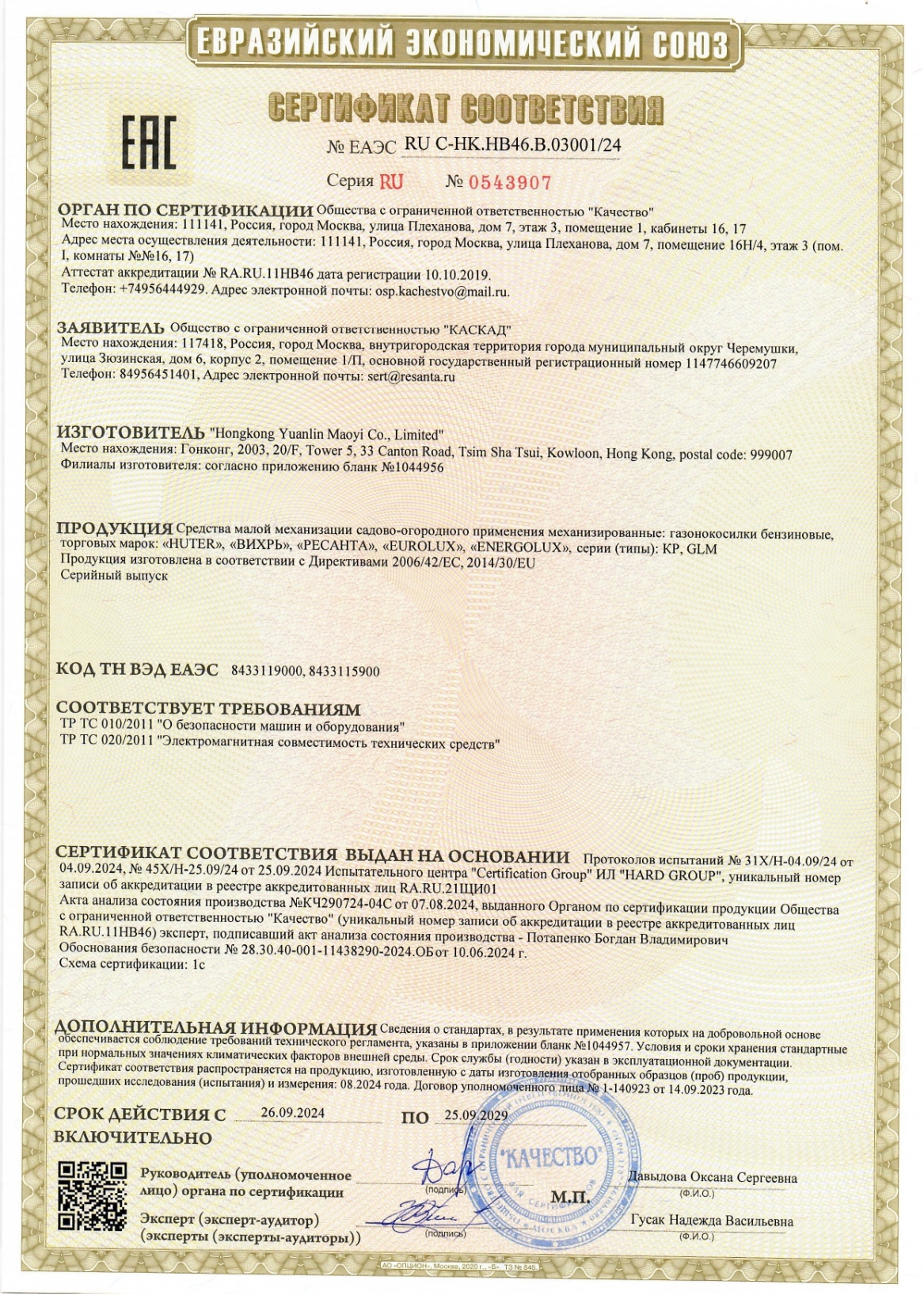 Газонокосилка бензиновая самоходная HUTER GLM-5.0ST, 3200 об./мин, объем двигателя 1000 см3 Код товара: 671212 31 936 ₽ Купить Производитель:HUTER Бензиновая газонокосилка HUTER GLM-5.0ST 70/3/5 используется в случаях необходимости стрижки газонов на садовых, дачных участках. Эффективная. Мощный двигатель обеспечивает отличную производительность на высокой и жесткой траве. Бензиновая газонокосилка HUTER GLM-5.0 ST поможет быстро и легко скосить высокую траву на дачном участке, придать газону ухоженный аккуратный вид. Мощность бензогазонокосилки – 5 л.с., что существенно превышает потенциал любого электрического аналога. Ширина среза – 460 мм, а высоту расположения ножей можно выбирать из 7 возможных вариантов в диапазоне от 25 до 75 мм. Самоходным агрегатом на колесах легко управлять, нужно всего лишь задавать направление движения, косилка движется самостоятельно. Модель оснащена тканевым травосборником объемом на 60 литров. Если необходимости в сборе травы нет, можно воспользоваться функциями мульчирования и бокового выброса. Это даст возможность подстригать газон и одновременно удобрять его. Корпус бензиновой газонокосилки изготовлен из металла и окрашен. Это обеспечивает устройству защиту от механических повреждений при случайном попадании камней и от коррозии. Бензогазонокосилка оснащена удобной эргономичной ручкой и надежным двигателем. В качестве топлива используется 92 бензин, объем бака составляет 1 литр. Ножи выполнены из прочной качественной стали. Вся информация на сайте о товарах носит справочный характер и не является публичной офертой в соответствии с пунктом 2 статьи 437 ГК РФ. Производитель оставляет за собой право изменять характеристики товара, его внешний вид и комплектность без предварительного уведомления продавца.Производство: КитайТип газонокосилки : бензиноваяШирина скашивания: 46Объем двигателя: 160Самоходная : даТравосборник: даБольшие задние колеса: даМощность: 3.68 кВтМощность: 5 л.с.Тип двигателя: бензиновыйЧастота вращения шпинделя: 3200Тактность двигателя: 4Регулировка высоты: даТип травосборника: текстильОбъем травосборника: 60 лВысота скашивания max : 75 ммВысота скашивания min : 25 ммСерия: GLMМатериал корпуса : стальТип ручки: складнаяВыброс травы: даПривод на нож: даЕмкость топливного бака: 1.5 лГабариты без упаковки : 810х505х385Вес нетто : 27.14 кгВес: 36 кгРазмер упаковки: 49 × 54 × 82 смОбъём: 0.217 м3Промежуточная упаковка: 1 штТранспортная упаковка: 1 штШтрих-код: 4606059022176 Файлы Сертификат-1.jpg Сертификат-2.jpg Сертификат-3.jpg Сертификат-4.jpg Сертификат-5.jpg Сертификат-6.jpg Сертификат-7.jpg