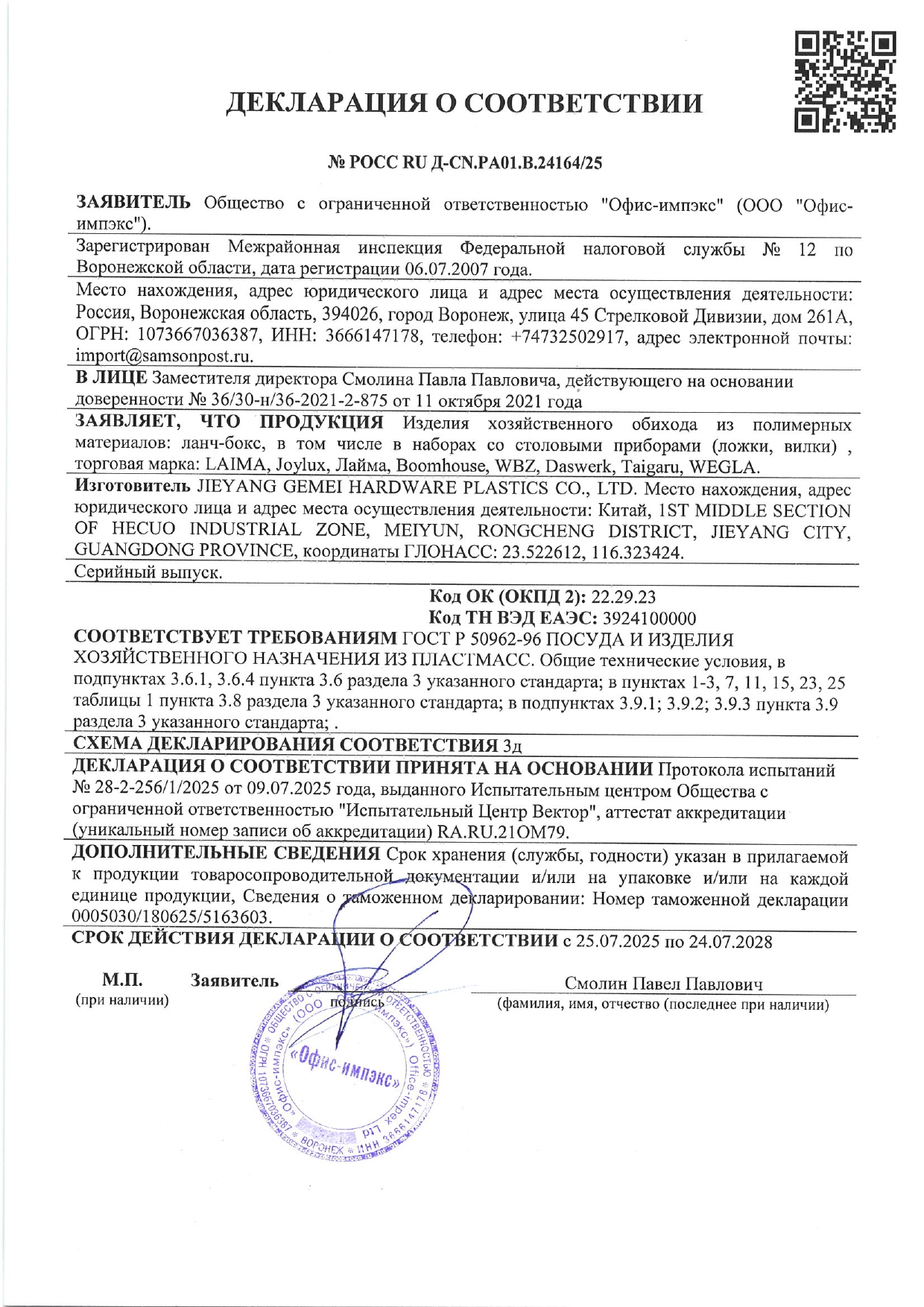 Ланч-бокс контейнер, 1 секция, 3 отделения, 1,4 л, ложка, вилка, 8х21х14 см, мятный, JOYLUX (ДЖОЙЛЮКС) ECO Код товара: 609344 342,88 ₽ Купить Производитель:Joylux Многофункциональный герметичный ланч-бокс JOYLUX объемом 1400 мл имеет три отсека и изготовлен из пластика высокого качества – это универсальное и безопасное решение для полноценного сбалансированного приема пищи в офисе, школе, поездках и путешествиях! Ланч-бокс JOYLUX выполнен из высококачественного полипропилена с добавлением натуральной пшеничной соломы – материал соответствует всем требованиям безопасности и не содержит бисфенола А. Контейнер устойчив к высоким температурам и подходит для использования в микроволновой печи и посудомоечной машине, что делает уход за изделием максимально простым. Герметичность обеспечивается за счёт силиконового уплотнителя на крышке – это позволяет безопасно переносить даже жидкие блюда без риска протекания. В комплект входят пластиковые ложка и вилка, которые удобно хранятся в верхней секции ланч-бокса. Объём ланч-бокса – 1400 мл, что оптимально для полноценного обеда. Он представляет собой одноуровневую конструкцию с тремя отсеками, идеальными для основного блюда, например, гарнира и мяса, а также для салатов, сэндвичей и снеков. Благодаря продуманной конструкции контейнера блюда в нём сохраняют вкусовые качества и не смешиваются между собой. Ланч-бокс JOYLUX отличается современным универсальным дизайном, который понравится и детям, и взрослым. Компактные размеры и удобная форма позволяют легко разместить ланч-бокс в сумке или рюкзаке. Рекомендации по использованию: - Используйте ланч-бокс для хранения и транспортировки горячих и холодных блюд (диапазон температур при использовании от -20 до +110 °C). - Перед разогревом в микроволновой печи убедитесь, что крышка открыта. - Подходит для посудомоечной машины и микроволновой печи.Производство: КитайОбъем: 1.4 лНазначение: СВЧ, хранениеКоличество секций: 1Особенности: герметичныйЦвет контейнера: мятныйЦвет крышки: мятныйМатериал: пластикВысота: 8 смШирина: 21 смГлубина: 14 смВес: 342 грРазмер упаковки: 8.4 × 21.8 × 14.5 смОбъём: 0.003 м3Промежуточная упаковка: 60 штТранспортная упаковка: 60 штШтрих-код: 4606224440033 Сертификат-1.jpg Сертификат-2.jpg Сертификат-3.jpg