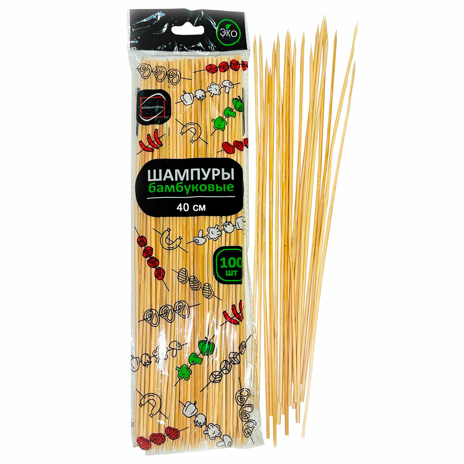 Шпажки-шампуры для шашлыка бамбуковые 40 см, 100 штук, КП Код товара: 700663 171,5 ₽ Купить Производитель:КонтинентПак Шпажки-шампуры из бамбука используются в быту и в заведениях общественного питания. Они предназначены для приготовления мяса, рыбы и овощей. Бамбуковые шпажки (шампуры) идеально подходят для приготовления различных блюд: курицы, люля-кебаба, рыбы, шашлыка из мяса, а также грибов и овощей. Их можно использовать на мангале, барбекю, гриле или в духовом шкафу. Шампуры имеют один заострённый конец и круглую форму. Их поверхность гладкая, а структура – гибкая и прочная. В отличие от деревянных, бамбуковые шпажки менее подвержены деформации и их сложнее сломать. Благодаря этим преимуществам бамбуковые шампуры становятся универсальным и практичным решением для приготовления вкусных и аппетитных блюд.Производство: КитайТип товара: шампуры для шашлыкаДлина: 400 ммДиаметр: 2.5 ммМатериал: бамбукКоличество в упаковке: 100 шт.Вес: 325 грРазмер упаковки: 2.3 × 40.2 × 7.7 смОбъём: 0.0007 м3Промежуточная упаковка: 50 штТранспортная упаковка: 50 штШтрих-код: 4610231972449