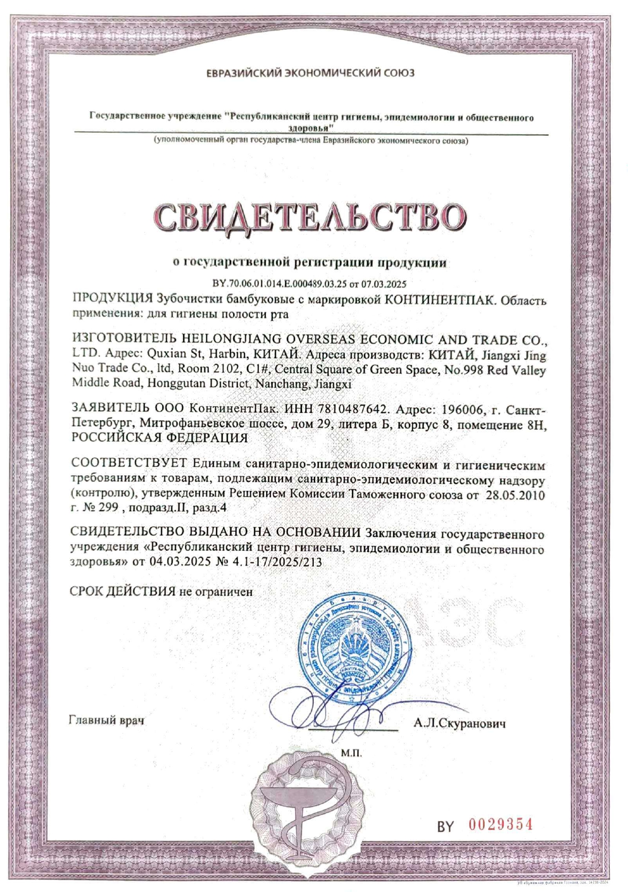 Зубочистки бамбуковые, 1000 штук в индивидуальной ПП упаковке, КП Код товара: 700664 178,25 ₽ Купить Производитель:КонтинентПак Прочные зубочистки КП в индивидуальной полипропиленовой упаковке являются отличным выбором для заведений общественного питания. Выполнены из древесины бамбука. Зубочистки имеют двухстороннюю заточку, не слоятся и не ломаются, что делает их безопасными для зубной эмали. Подходят для ухода за полостью рта в течение всего дня. Зубочистки не содержат красителей и вредных пропиток. Прекрасно подходят дня приготовления канапе из фруктов, овощей, сыра, морепродуктов и мясных изделий. В картонной упаковке содержится 1000 зубочисток длиной 65 мм.Производство: КитайМатериал: бамбукКоличество в упаковке: 1000 шт.Длина: 65 ммИндивидуальная упаковка: даМатериал индивидуальной упаковки: полипропиленУпаковка: картонная коробкаВес: 152 грРазмер упаковки: 5.4 × 13 × 8.8 смОбъём: 0.0007 м3Промежуточная упаковка: 50 штТранспортная упаковка: 50 штШтрих-код: 4660007883110 Сертификат-1.jpg Сертификат-2.jpg