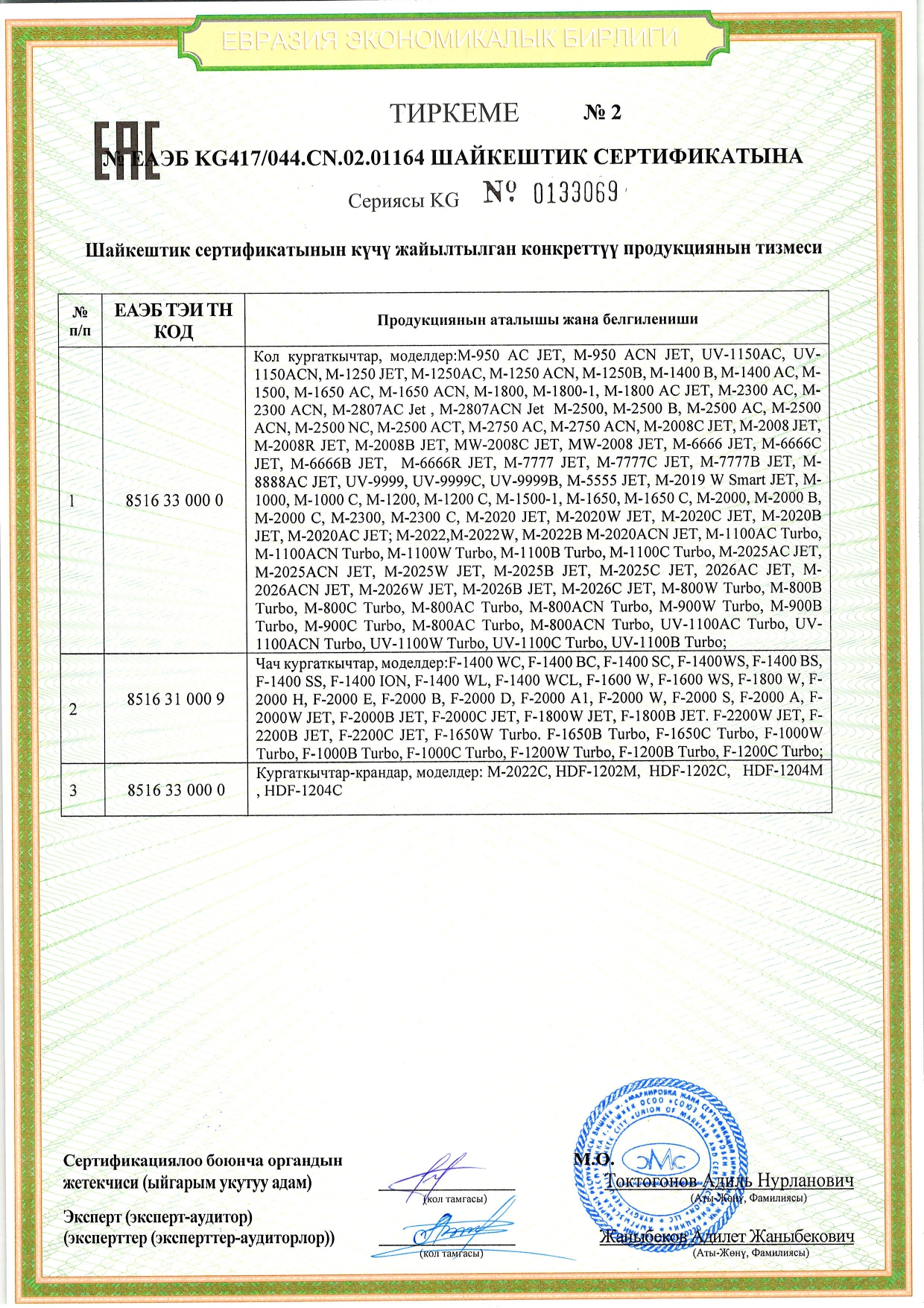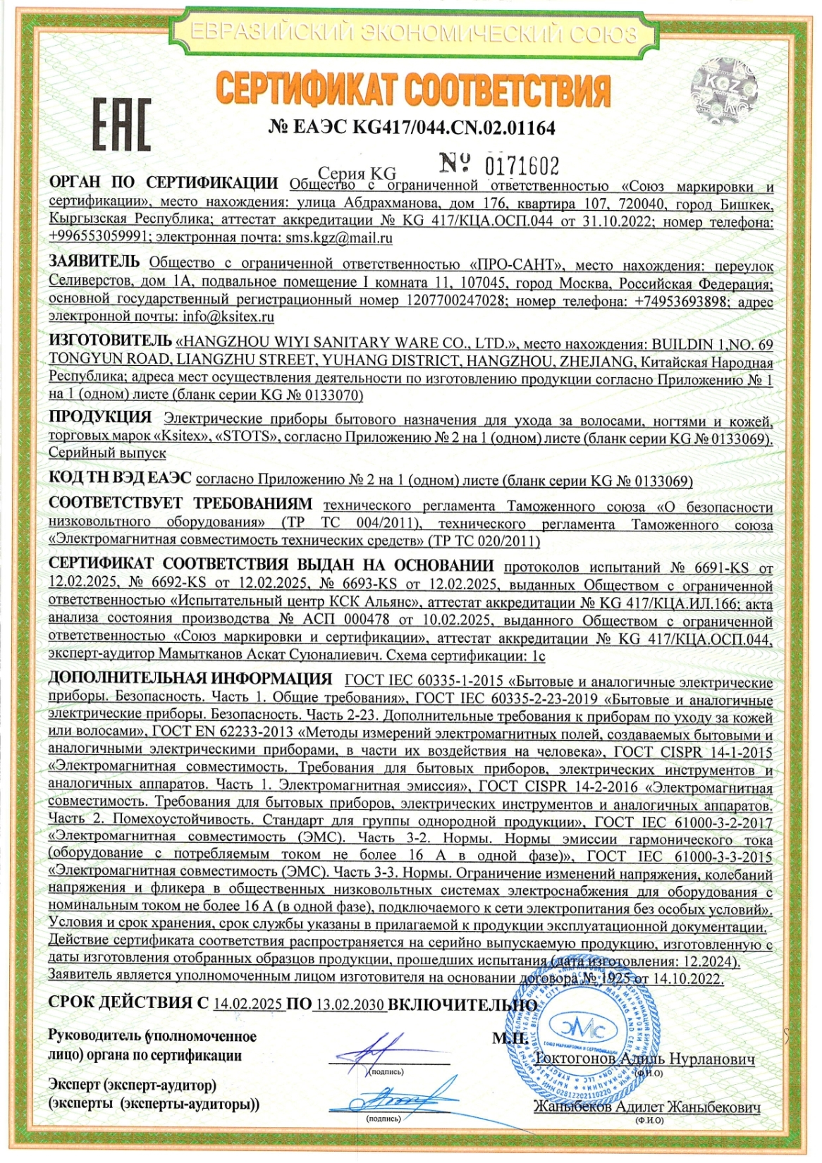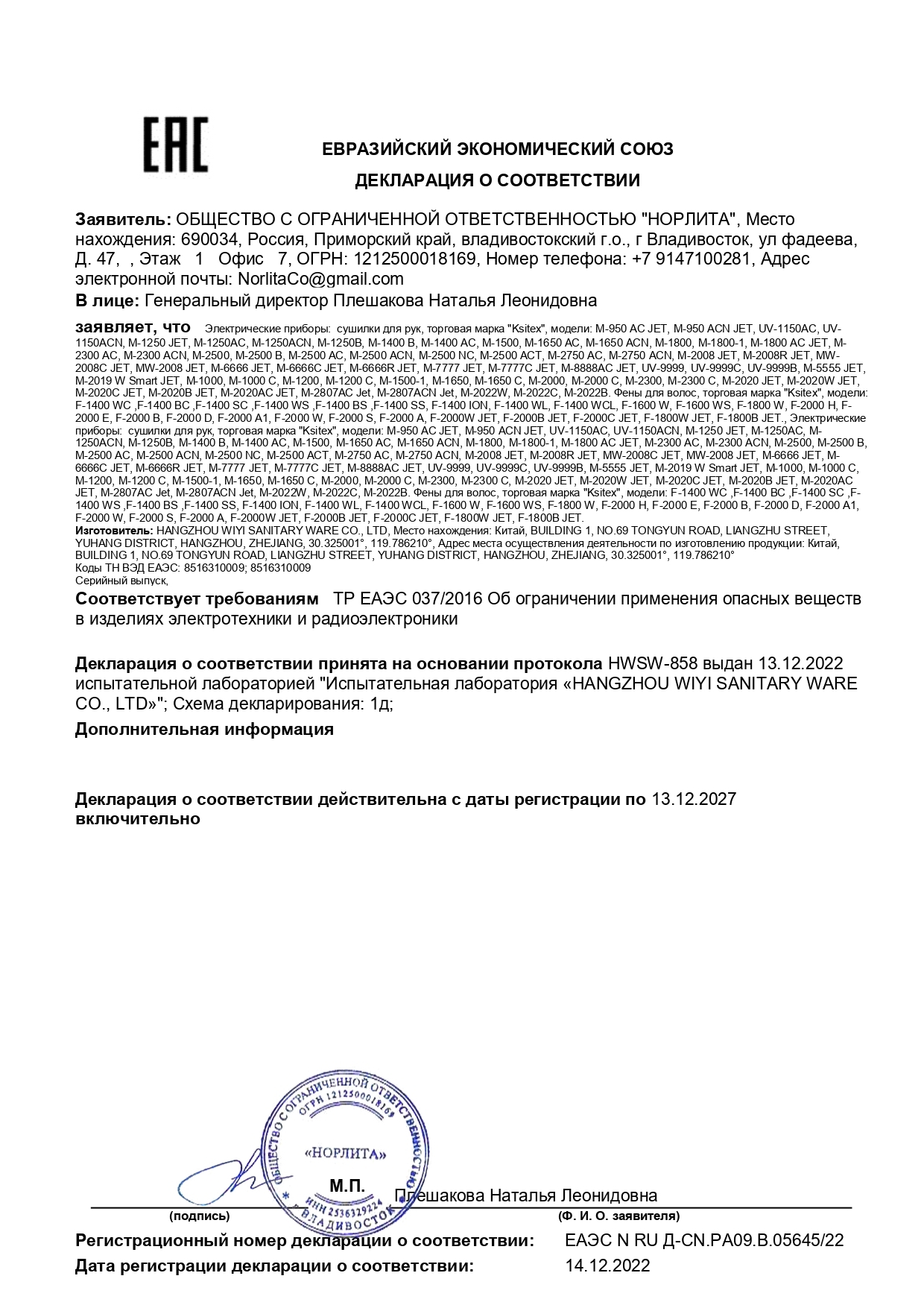 Фен для волос настенный KSITEX F-2000B JET, 2000 Вт, пластик, 2 скорости, 2 температурных режима, черный Код товара: 458494 4 484,6 ₽ Купить Производитель:KSITEX Создайте комфортную и гигиеничную зону для сушки волос с настенным феном KSITEX F-2000B JET – современным, мощным и удобным решением для отелей, бассейнов, спортзалов и других общественных мест! Модель оснащена двигателем с длительным сроком службы, встроенным ионизатором, который минимизирует статическое электричество и делает волосы более мягкими и блестящими, а также JET-насадкой, увеличивающей скорость воздушного потока до 18 м/с для более быстрого и эффективного высыхания. Фен работает в трёх режимах: два режима горячего воздуха и один холодного, что позволяет подобрать оптимальный температурный режим для любого типа волос. Устройство имеет мощность 2000 Вт, обеспечивает высокую производительность и при этом остаётся экономичным и безопасным благодаря защите от перегрева и классу влагозащиты IPX1. Корпус выполнен из прочного ударопрочного пластика с антибактериальным покрытием – материал устойчив к загрязнениям и повреждениям. Особенностью модели является сенсорное включение и выключение: фен автоматически активируется при снятии с настенной базы и отключается при обратном размещении. В рукоятке фена установлено информативное электронное табло, на котором отображаются режимы работы фена. Настенное крепление, компактные размеры и эргономичный дизайн обеспечивают удобство установки и использования в любом интерьере. Производитель оставляет за собой право без предварительного уведомления вносить изменения в технические характеристики, комплектацию и конструкцию, не ухудшающие эксплуатационные характеристики изделия.Производство: КитайТип фена: стационарныйМощность: 2000 ВтРегулировка возд. потока (кол-во скоростей): 2Регулировка температуры (кол-во режимов): 2Серия: F-2000 JETКоличество насадок: 1 шт.Концентратор: даФункция ''холодный воздух'': даИонизация: даОтключение при перегреве: даДлина сетевого шнура: 0 мМатериал корпуса: пластикЦвет корпуса: черныйВес: 980 гДизайн: F-2000BРазмер упаковки: 8.5 × 17.5 × 26.5 смОбъём: 0.0048 м3Промежуточная упаковка: 20 штТранспортная упаковка: 20 штШтрих-код: 2000100600016 Файлы Приложение-1.pdf Сертификат-1.jpg Сертификат-2.jpg Сертификат-3.jpg Сертификат-4.jpg Сертификат-5.jpg Сертификат-6.jpg Сертификат-7.jpg Сертификат-8.jpg Сертификат-9.jpg