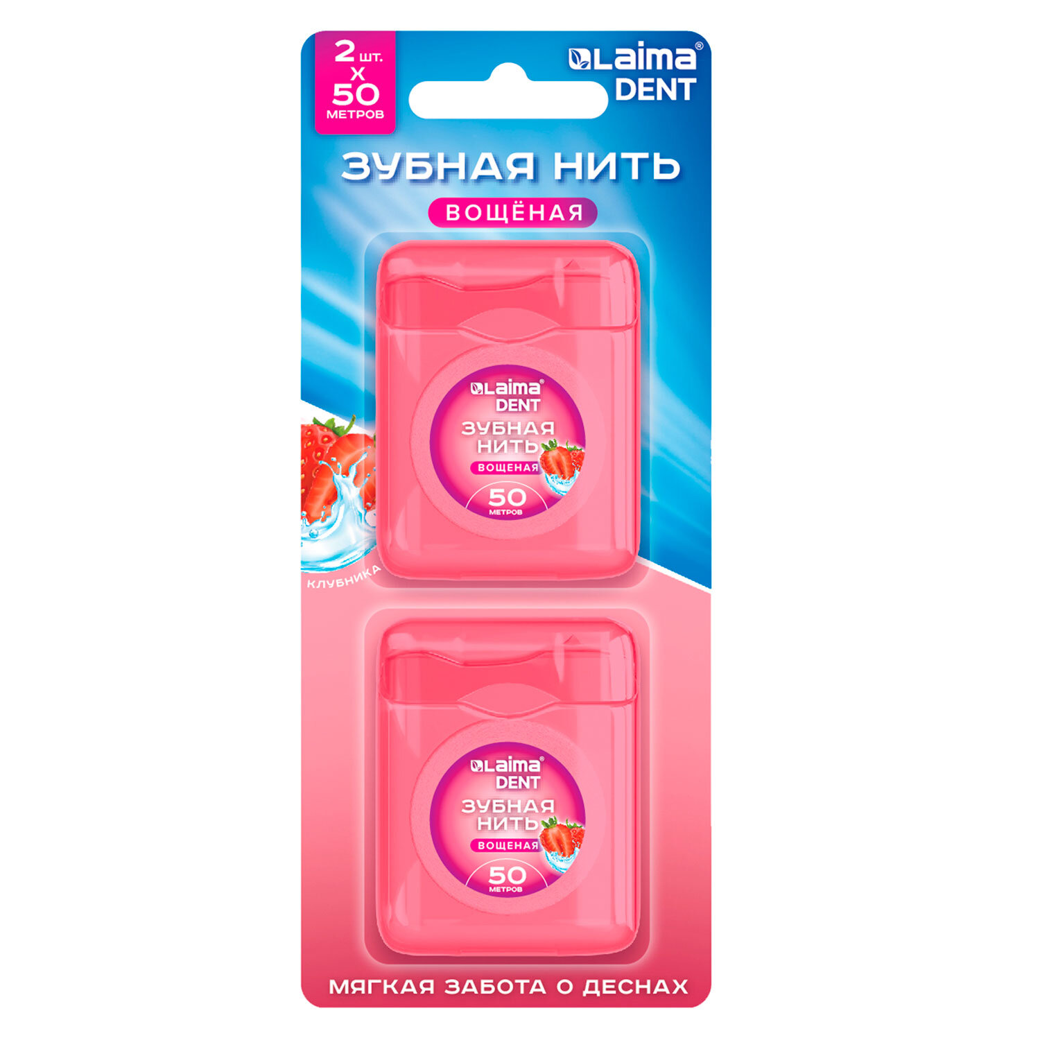 Зубная нить вощеная 100 м (2 шт. х 50 м), мягкая забота о деснах, ВКУС КЛУБНИКИ, LAIMA DENT Код товара: 609416 137,13 ₽ Купить Производитель:LAIMA DENT Зубная нить предназначена для ежедневного ухода за полостью рта, предотвращает кариес и неприятный запах во рту. В комплекте 2 зубные нити вощеные с ароматом клубники по 50 метров. Упакованы в стандартные корпуса с резаками и блистер. Зубная нить изготовлена из высококачественного нейлона, корпус – из полипропилена. Вощеное покрытие облегчает скольжение нити между зубами, а аромат клубники придает дополнительный освежающий эффект после использования. Зубная нить – незаменимое средство для бережной очистки межзубных пространств от остатков пищи и зубного налета.Производство: КитайТип товара: зубная нитьКоличество в комплекте: 2 шт.Длина нити: 50 мВощеная: даАромат: клубникаСерия: DentМатериал: нейлонУпаковка: блистер с европодвесомВес: 44 грРазмер упаковки: 1.8 × 15.7 × 6.7 смОбъём: 0.0003 м3Промежуточная упаковка: 12 штТранспортная упаковка: 144 штШтрих-код: 4606224440903 Сертификат-1.jpg