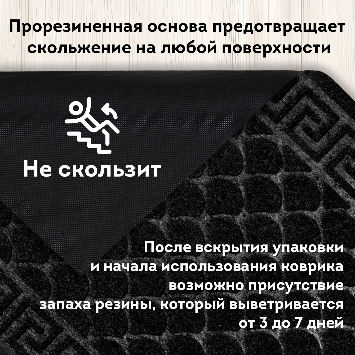 Коврик придверный 60х90 см, ЧЕРНЫЙ, грязезащитный, 430 г/м2, фактурный рисунок ЧЕШУЙКИ, ЛЮБАША Код товара: 701060 467,88 ₽ Купить Производитель:ЛЮБАША Коврик влаго-грязезащитный ЛЮБАША – практичное и эффективное решение для защиты помещения от грязи и влаги. Предназначен для использования внутри и вне помещений. Коврик влаго-грязезащитный ЛЮБАША – практичное и эффективное решение для защиты помещения от грязи и влаги. Ворс коврика изготовлен из полиэстера, который отлично впитывает влагу и задерживает мелкие частицы грязи с подошв обуви. Коврик имеет прямоугольную форму. ПВХ-основа предотвращает скольжение и обеспечивает устойчивость на полу. Основные преимущества влаговпитывающего коврика: Надежная грязезащита и влаговпитывание, что снижает количество уборок в помещении; Износостойкость и устойчивость к деформациям и перепадам температуры; Простота ухода – коврик можно пылесосить; Безопасность за счет нескользящей основы, особенно актуально в осенне-зимний период. Основные характеристики: Размер – 60х90 см. Толщина – 7 мм. Ворс изготовлен из полиэстера. Коврик выполнен в черном цвете. Фактурный рисунок – чешуйки. Во избежание скольжения рекомендуется укладывать коврик на чистую увлажненную поверхность (пыль и песок повышают вероятность скольжения ковра). Рекомендации, которые на 100% исключат скольжение ковра на любых напольных покрытиях: 1. Применить противоскользящую ленту. Её наклеивают по периметру коврика с обратной (изнаночной) стороны. 2. Использовать силиконовые наклейки. Они крепятся с изнаночной стороны в углы коврика (обычно нужно 4 наклейки на один коврик). 3. Применить резиновый клей. Им промазывают всю поверхность коврика, при этом и коврик, и кафель в момент приклеивания должны быть сухими и чистыми. Или использовать любой двусторонний скотч. 4. Использовать фиксаторы для ковров. Это специально разработанные подушечки, которые можно поместить под углы коврика. Обычно они состоят из двух частей – липкой, которая приклеивается к подложке коврика, и рельефной, которая прижимается к полу. 5. Использовать липучки для ковров. Одну сторону липучки прикрепляют к изнанке ковра, а другую – к полу. При сжатии застёжки-липучки создают прочное соединение, препятствующее скольжению.Производство: РоссияНазначение: влаго-грязезащитныйДлина: 90 смШирина: 60 смТолщина: 7 ммМатериал: ПВХ, полиэстерМатериал ворса: 100% полиэстерМетод производства: вулканизацияДизайн: чешуйкиАнтискользящее основание: даВорсовое покрытие с ребристой текстурой: даЦвет: черныйВес: 1,03 кгРазмер упаковки: 0.5 × 90.2 × 60.3 смОбъём: 0.003 м3Промежуточная упаковка: 10 штТранспортная упаковка: 10 штШтрих-код: 4606224505985 Сертификат-1.jpg Сертификат-2.jpg Сертификат-3.jpg
