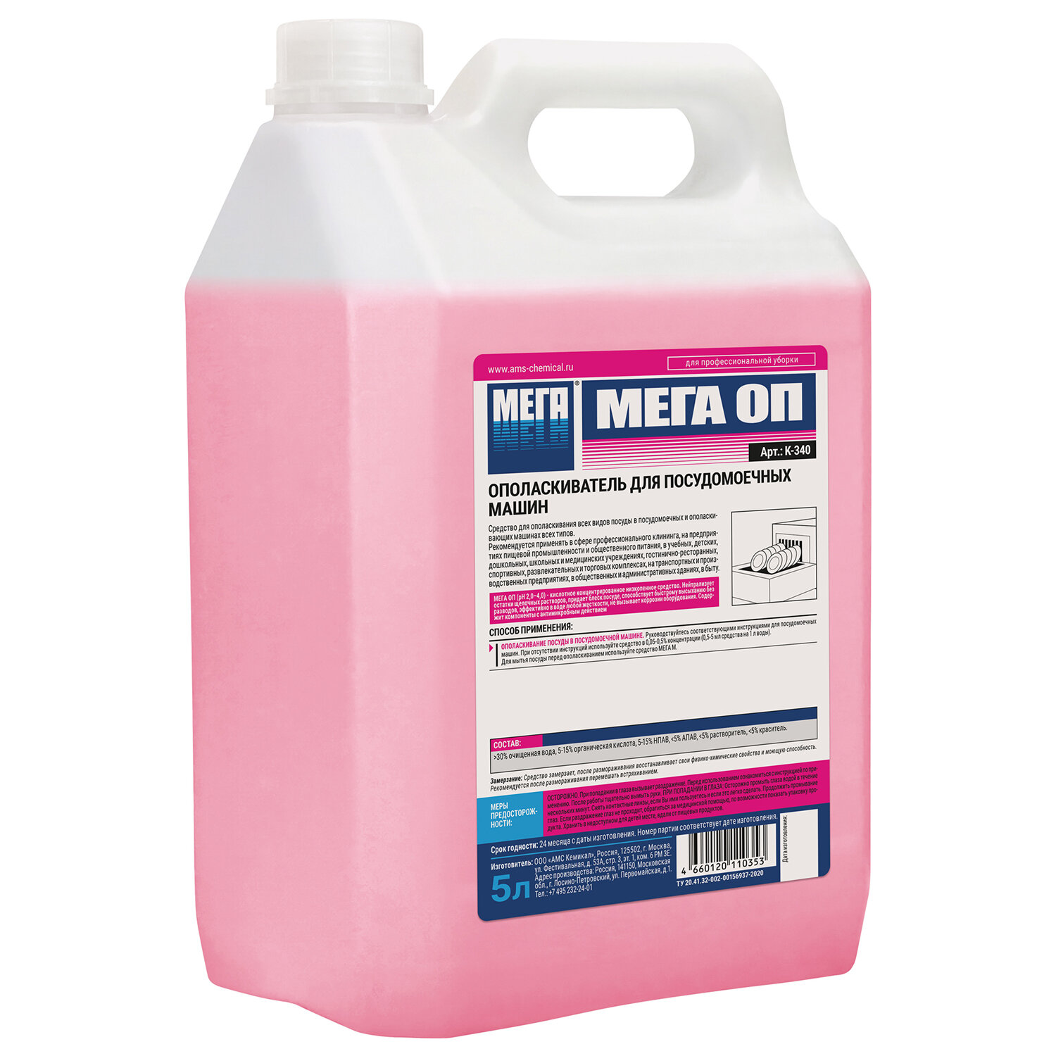 Средство кислотное концентрированное для ополаскивания всех видов посуды в посудомоечных и ополаскивающих машинах всех типов. Средство нейтрализует остатки щелочных растворов, придает блеск посуде, способствует ее быстрому высыханию без подтеков и разводов. Эффективно в воде любой жесткости, не вызывает коррозии оборудования. Содержит компоненты c антимикробным действием.