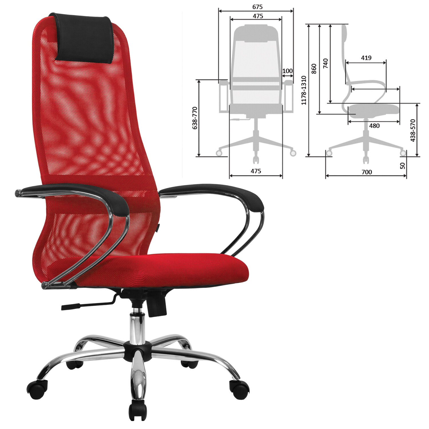 Кресло офисное МЕТТА "SU-B-8" хром, ткань-сетка, сиденье мягкое, красное Код товара: 532430 13 756,02 ₽ Купить Производитель:МЕТТА Наиболее популярная, классическая модель офисных кресел МЕТТА. Сочетает в себе высокую надежность, эргономику, соответствующую анатомической форме человека, современный дизайн и максимальный комфорт по доступной цене. Спинка высокая, эргономичной формы с ярко выраженной поясничной поддержкой. Спинка имеет сверхпрочный стальной каркас с износостойким полимерным покрытием черного цвета. Спинка снабжена мягким комфортным подголовником. Сиденье средней жесткости, объемное на столярном каркасе. Обивка из износоустойчивой "дышащей" сетчатой ткани. Подлокотники стальные классические покрытые зеркальным хромом, с мягкими накладками из экокожи. Пятилучие – металлическое хромированное. Модель оснащена механизмом качания "Top-Gun" с регулировкой под вес и возможностью фиксации в рабочем положении.Производство: РоссияМатериал обивки: ткань/сеткаМаксимальная нагрузка: до 150 кгЦвет обивки: красныйТип механизма кресла: "Топ-ган" - качание с регулировкой под вес и фиксацией в 1 положенииСетчатая спинка: даКрестовина (пятилучие): металл/хромированный металлПодлокотники: хром с накладкамиМинимальная высота кресла: 1178 ммМаксимальная высота кресла: 1310 ммШирина кресла: 675 ммМинимальная высота до сиденья: 438 ммМаксимальная высота до сиденья: 570 ммСиденье ширина: 475 ммСиденье глубина: 480 ммСпинка ширина: 475 ммСпинка высота: 860 ммСерия: SU-8Соответствует требованиям ГОСТа: ГОСТ 19917-93Поставляется в разобранном виде: даВес: 16,3 кгРазмер упаковки: 91 × 68 × 26 смОбъём: 0.1609 м3Промежуточная упаковка: 1 штТранспортная упаковка: 1 штШтрих-код: 4665316737321 Файлы Приложение-1.pdf Приложение-2.pdf Приложение-3.pdf Сертификат-1.jpg Сертификат-2.jpg