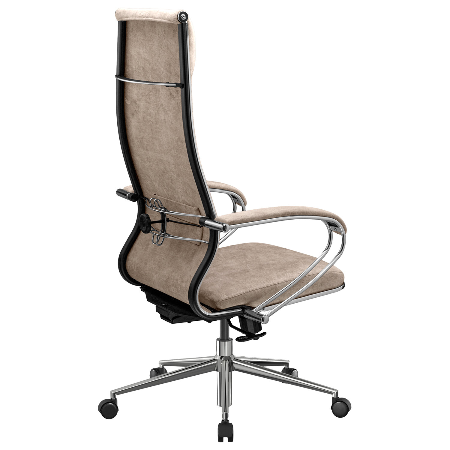 Кресло офисное МЕТТА "L1m 42", хром, сиденье и спинка мягкие, велюр, бежевое Код товара: 532995 21 336 ₽ Купить Производитель:МЕТТА Комфортное, просторное кресло современного дизайна прекрасно подойдет не только для офиса, но и добавит уют в домашний интерьер. Сочетает в себе надежность стального каркаса, абсолютную эргономику и набор индивидуальных регулировок для каждого. Сверхпрочный стальной каркас. Спинка высокая и широкая, эргономичной формы с ярко выраженной поясничной поддержкой. Эргогиб, как у кресел SAMURAI. Спинка имеет стальной регулируемый поясничный подпор. Уникальная форма передней части сиденья исключает сдавливание сосудов ног, сохраняя ощущение легкости в ногах. Сиденье мягкое и широкое, объемное, на столярном каркасе. Регулировка глубины сиденья за счет перемещения места крепления сиденья (450-480 мм). Обивка велюр "Bravo", с прошивкой "LUX Simple". Подлокотники стальные классические, покрытые зеркальным хромом, с мягкими накладками из экокожи. Пятилучие – металлическое хромированное. Модель оснащена синхромеханизмом качания M20 (S 1.0) с фиксацией в рабочем положении. Ролики полиамидные с полиуретановым ободком (D-50 мм).Производство: РоссияМатериал обивки: велюрМаксимальная нагрузка: до 120 кгЦвет обивки: бежевыйТип механизма кресла: "Synchro" - синхронное отклонение сиденья и спинки в соотношении 1:3, фиксация в нескольких положенияхКрестовина (пятилучие): металл/хромированный металлПодлокотники: металл с накладкамиМинимальная высота кресла: 1175 ммМаксимальная высота кресла: 1295 ммШирина кресла: 709 ммМинимальная высота до сиденья: 435 ммМаксимальная высота до сиденья: 555 ммСиденье ширина: 515 ммСиденье глубина: 460 ммСпинка ширина: 510 ммСпинка высота: 740 ммСерия: L1m 42Соответствует требованиям ГОСТа: ГОСТ 19917-2014Поставляется в разобранном виде: даВес: 20,03 кгРазмер упаковки: 91.6 × 68 × 25 смОбъём: 0.1557 м3Промежуточная упаковка: 1 штТранспортная упаковка: 1 штШтрих-код: 4665316738052 Файлы Приложение-1.pdf Приложение-2.pdf Сертификат-1.jpg Сертификат-2.jpg Сертификат-3.jpg Сертификат-4.jpg