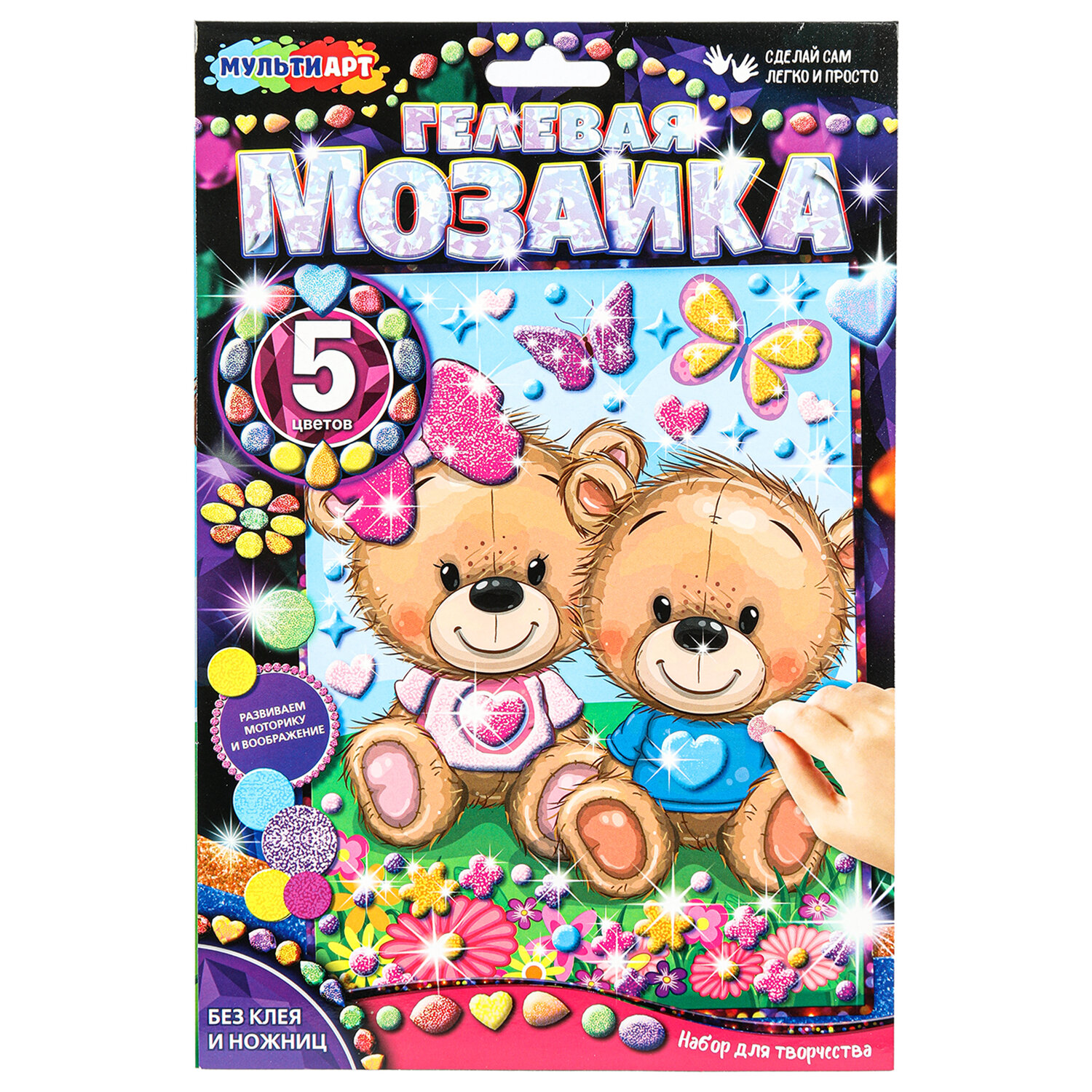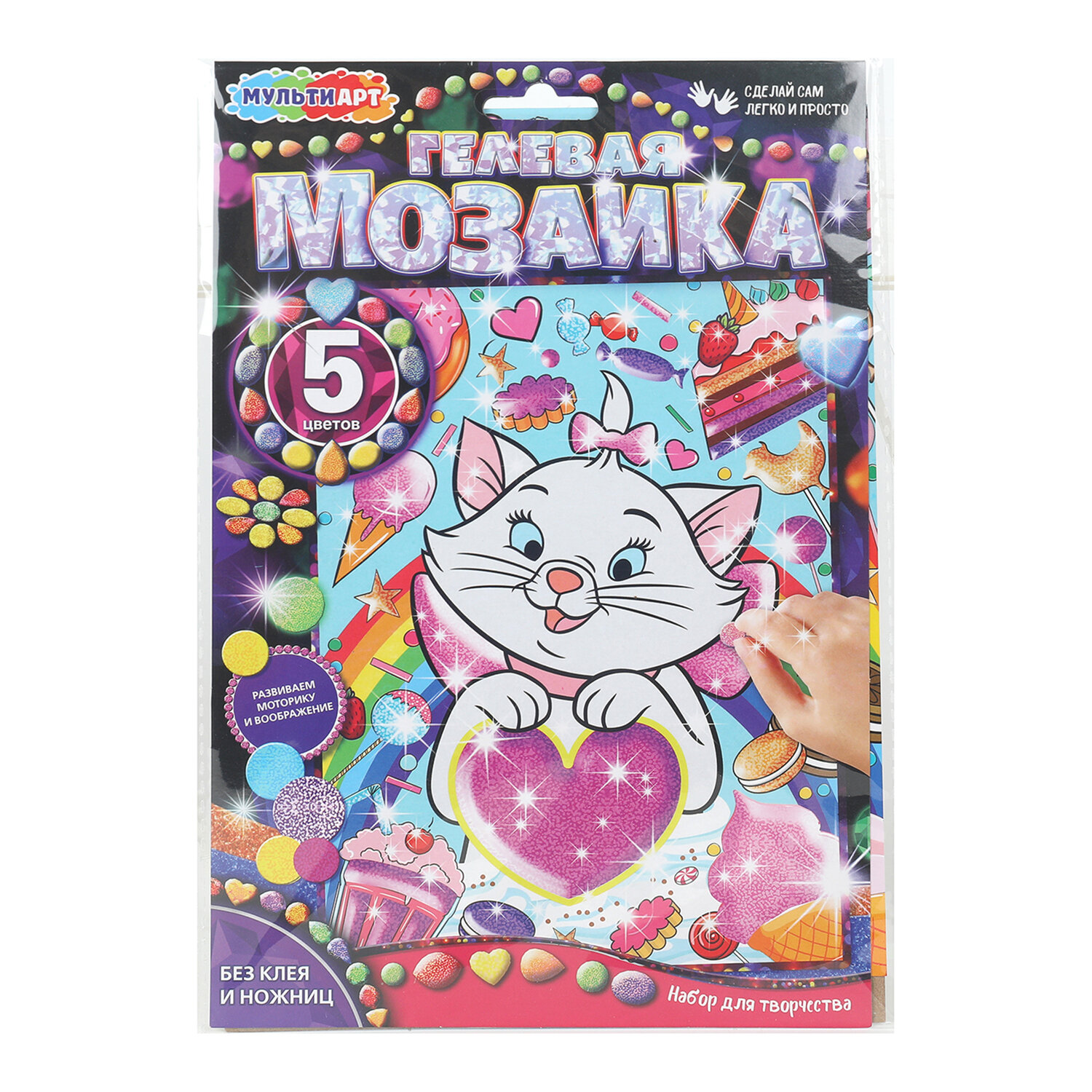 Набор для создания аппликации из гелевой мозаики, 17х23 см, АССОРТИ, МУЛЬТИ АРТ Код товара: 665728 140,67 ₽ Купить Производитель:МУЛЬТИ АРТ Набор для создания аппликации из гелевой мозаики МУЛЬТИ АРТ – прекрасный выбор для развития творческого потенциала детей, помогающий прививать с ранних лет интерес к кропотливой работе и усидчивость, а также развивающий мелкую моторику. Набор для создания аппликации из гелевой мозаики может стать прекрасным и оригинальным подарком для детей. Набор используется без клея и ножниц, что позволяет сделать процесс творчества безопасным и аккуратным. Гелевые детали наклеиваются на уже готовый рисунок, создавая яркое и объемное изображение. В состав набора входят все необходимые элементы для создания поделки: гелевые детали на клеевой основе и цветная основа с рисунком. В состав набора входят: - цветная основа с рисунком 17х23 см, - гелевые детали на клеевой основе. Упаковка товара – картонный пакет с европодвесом.Производство: КитайТип товара: мозаикаОсобенности: гелеваяКомплектация: декоративные элементы для оформления, картонная основаМатериал: картон, пластикСерия: Аппликация из гелевой мозаикиСюжет: ассортиОсновной компонент: мозаикаКоличество цветов: 5Формат основы: 17х23 смВозрастная группа: от 3 летУпаковка: картонная коробка с европодвесомСрок годности: 60 месВес: 54 грРазмер упаковки: 0.2 × 25.6 × 17.2 смОбъём: 0.0007 м3Промежуточная упаковка: 20 штТранспортная упаковка: 20 штШтрих-код: 4660254439955 Файлы Сертификат-1.jpg Сертификат-2.jpg Сертификат-3.jpg Сертификат-4.jpg