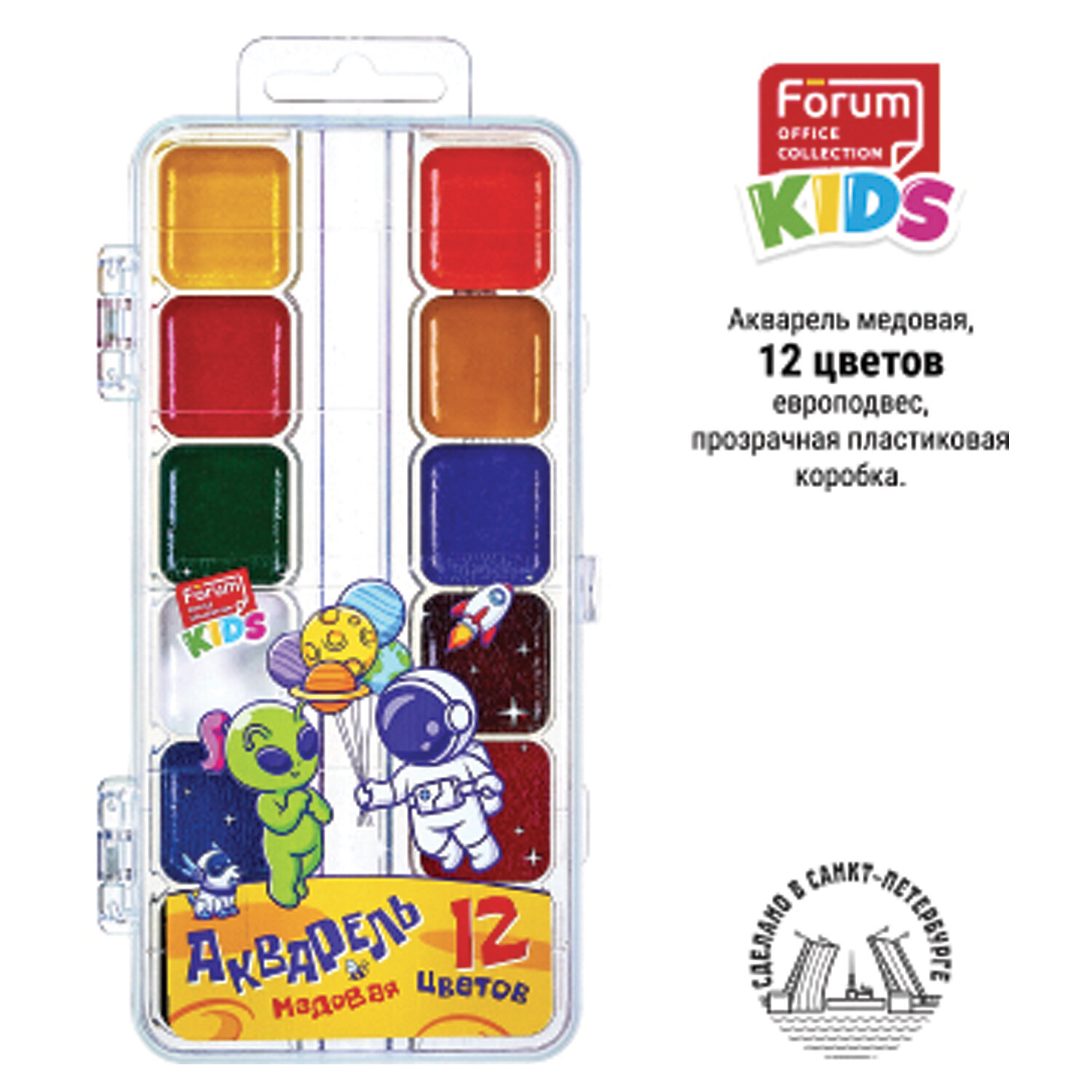 Краски акварельные FORUM "КОСМО", медовые, 12 цветов, квадратные кюветы, прозрачный пластик Код товара: 192787 112,07 ₽ Купить Производитель:NO NAME Акварельные краски применяются на уроках изобразительного искусства в школах и детских студиях живописи. Незаменимы для обучения рисованию и развития творческих способностей ребенка. 12 ярких насыщенных цветов отлично смешиваются между собой и позволяют создать множество оттенков, обеспечивают однородное окрашивание. Краски быстро высыхают и не портятся со временем. Нетоксичны и безопасны для детей. Выпускаются в пластиковом пенале с европодвесом, прозрачной крышкой, квадратной формой кювет и отделением для кисточки. Упаковка обладает компактными размерами и легким весом.Производство: РоссияКоличество цветов в наборе: 12 шт.Добавка в основу: мёдОтделение для кисточки: даФорма кювет: квадратнаяСпецэффект: нетСерия: КосмоУпаковка: пластиковая коробка с европодвесомВес: 108 грРазмер упаковки: 1.6 × 18.9 × 6 смОбъём: 0.0004 м3Промежуточная упаковка: 12 штТранспортная упаковка: 12 штШтрих-код: 4610082834163 Сертификат-1.jpg Сертификат-2.jpg Сертификат-3.jpg