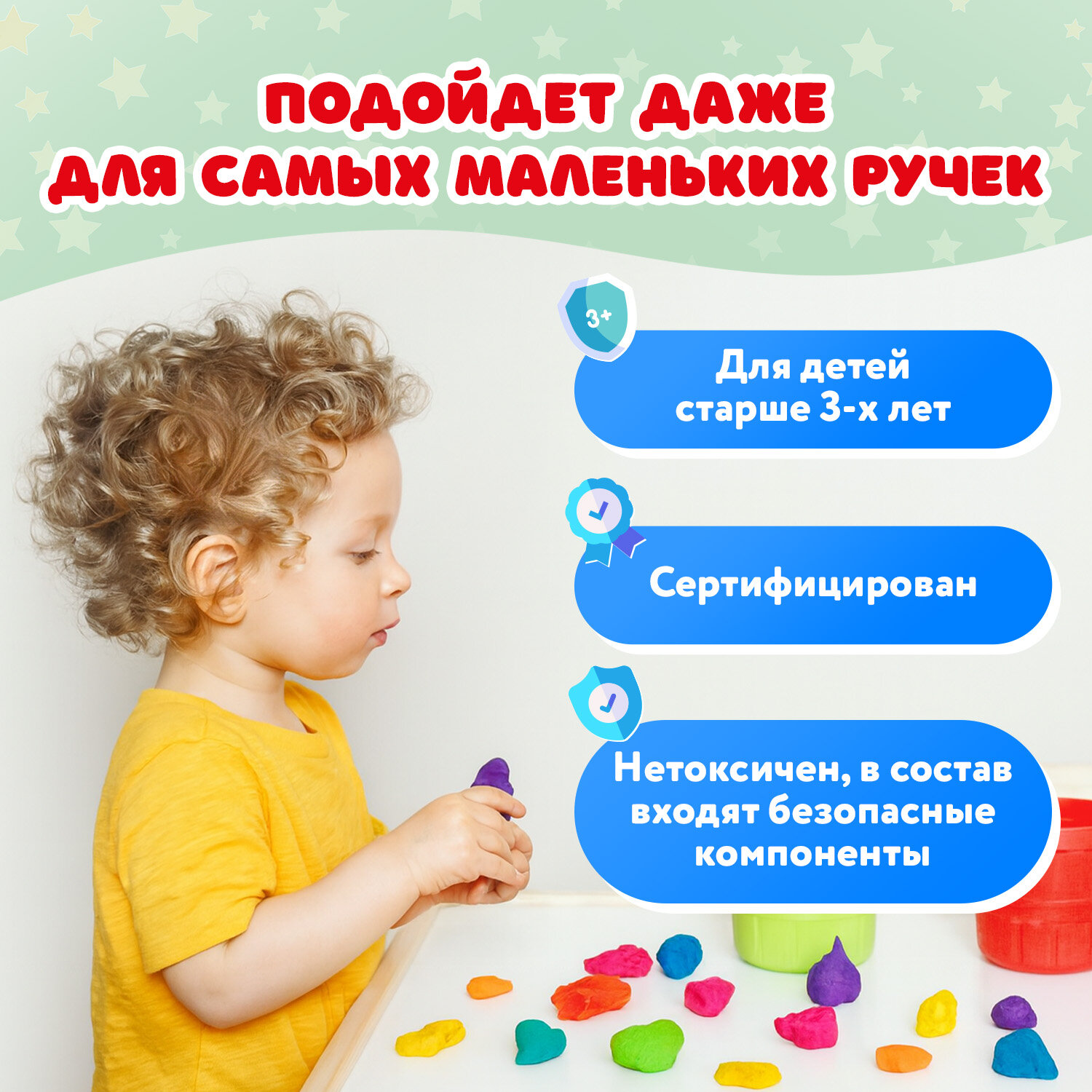 Данный набор включает в себя легкий пластилин высокого качества и три стека, которые помогают легко работать с кусочками пластилина и создавать даже миниатюрные поделки. 36 цветов позволят ребенку создать многоцветную поделку, картину или скульптуру.