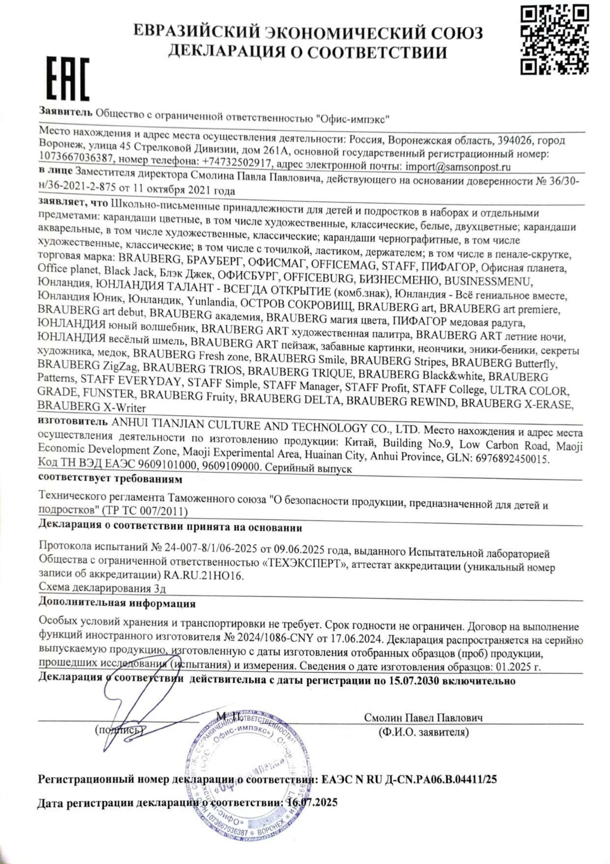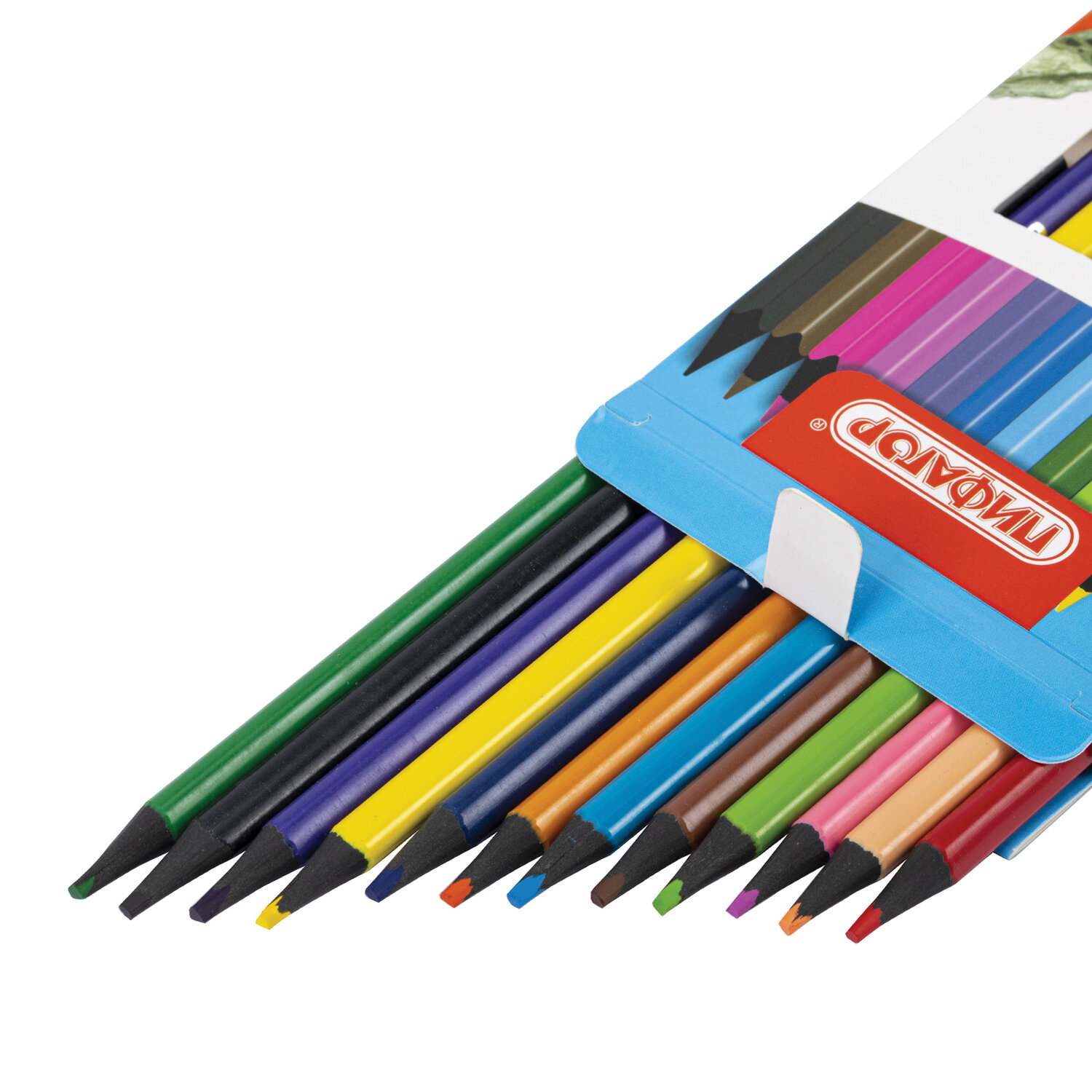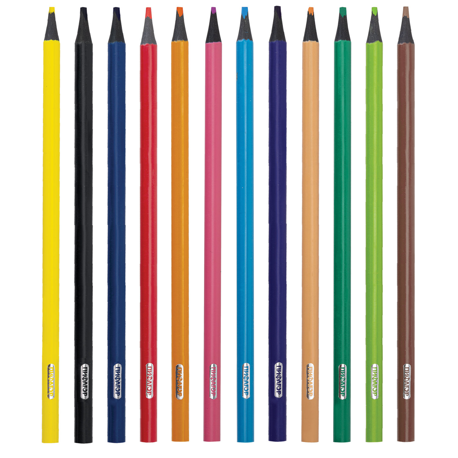 Карандаши цветные ПИФАГОР СТАНДАРТ 12 цветов, трехгранный корпус Код товара: 182087 107,38 ₽ Купить Производитель:ПИФАГОР Цветные карандаши ПИФАГОР "СТАНДАРТ" предназначены для детского творчества. Коробка с ярким оформлением порадует как детей дошкольного и младшего школьного возраста, так и взрослых. Набор состоит из 12 самых популярных цветов: красный, розовый, оранжевый, жёлтый, телесный, коричневый, зелёный, лимонный, голубой, синий, фиолетовый, чёрный. Трехгранная форма сечения корпуса удобна в использовании и позволяет карандашу не скатываться с поверхности стола во время занятий рисованием. Карандаши изготовлены из нетоксичного переработанного пластика. Корпус при разломе не образует острые края и безопасен для детей. Грифель легко затачивается и обладает повышенной прочностью. Все карандаши заточены и поставляются в картонной упаковке с европодвесом.Производство: КитайКоличество цветов: 12 шт.Количество карандашей: 12 шт.Серия: СТАНДАРТФорма сечения корпуса: трехграннаяМатериал корпуса: пластикЛакированный корпус: даГрифель повышенной прочности: даЗаточка грифеля: даЛегко затачиваются: даДиаметр грифеля: 2.6 ммДлина карандаша: 175 ммУпаковка: картонная коробка c европодвесомВес: 94 грРазмер упаковки: 0.9 × 21.3 × 8.5 смОбъём: 0.0002 м3Промежуточная упаковка: 240 штТранспортная упаковка: 240 штШтрих-код: 4606224473468 Сертификат-1.jpg Сертификат-2.jpg Сертификат-3.jpg