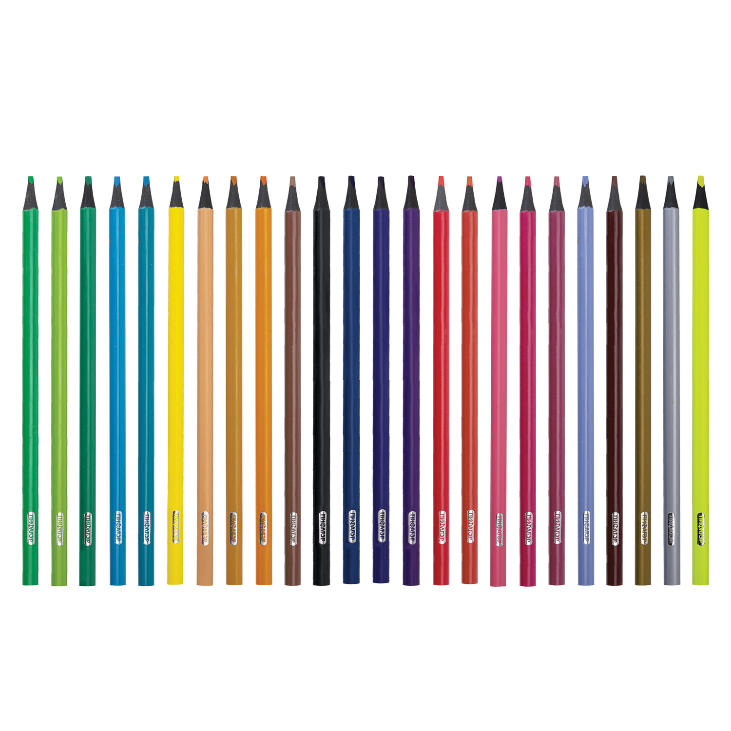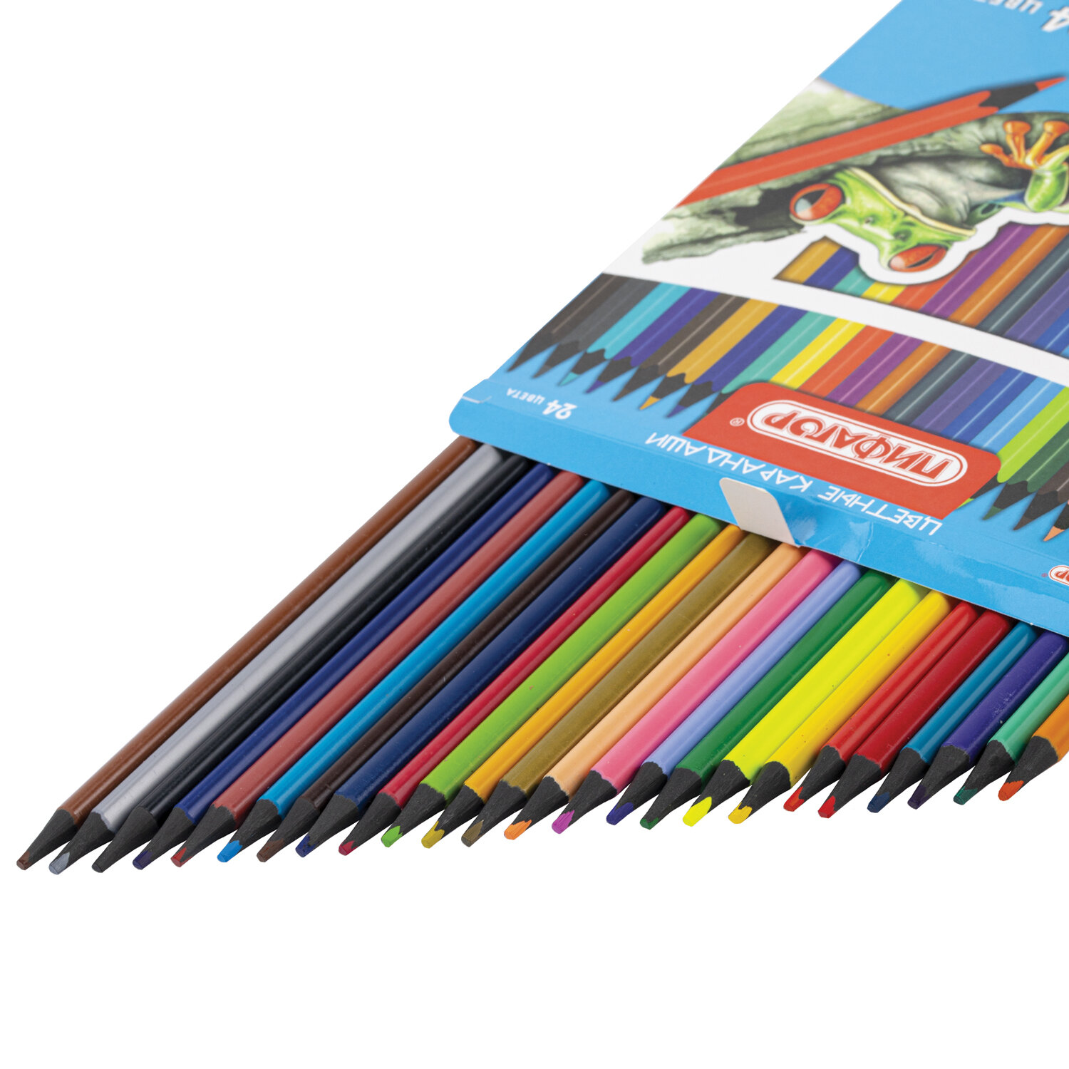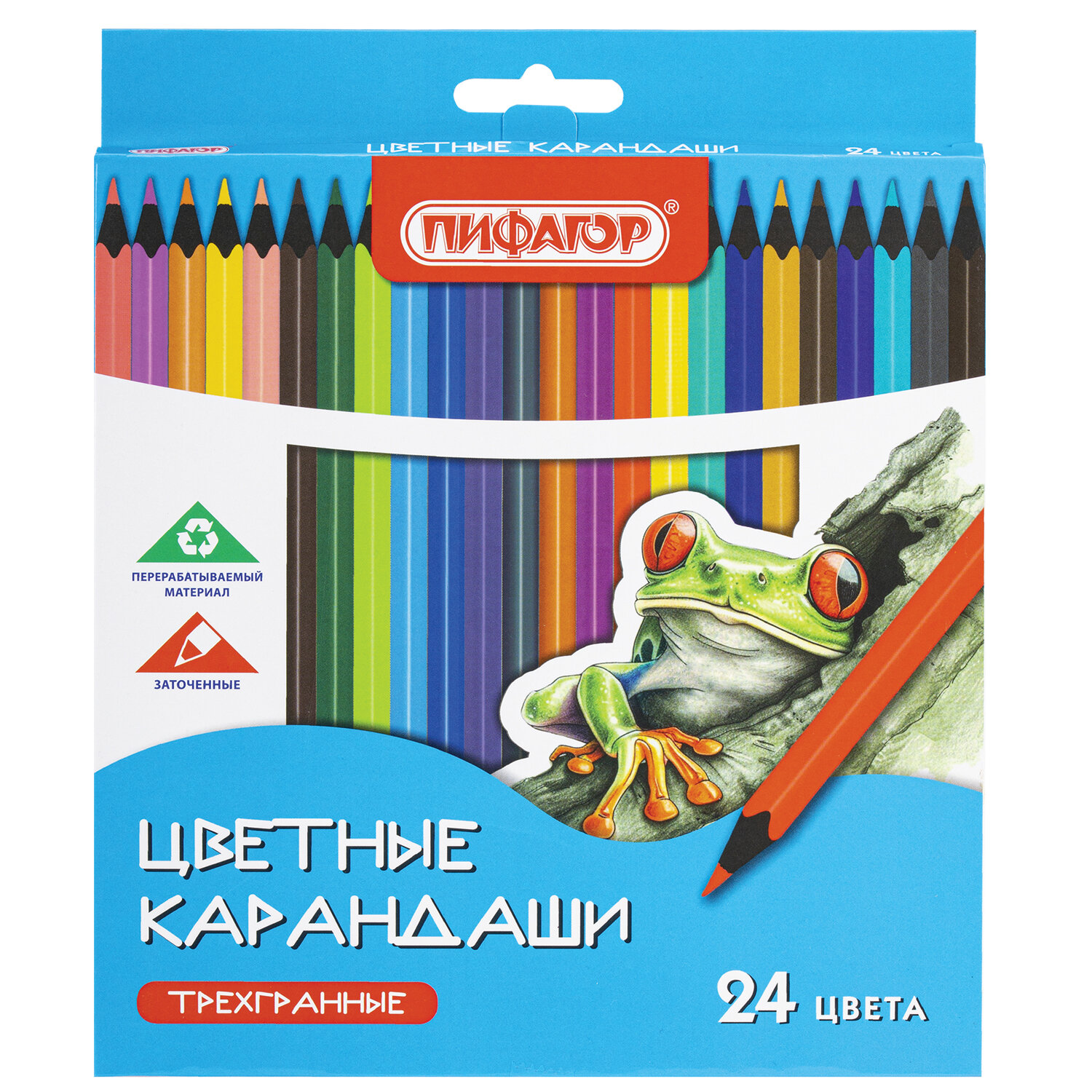 Карандаши цветные ПИФАГОР СТАНДАРТ 24 цвета, трехгранный корпус Код товара: 182088 172,13 ₽ Купить Производитель:ПИФАГОР Цветные карандаши ПИФАГОР "СТАНДАРТ" предназначены для детского творчества. Коробка с ярким оформлением порадует как детей дошкольного и младшего школьного возраста, так и взрослых. Набор состоит из 24 самых популярных цветов: красный, розовый, оранжевый, жёлтый, телесный, коричневый, зелёный, лимонный, голубой, синий, фиолетовый, чёрный, красно-оранжевый, пурпурный, тёмно-красный, флуоресцентный жёлтый, изумрудный, тёмно-синий, морковный, тёмно-коричневый, васильковый, ультрамарин, серый, белый. Трехгранная форма сечения корпуса удобна в использовании и позволяет карандашу не скатываться с поверхности стола во время занятий рисованием. Карандаши изготовлены из нетоксичного переработанного пластика. Корпус при разломе не образует острые края и безопасен для детей. Грифель легко затачивается и обладает повышенной прочностью. Все карандаши заточены и поставляются в картонной упаковке с европодвесом.Производство: КитайКоличество цветов: 24 шт.Количество карандашей: 24 шт.Серия: СТАНДАРТФорма сечения корпуса: трехграннаяМатериал корпуса: пластикЛакированный корпус: даГрифель повышенной прочности: даЗаточка грифеля: даЛегко затачиваются: даДиаметр грифеля: 2.6 ммДлина карандаша: 175 ммУпаковка: картонная коробка c европодвесомВес: 190 грРазмер упаковки: 0.8 × 21.5 × 17.2 смОбъём: 0.0003 м3Промежуточная упаковка: 120 штТранспортная упаковка: 120 штШтрих-код: 4606224473475 Сертификат-1.jpg Сертификат-2.jpg Сертификат-3.jpg