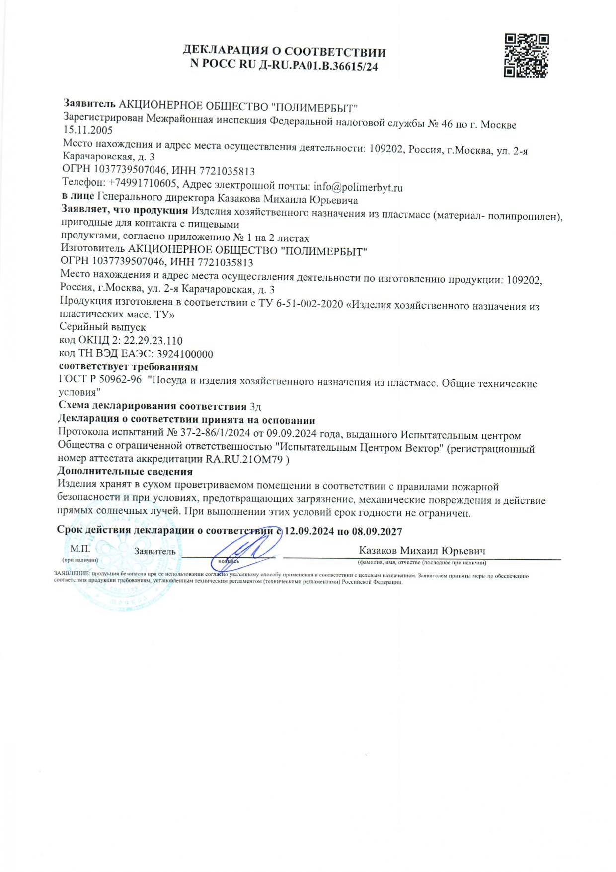 Крышка для микроволновых печей СВЧ, диаметр 23,5 см, высокая, прозрачная, 12х23,5х23,5 см Код товара: 601135 127,38 ₽ Купить Производитель:ПОЛИМЕРБЫТ Сохранить блюдо сочным, а стенки СВЧ чистыми при разогреве в блюд в СВЧ поможет эта крышка. Крышка из высококачественной пластмассы проста в эксплуатации, выдерживает нагрев без деформации и потери качества продуктов, легко моется в обычных условиях. Сохранить блюдо сочным, а стенки СВЧ чистыми при разогреве в блюд в СВЧ поможет эта крышка. Крышка из высококачественной пластмассы проста в эксплуатации, выдерживает нагрев без деформации и потери качества продуктов, легко моется в обычных условиях.Производство: РоссияТип товара: крышка для СВЧМатериал: пластикЦвет: прозрачныйВысота: 12 смШирина: 23.5 смГлубина: 23.5 смУпаковка: гофрокоробВес: 117 грРазмер упаковки: 10.2 × 24.5 × 24.5 смОбъём: 0.0021 м3Промежуточная упаковка: 24 штТранспортная упаковка: 24 штШтрих-код: 4601532002287 Файлы Приложение-1.pdf Приложение-2.pdf Сертификат-1.jpg Сертификат-2.jpg Сертификат-3.jpg
