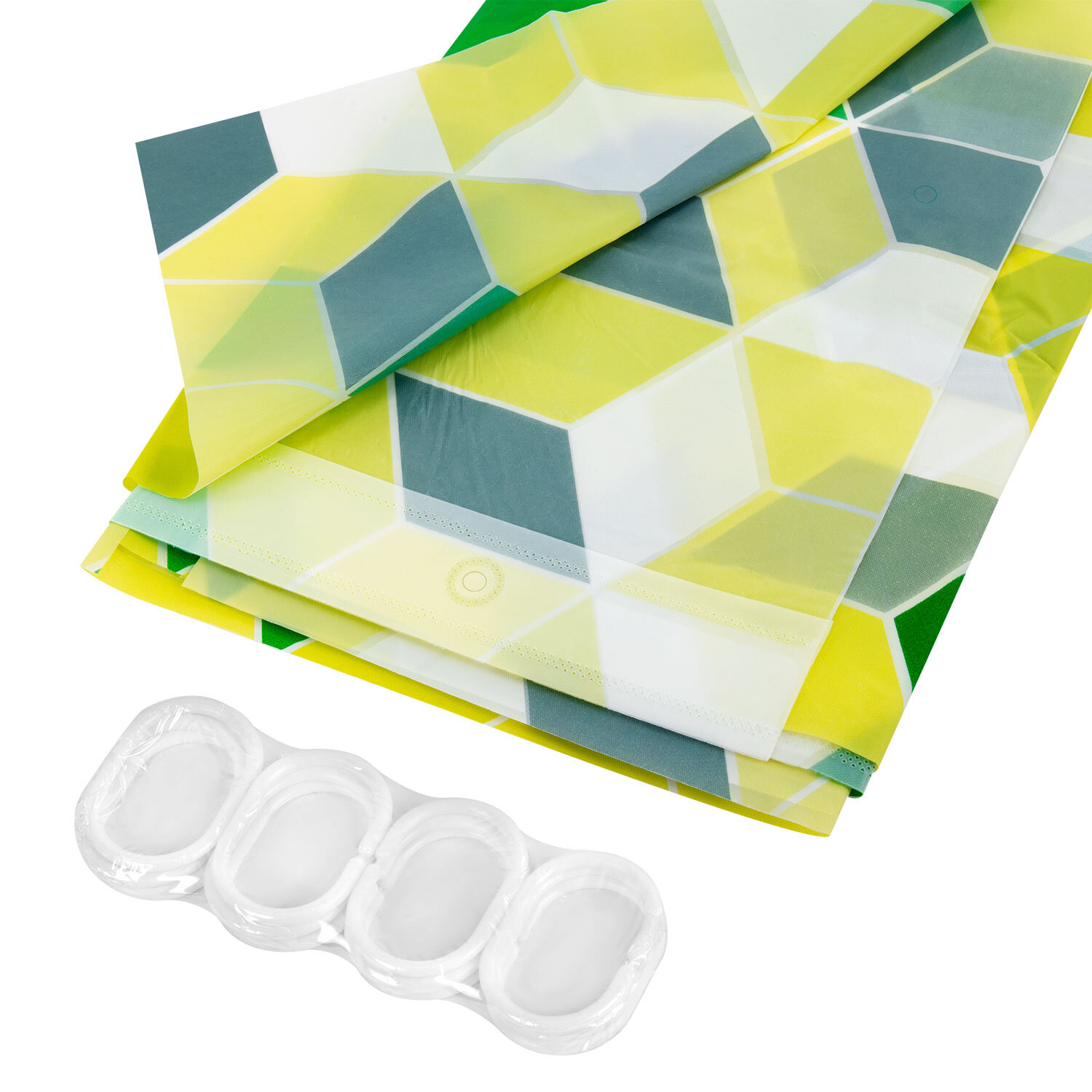 Шторка для ванной PEVA, 180х200 см, кольца в комплекте, 3 дизайна ассорти, ФИГУРЫ, PRIMILA (ПРИМИЛА) Код товара: 700075 142,09 ₽ Купить Производитель:PRIMILA Шторка для ванной комнаты PRIMILA – залог чистоты и уюта ванной комнаты. Используется для защиты пола, стен, мебели и зеркала от брызг. Эта шторка идеально впишется в любой интерьер. Шторка для ванной PRIMILA изготовлена из качественного, практичного, износостойкого, гипоаллергенного PEVA-материала, гарантирующего отсутствие заломов и водонепроницаемость. Быстро сохнет, не шуршит, без запаха и приятная на ощупь. В комплекте с шторкой идут 12 прочных полипропиленовых колец, которые подойдут под любой тип карниза. • Основные характеристики: - Размер: 180х200 см. - Рисунок: ассорти (фигуры). - Материал: PEVA. - Плотность шторки: 45 г/м2. • Основные преимущества: - Идеально подходит для семей с детьми. - Легко вписывается в любой интерьер. - Не требует сложного ухода. - Долговечна и практична в использовании. - Безопасна для здоровья.Производство: КитайРазмер (ДхШ): 180х200 смНаличие колец в комплекте: даВид принта: рисунокДизайн: Геометрические фигурыВодонепроницаемая: даВодоотталкивающая: даОсобенности: Нет данныхПлотность материала: 45 г/м2Материал: PEVAЦвет: ассортиВес: 248 грРазмер упаковки: 1.9 × 30.4 × 22.9 смОбъём: 0.0011 м3Промежуточная упаковка: 12 штТранспортная упаковка: 96 штШтрих-код: 4606224466859 Сертификат-1.jpg Сертификат-2.jpg