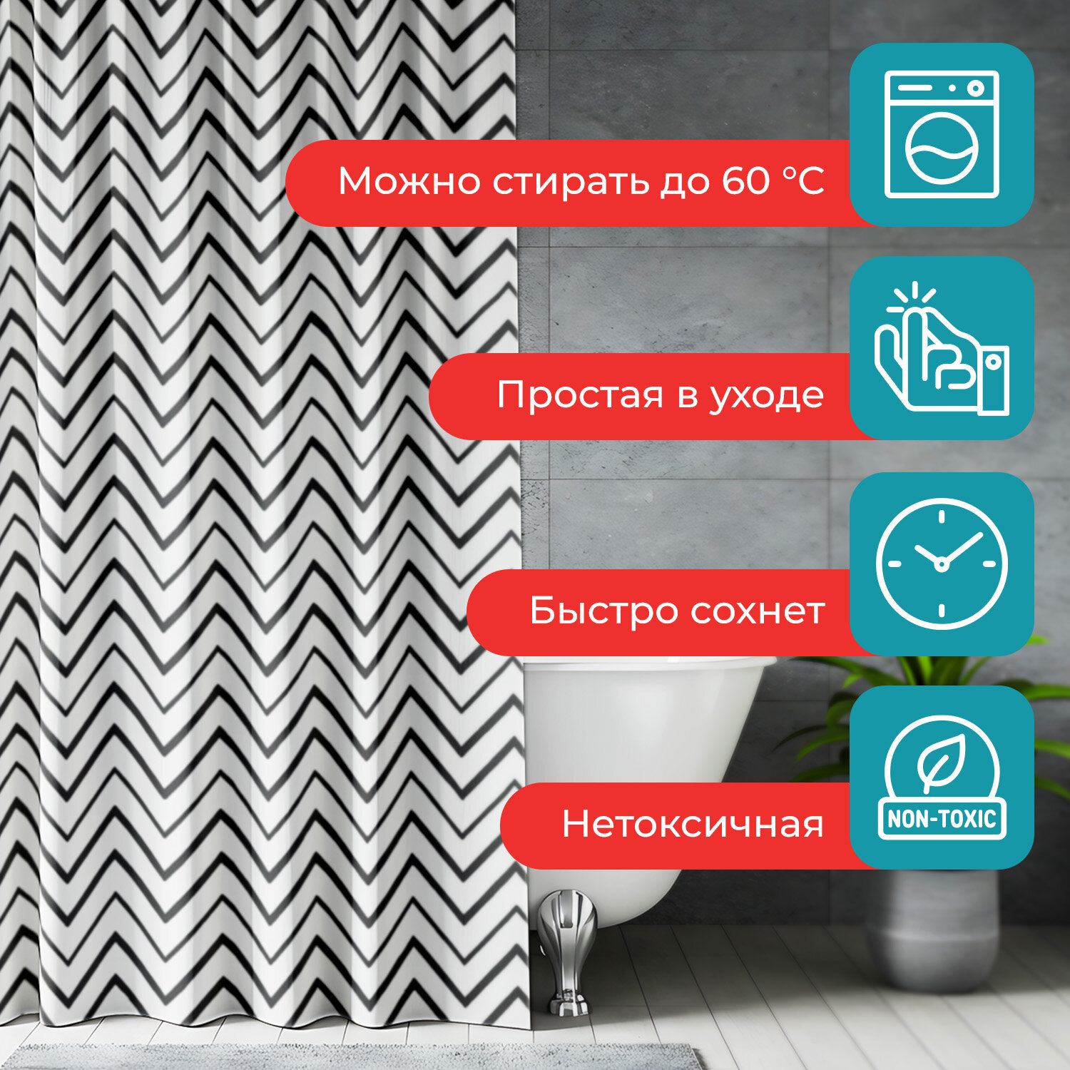 Шторка для ванной ПОЛИЭСТЕР, 180х180 см, кольца в комплекте, УЗОРЫ, PRIMILA (ПРИМИЛА) Код товара: 700078 490,78 ₽ Купить Производитель:PRIMILA Шторка для ванной комнаты PRIMILA – залог чистоты и уюта ванной комнаты. Используется для защиты пола, стен, мебели и зеркала от брызг. Эта шторка идеально впишется в любой интерьер. Шторка для ванной PRIMILA изготовлена из качественного, практичного, износостойкого полиэстера, что гарантирует отсутствие заломов и водостойкость. Быстро сохнет, не шуршит, без запаха и приятная на ощупь. Шторку можно стирать в стиральной машине при температуре до 60 °С. В комплекте с шторкой идут 12 прочных полипропиленовых колец, которые подойдут под любой тип карниза. • Основные характеристики: - Размер: 180х180 см. - Цвет: белый с рисунком. - Материал: полиэстер. - Плотность шторки: 80 г/м2. Основные преимущества: - Устойчива к плесени. - Легко вписывается в любой интерьер. - Не требует сложного ухода. - Долговечна и практична в использовании. - Безопасна для здоровья.Производство: КитайРазмер (ДхШ): 180х180 смНаличие колец в комплекте: даВид принта: рисунокДизайн: УзорВодонепроницаемая: даВодоотталкивающая: даОсобенности: Нет данныхПлотность материала: 80 г/м2Материал: полиэстерЦвет: белый/черныйВес: 358 грРазмер упаковки: 2.4 × 30.1 × 22 смОбъём: 0.0013 м3Промежуточная упаковка: 72 штТранспортная упаковка: 72 штШтрих-код: 4606224466880 Сертификат-1.jpg Сертификат-2.jpg Сертификат-3.jpg